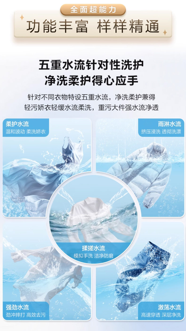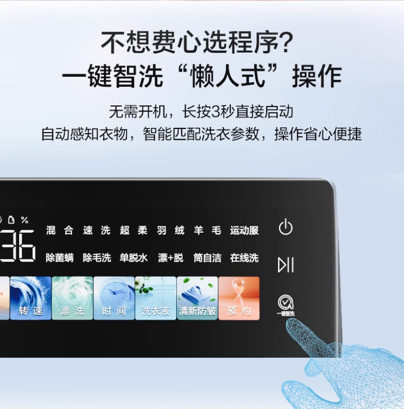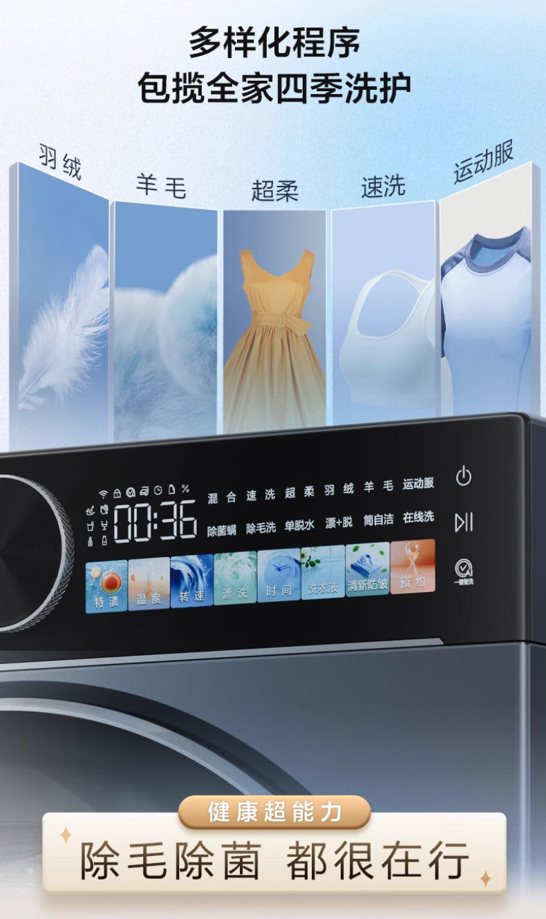 Laundry Procedures Super Soft Wash,Self-Cleaning Tube,Floating Off,Anti-Mite Wash,Mixed Wash,Single Dehydration,Quick Wash,Down Wash,Wool Wash