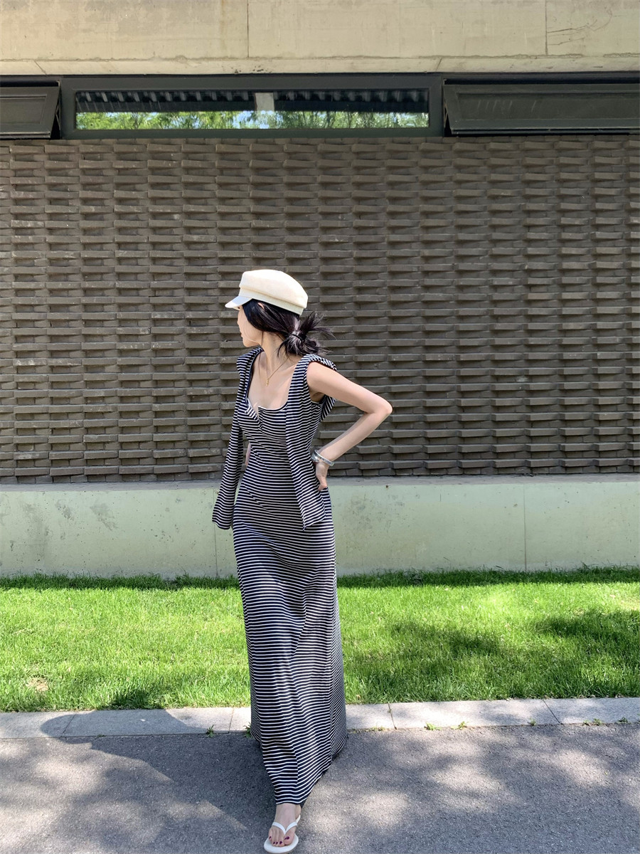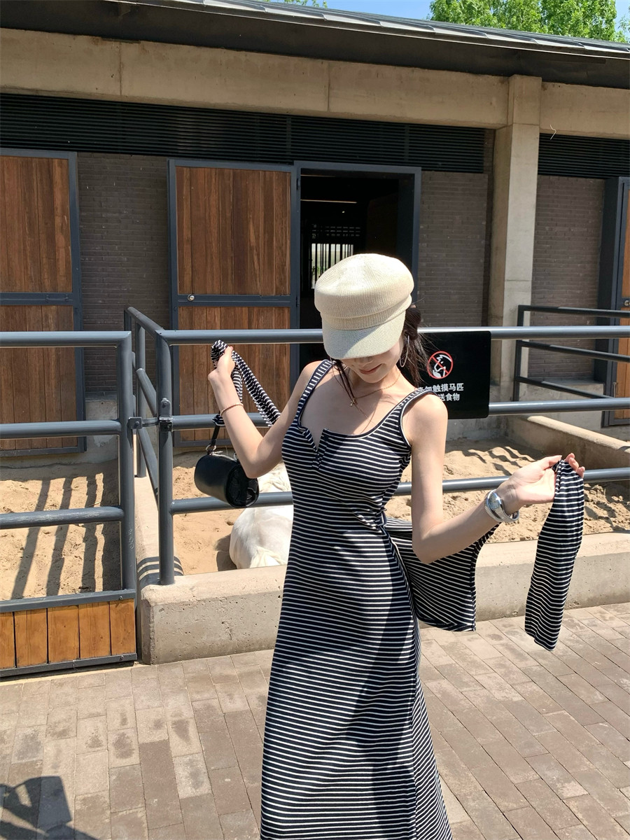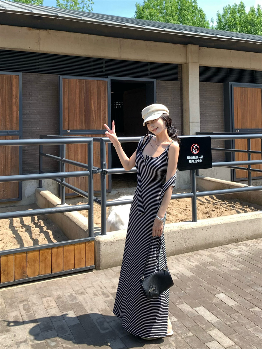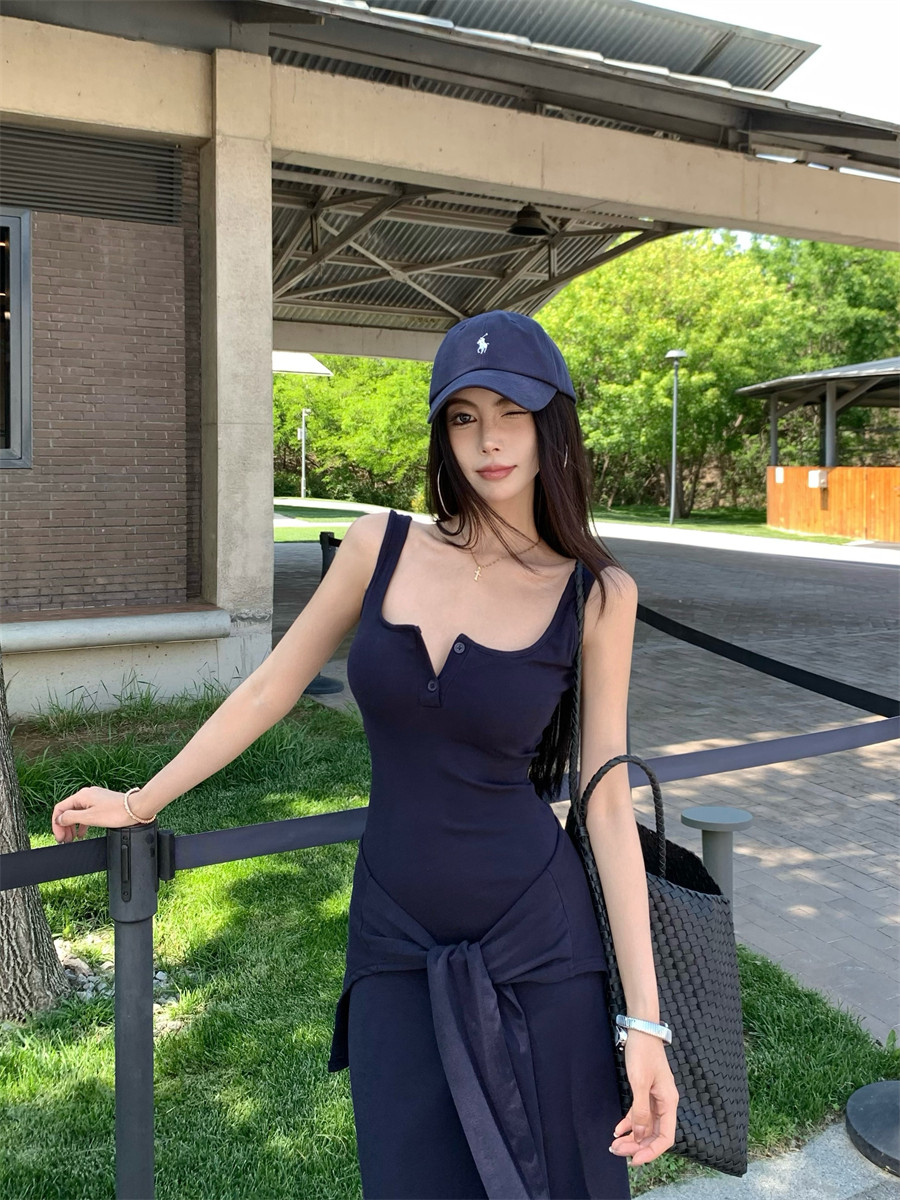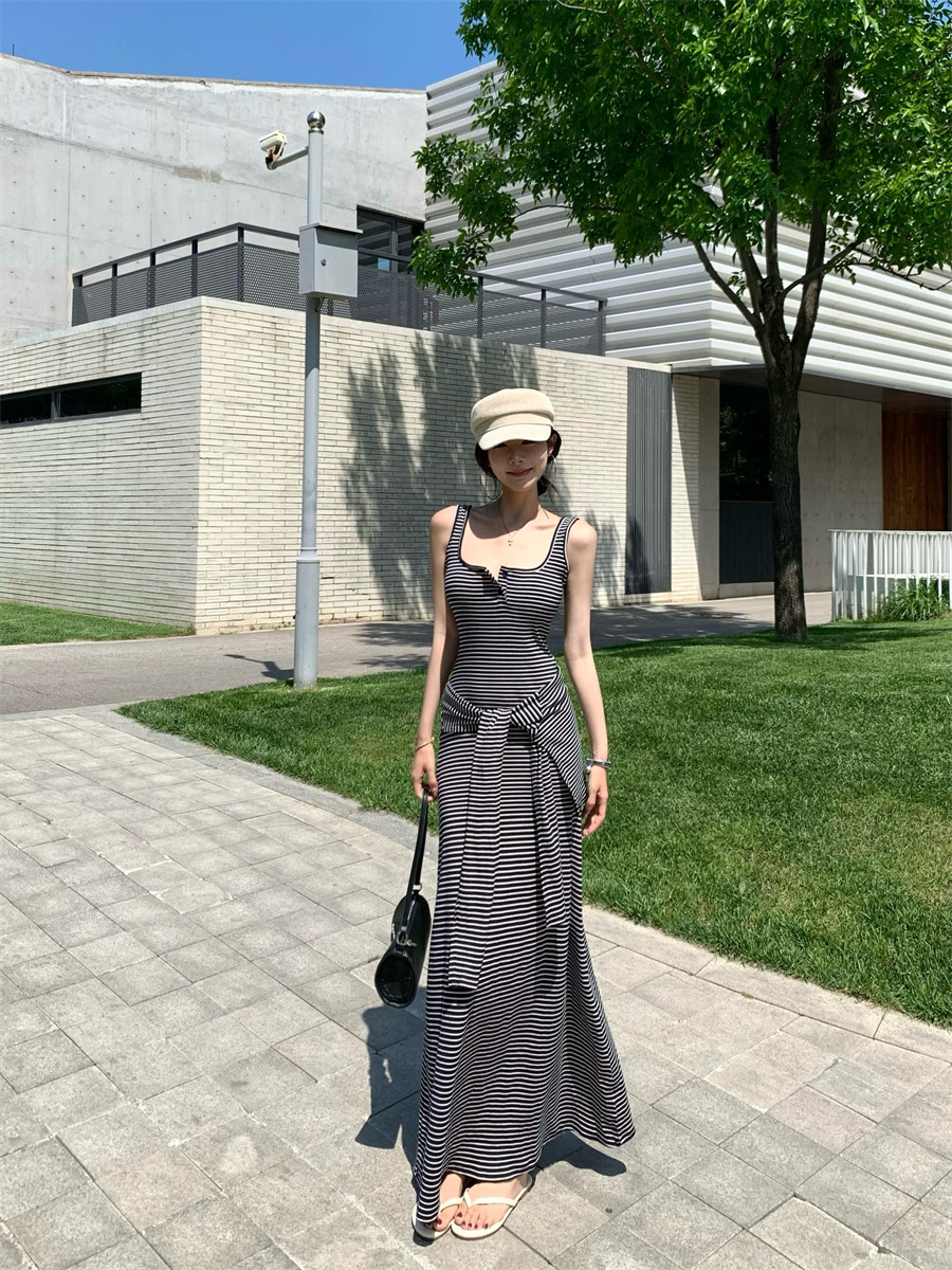 Light Mature Style, Intellectual Sister Vibe, Vest Dress, Two-Way Wear, Shawl, Casual Slim-Fit Dress with Chest Pads, Long Dress, Korean Style
