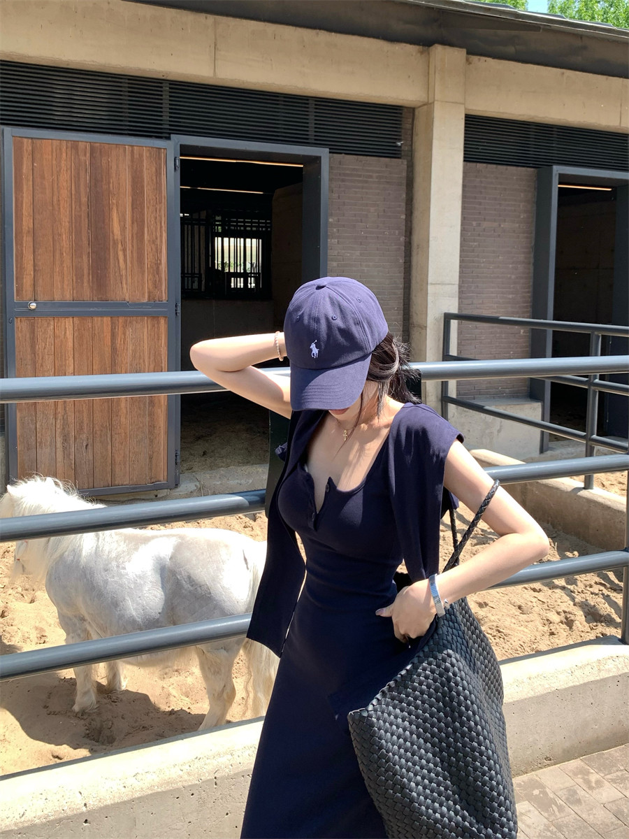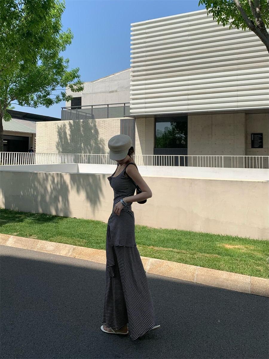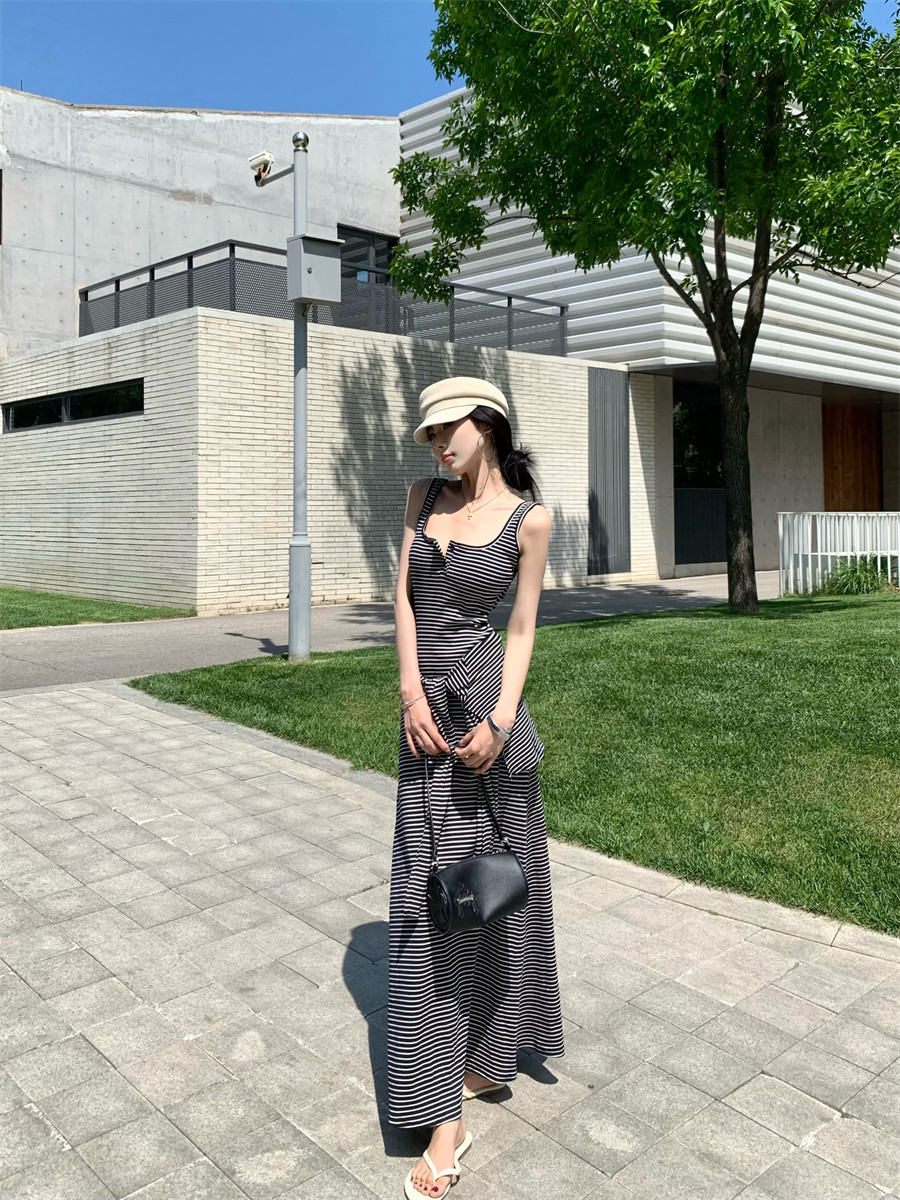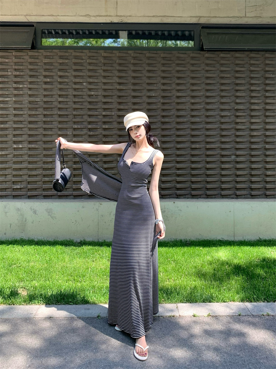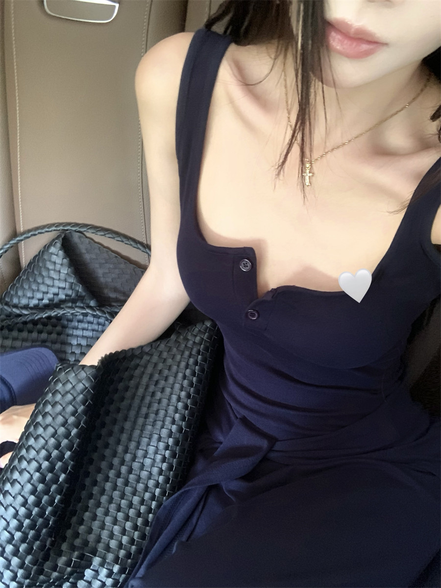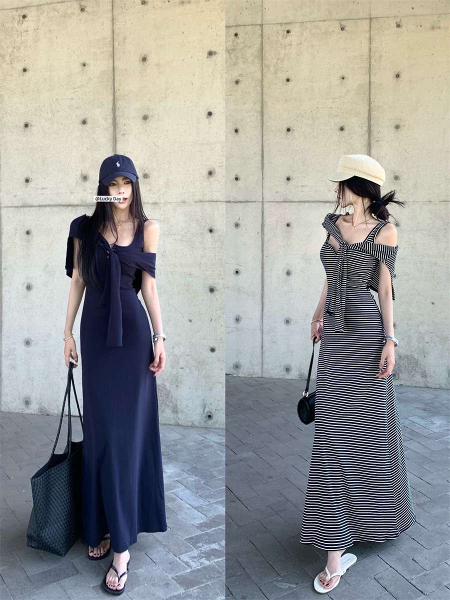 Light Mature Style, Intellectual Sister Vibe, Vest Dress, Two-Way Wear, Shawl, Casual Slim-Fit Dress with Chest Pads, Long Dress, Korean Style