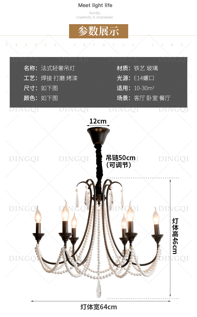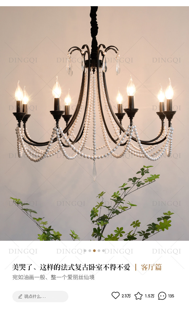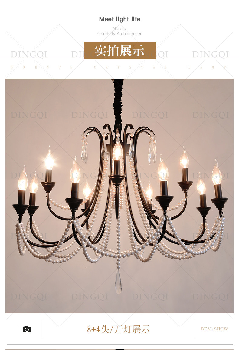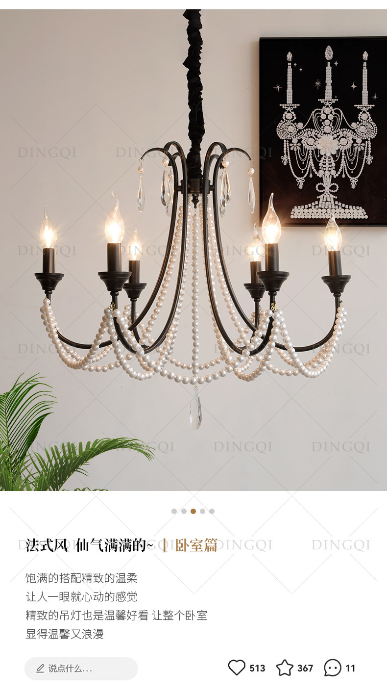 French Crystal Bedroom Chandelier, American Retro Black Pearl Master Bedroom Dining Room Lamp, 2025 Model High-End Living Room Lamp