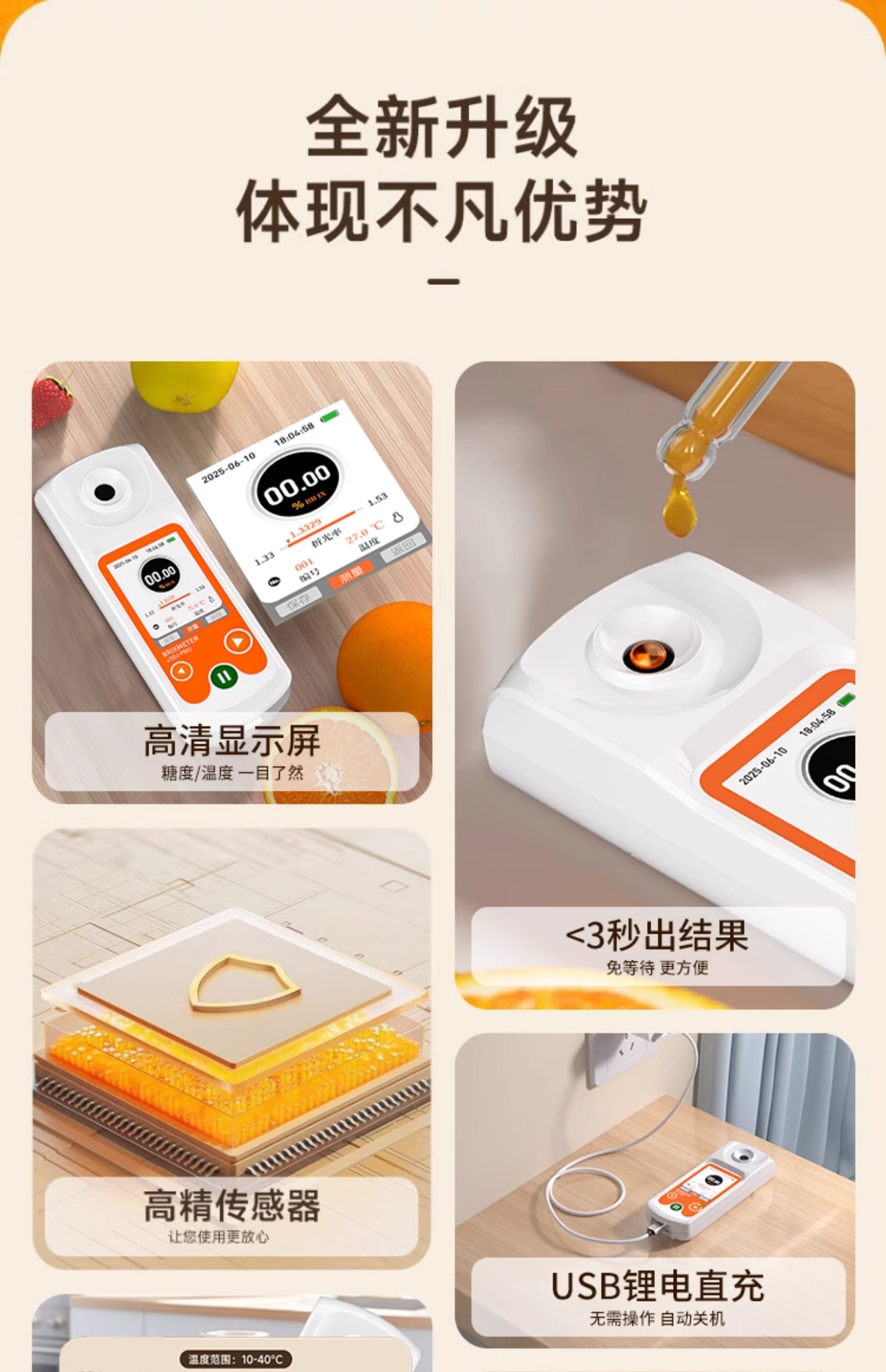 Sugar Content Meter Sugar Meter High-Precision Refractometer Fruit Sweetness Tester Watermelon Sugar Content Detection Sugarness Measuring Instrument