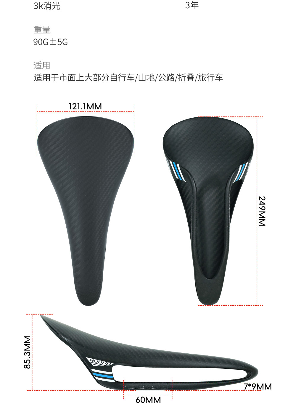 Hudud Curved Carbon Fiber Seat Cushion for Road Bikes and Mountain Bikes, Lightweight and Comfortable One-Piece Molded Seat Cushion