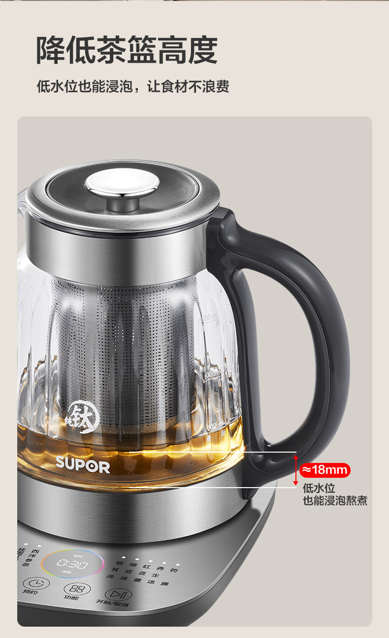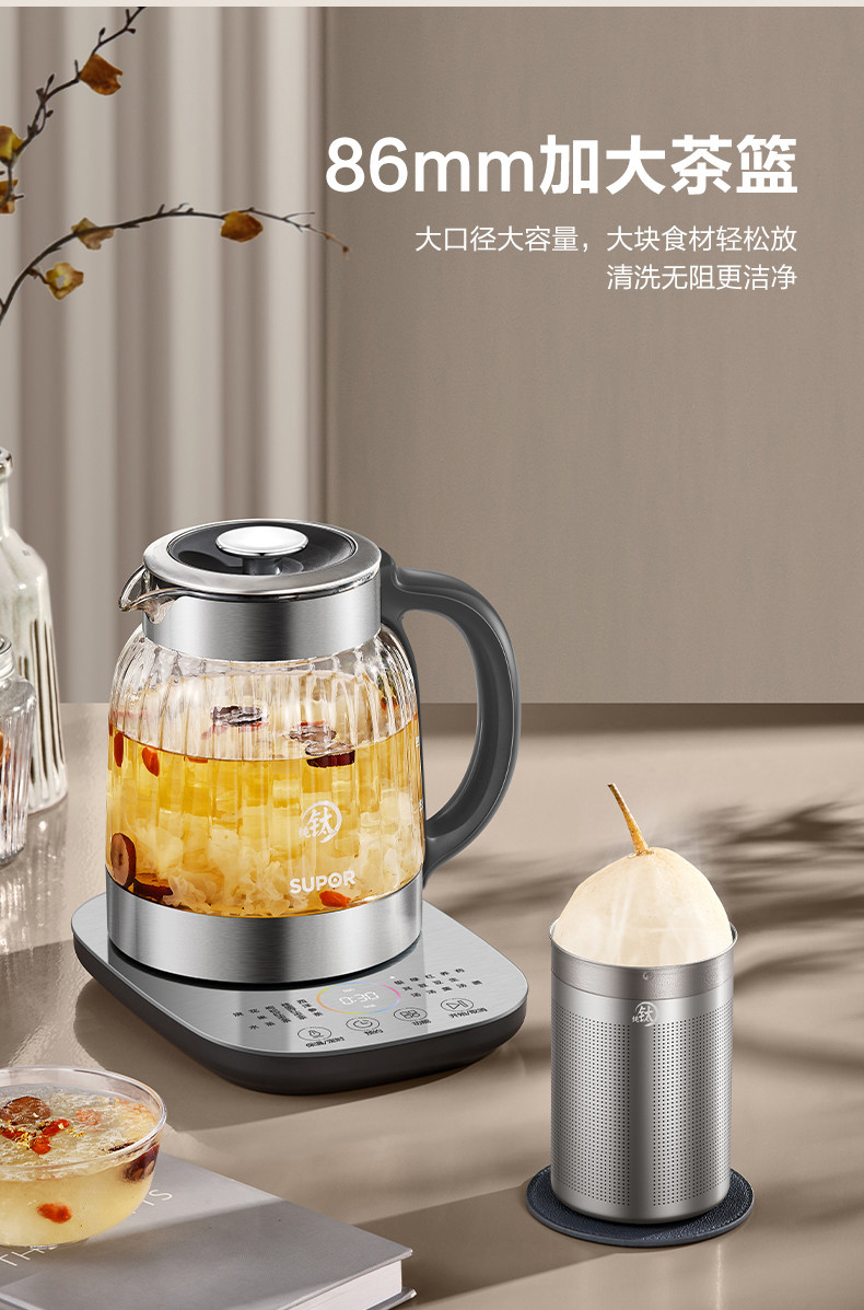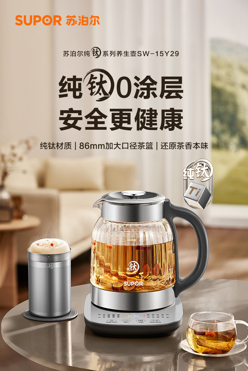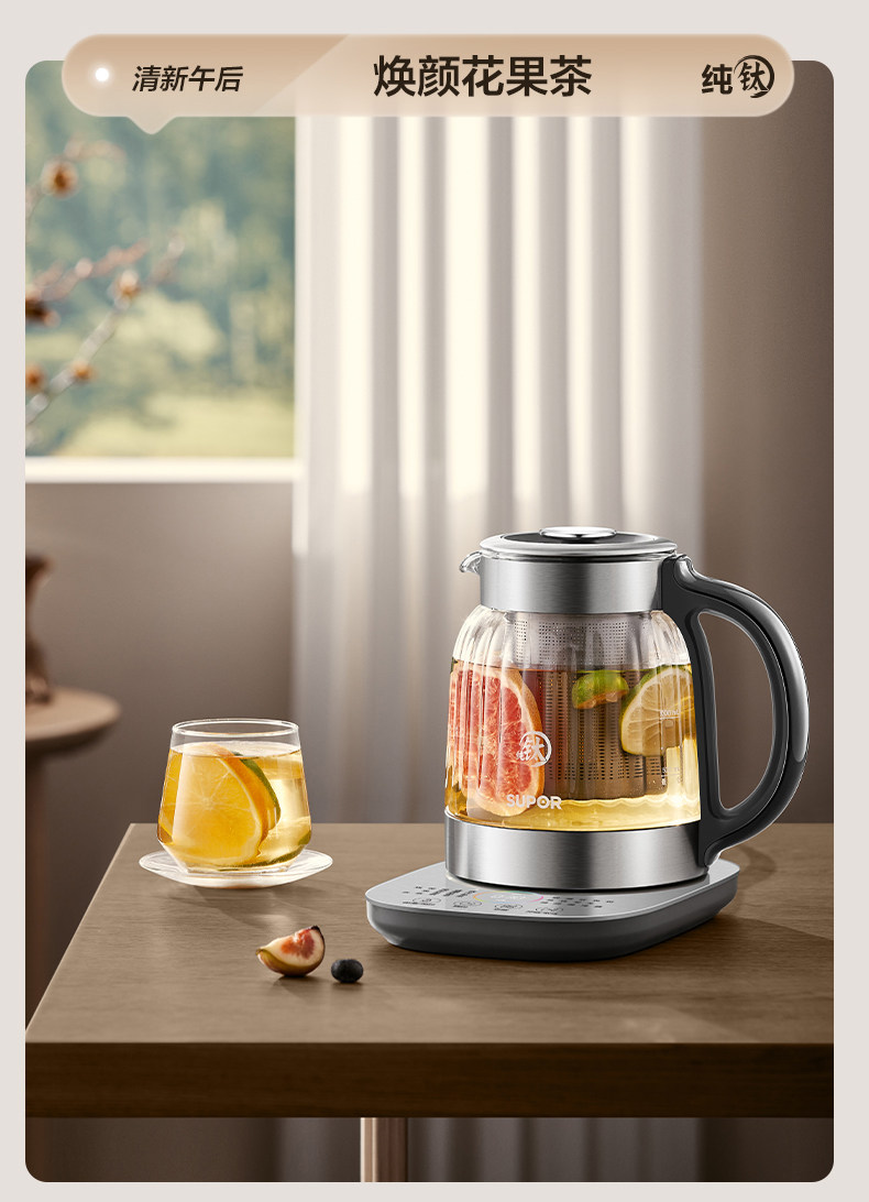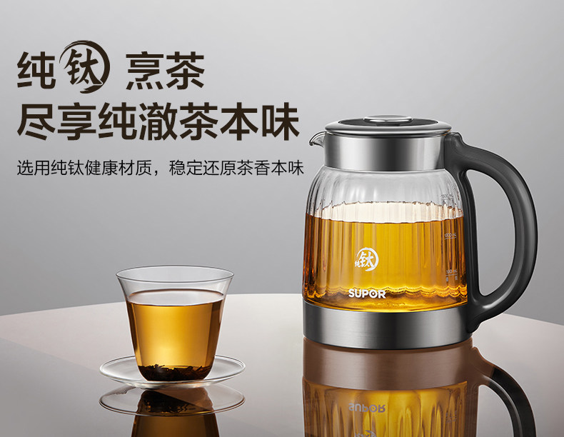 Supor Titanium Health Pot New Model Stainless Steel Constant Temperature Kettle Tea Maker Glass Panel Water Boiler 1.5L Genuine Product