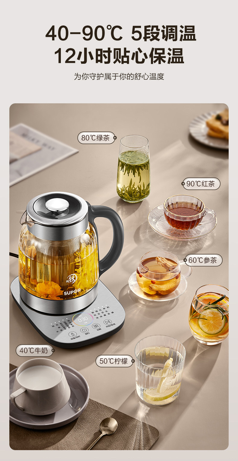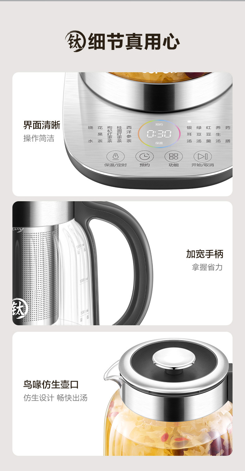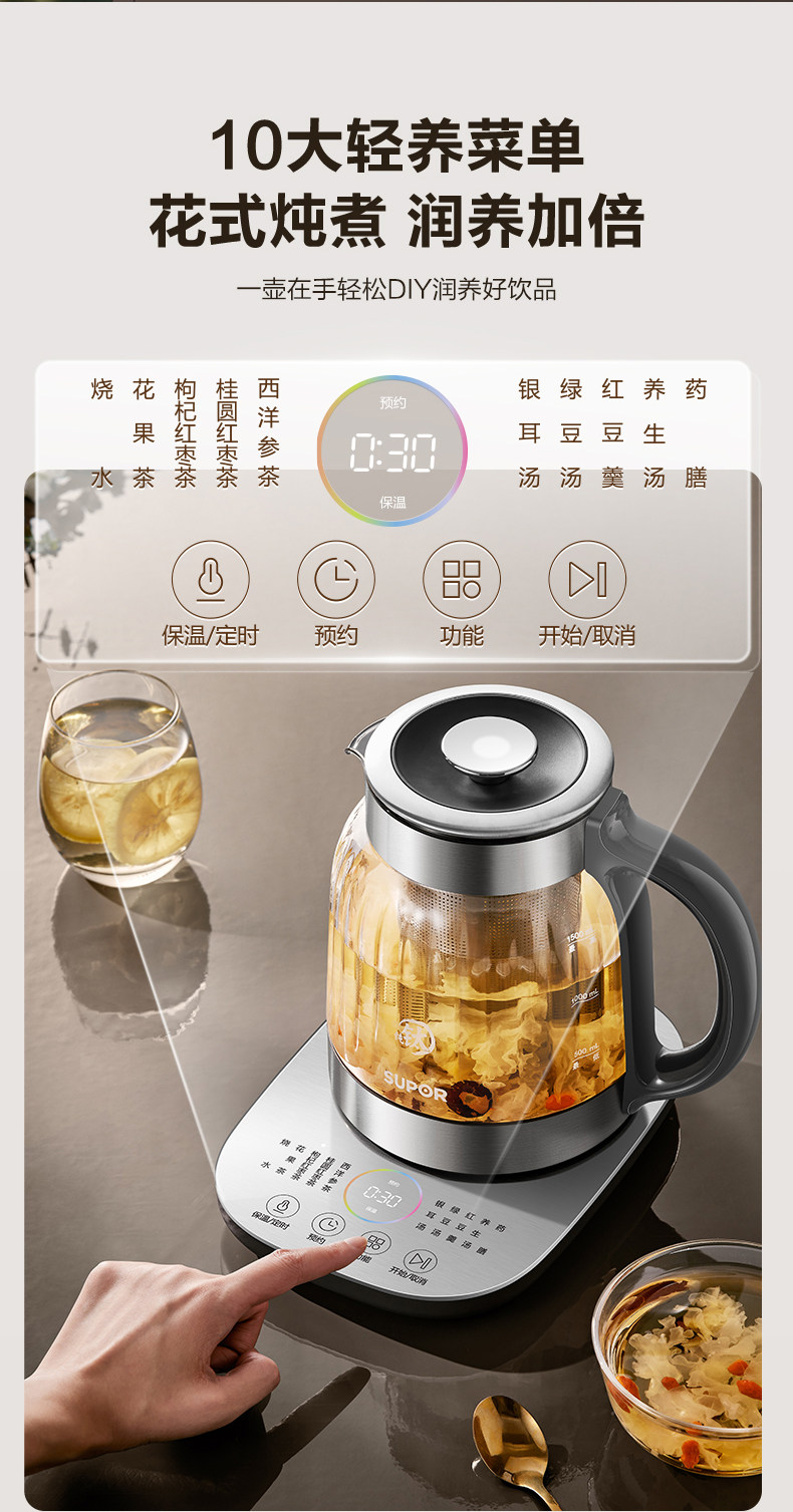 Supor Titanium Health Pot New Model Stainless Steel Constant Temperature Kettle Tea Maker Glass Panel Water Boiler 1.5L Genuine Product