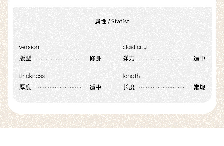 Material Composition Viscose Fiber (Viscose Fiber) 46% Cotton 46% Polyurethane Elastic Fiber (Spandex) 8%