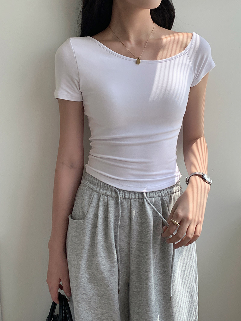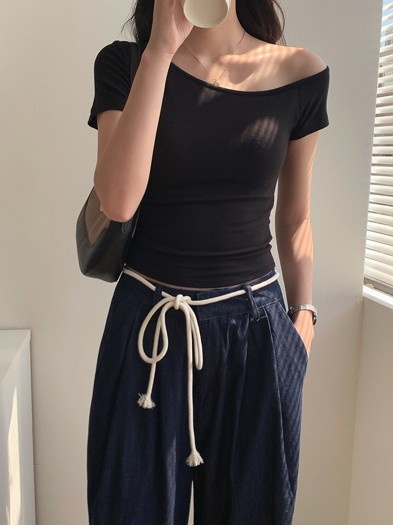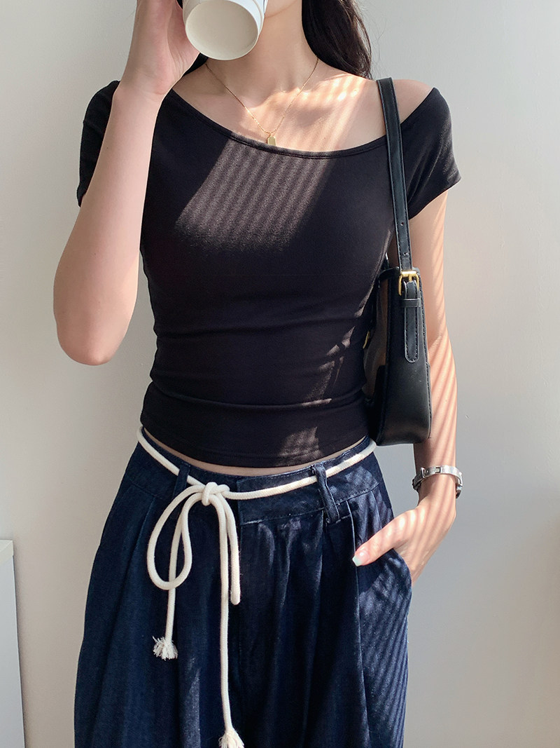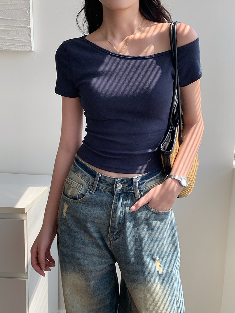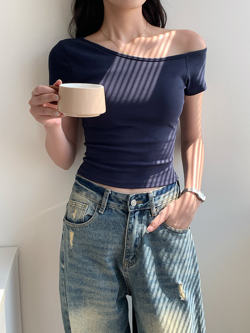 Off-Shoulder, One-Shoulder Neckline, Sexy, Off-The-Shoulder, Short-Sleeved T-Shirt for Women, Summer, Unique, with Chest Pads, Pure Lust Style, Hot Girl Short Top