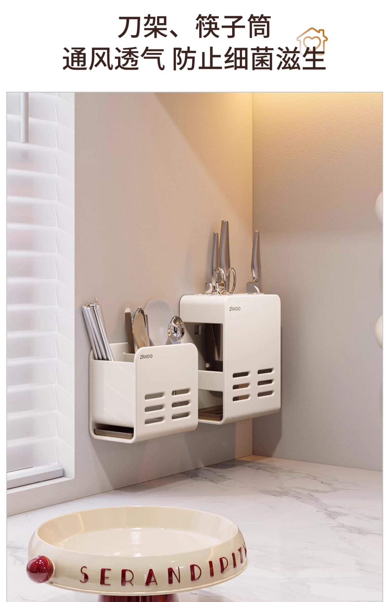 French Ziwoo Kitchen Rack Multi-Functional Wall-Mounted Condiment Rack Cutting Board Chopsticks Knife Holder Multi-Layer Storage Rack