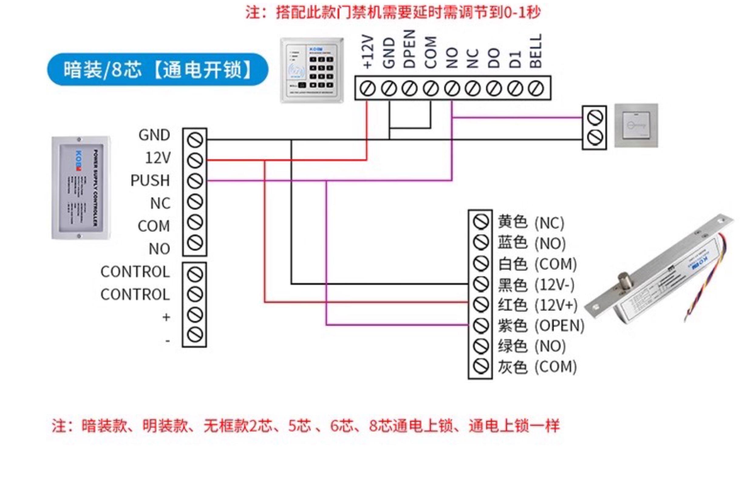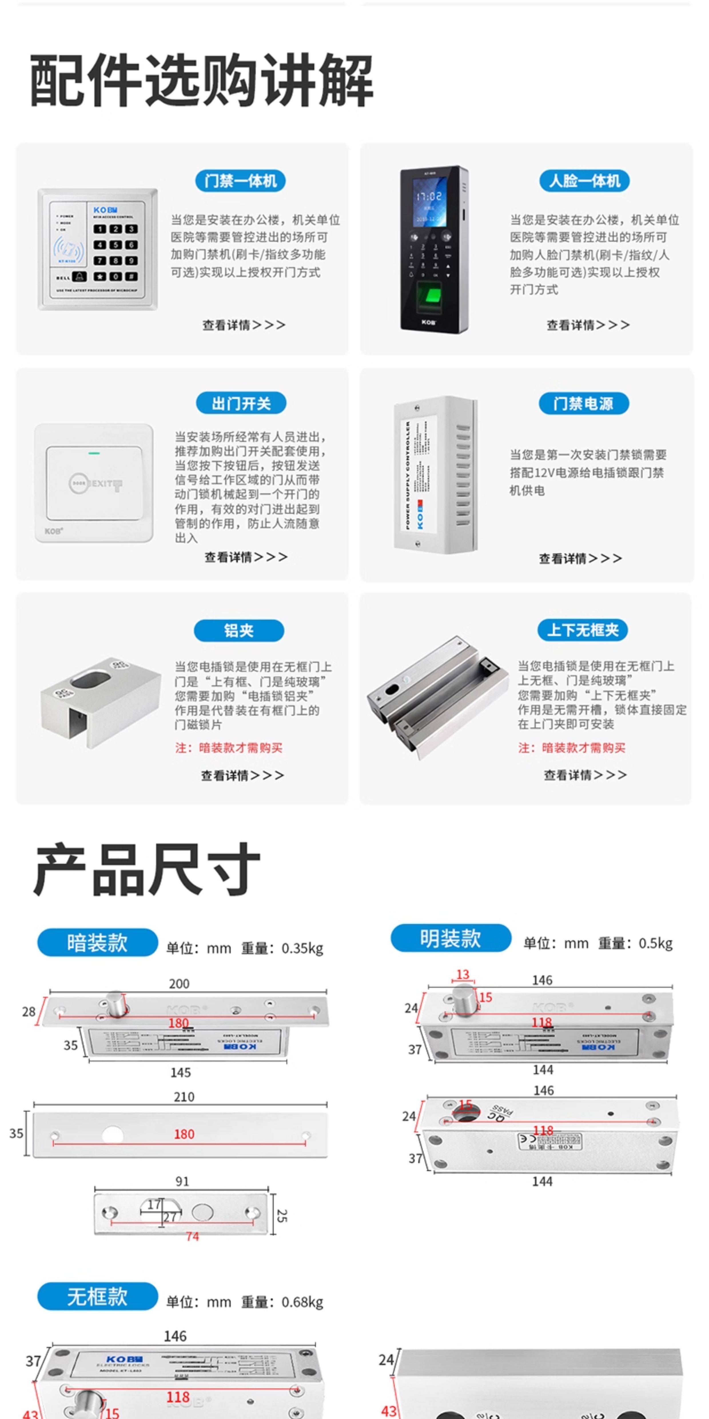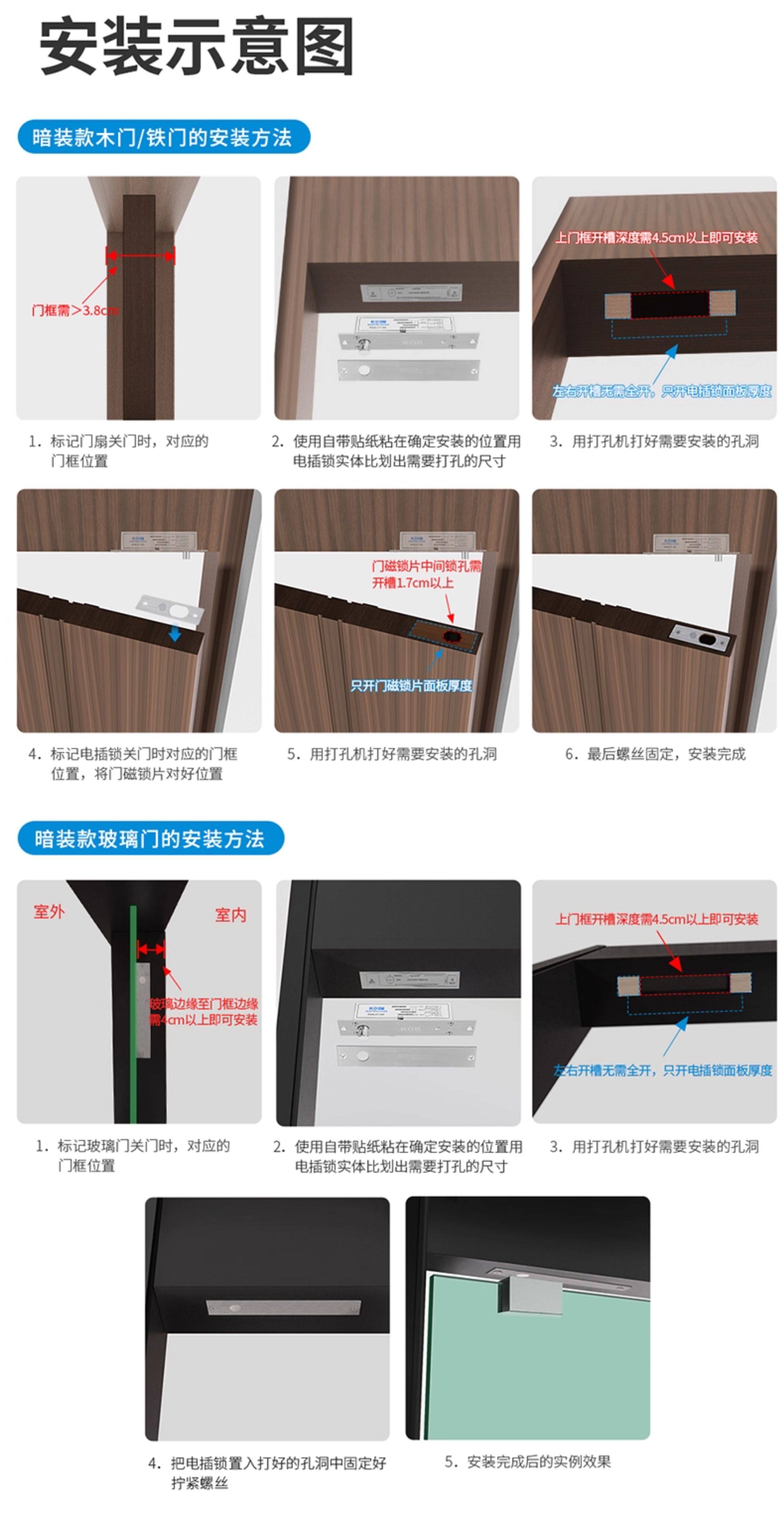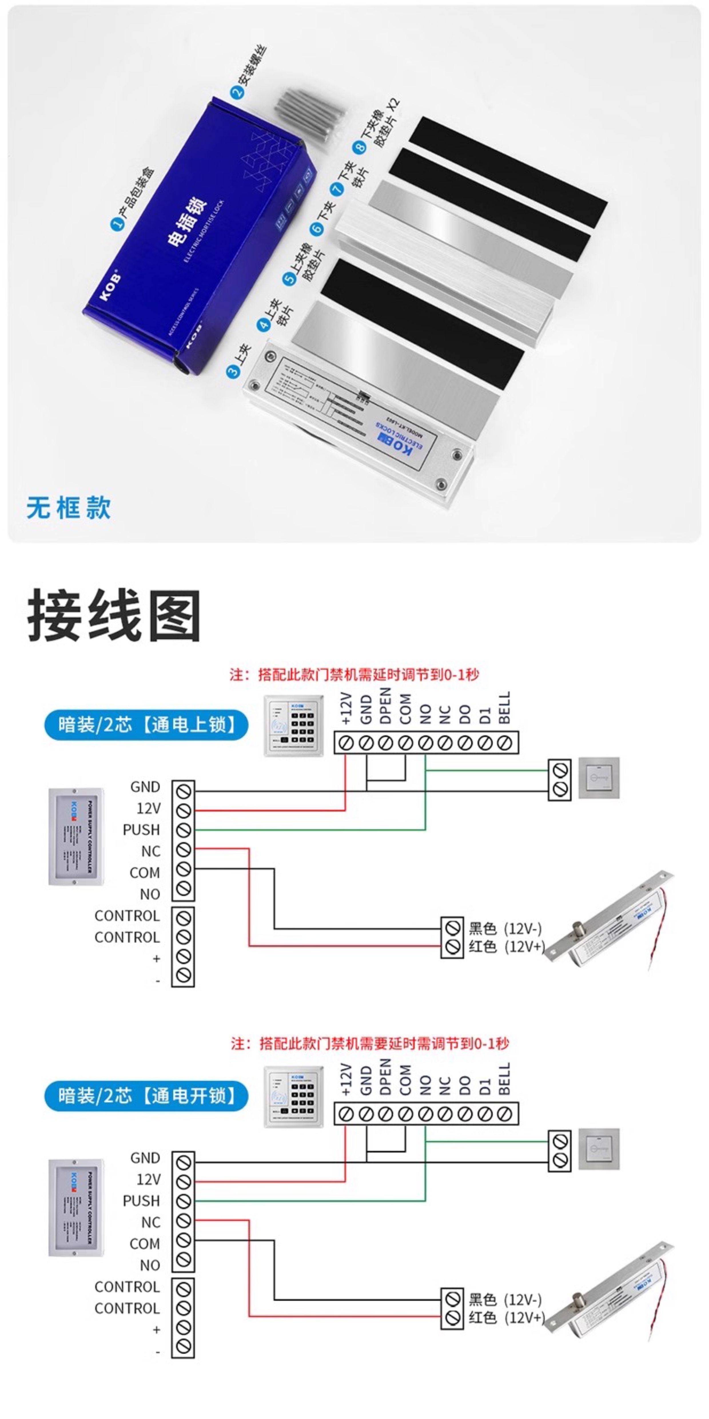 Kob Access Control Electric Bolt Lock Narrow Surface Concealed Access Control Lock Embedded Bolt Lock Glass Door Delay Feedback Electric Control Lock