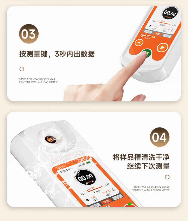 Sugar Meter Fruit High-Precision Sugar Meter Refractometer Sweetness Tester Handheld Watermelon Sugar Content Detector