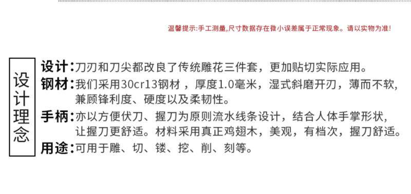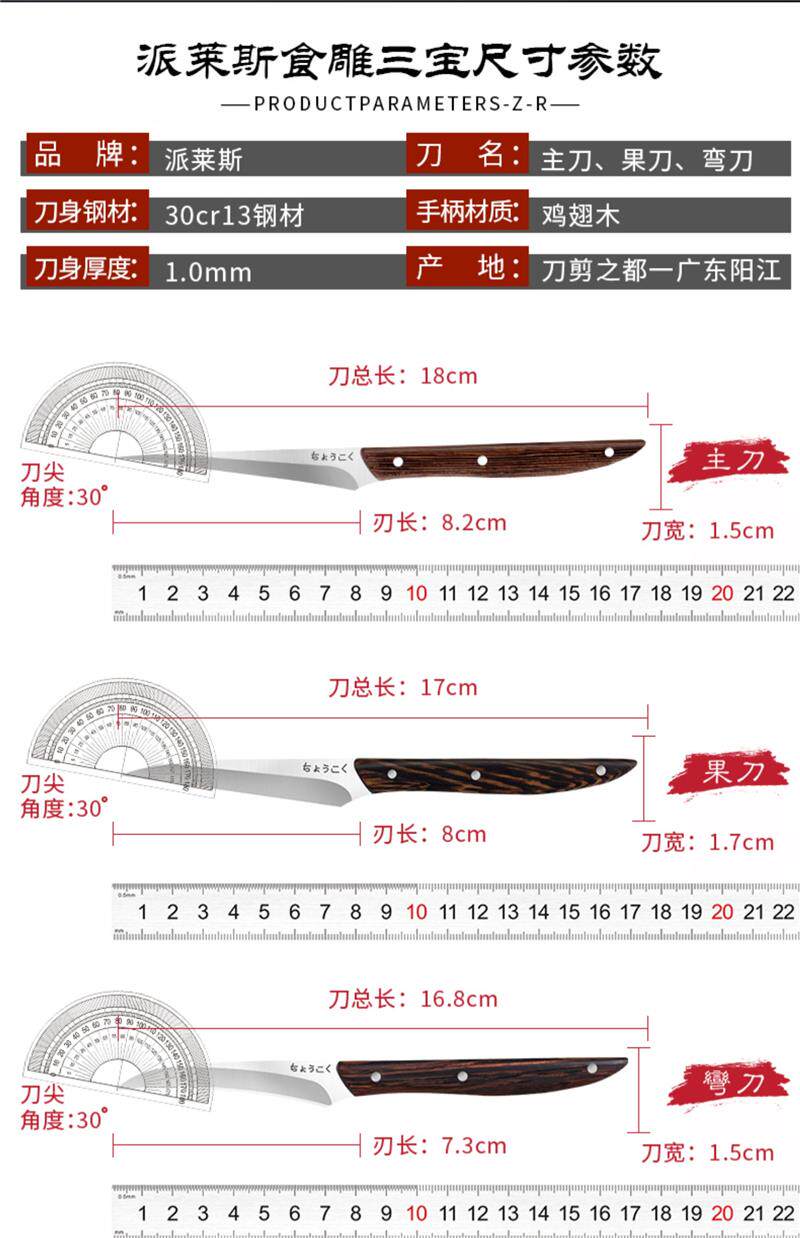 Food Carving Knife Chef Carving Set Professional Fruit Platter Radish Carving Knife Carving Three-Piece Set Plys