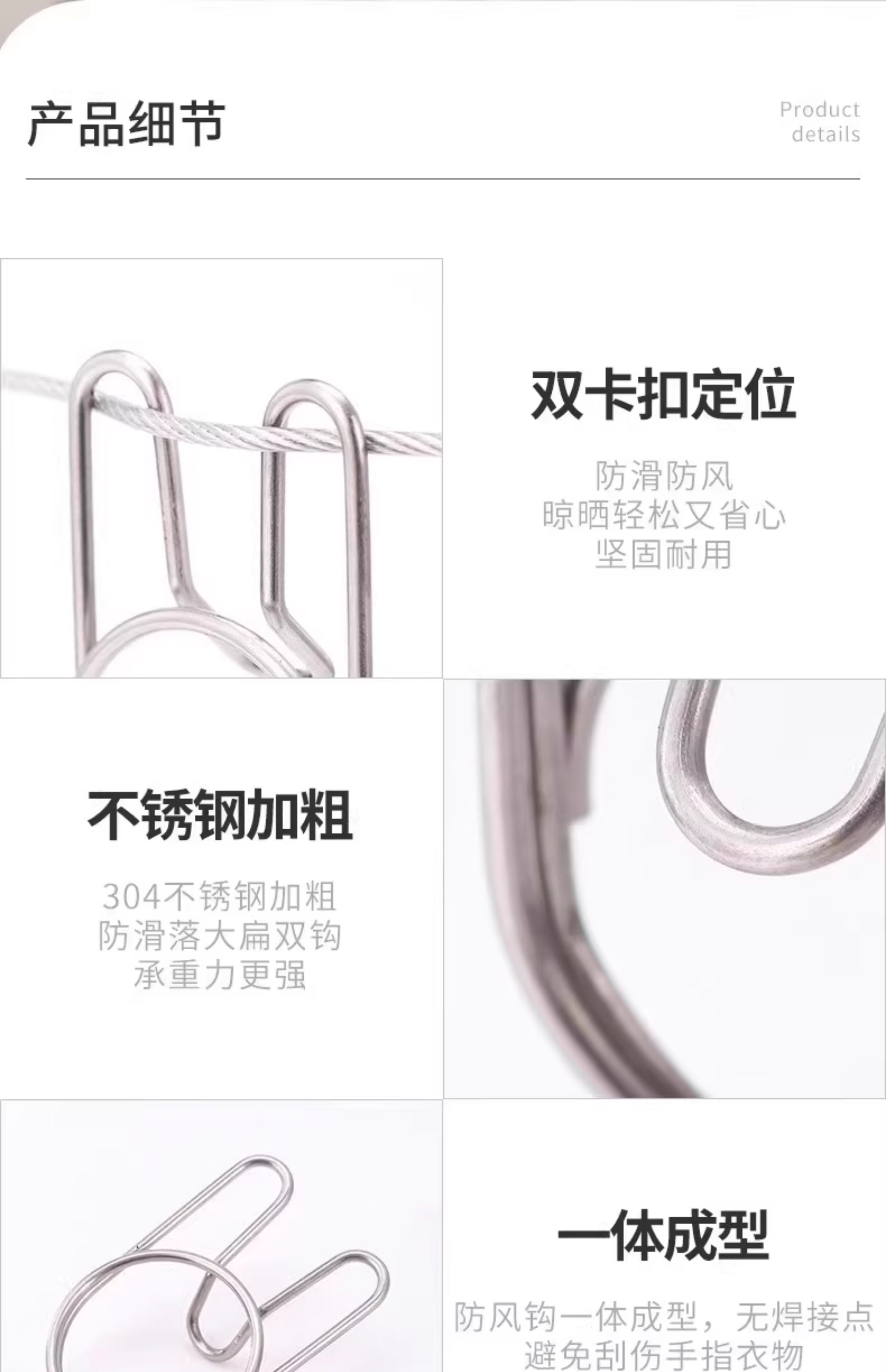 Clothesline Clothes Hanger Windproof Fixed Buckle Fixed Clip Stainless Steel Outdoor Clothes Anti-Slip Spacer Anti-Falling Multi-Function