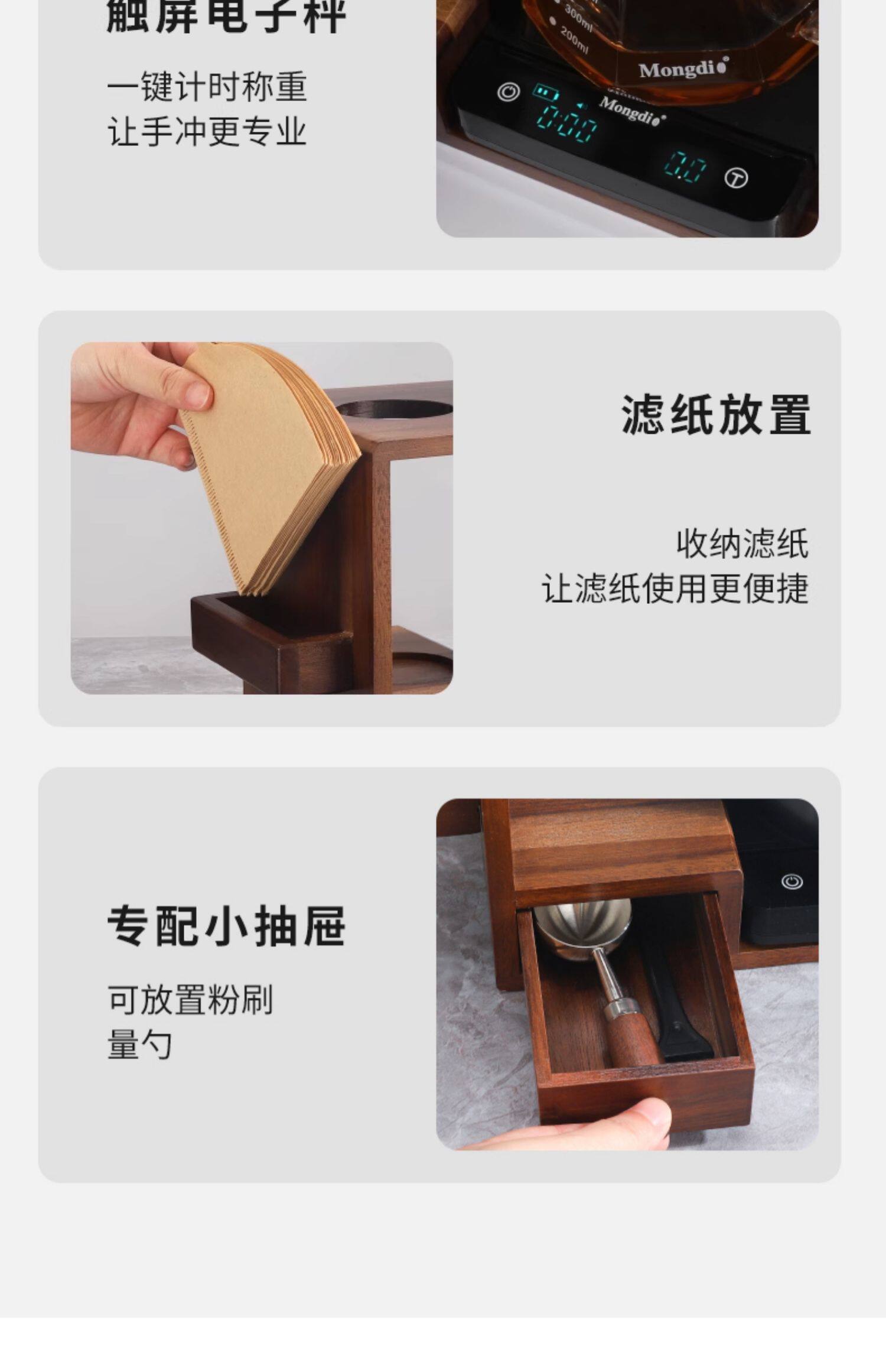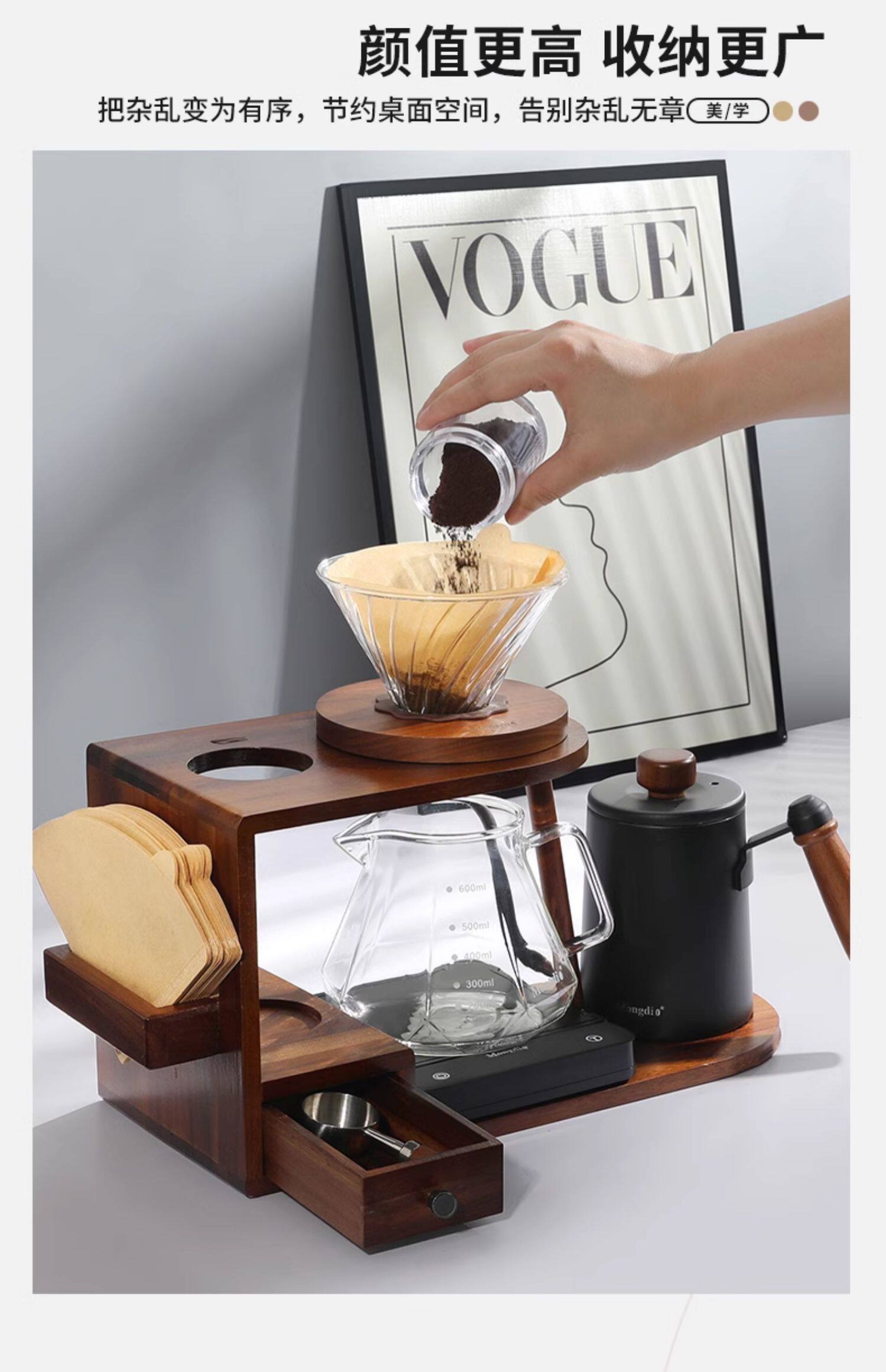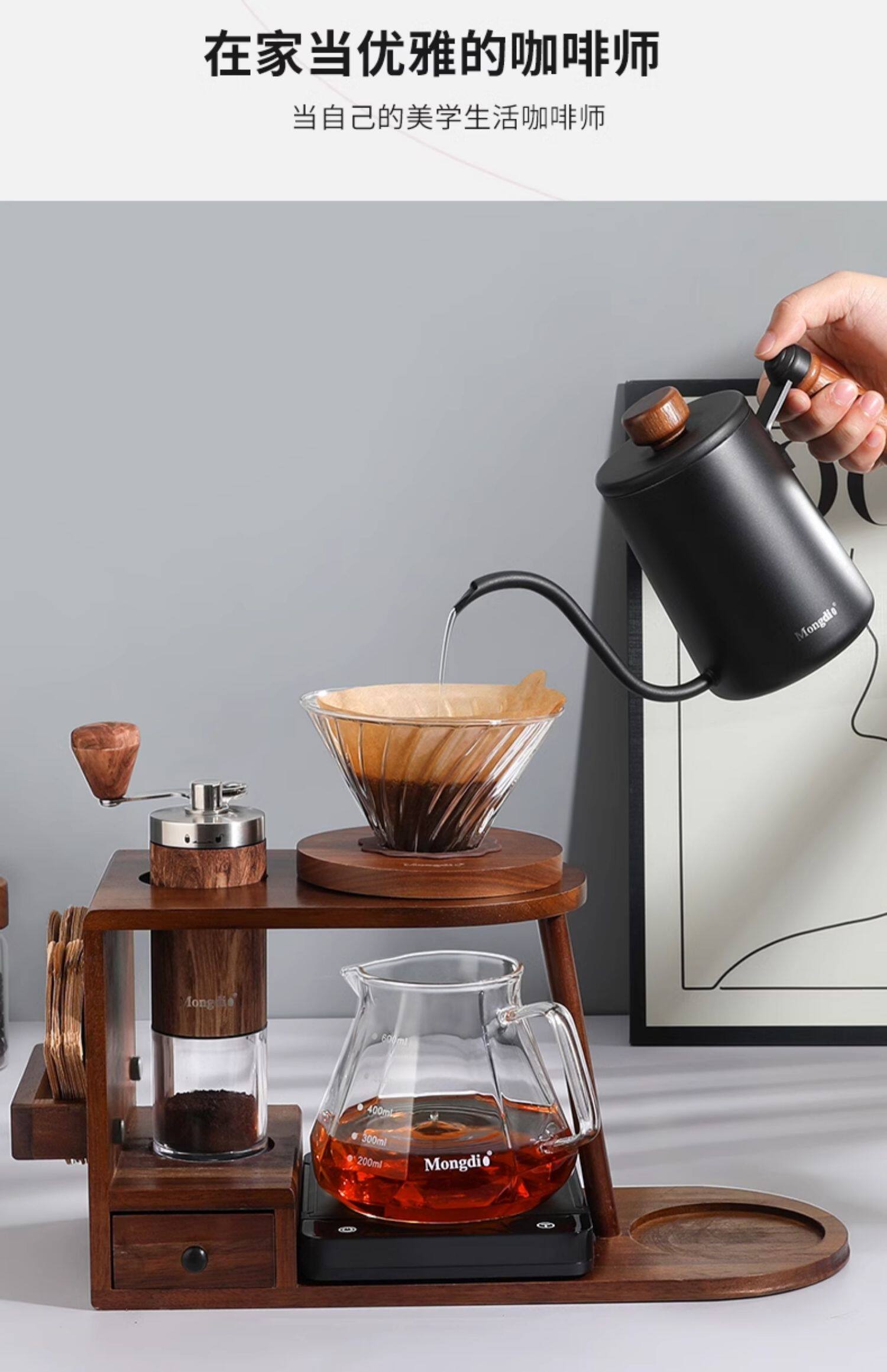 Mongdio Hand-Brewed Coffee Pot Stand Set Glass Sharing Pot Filter Cup Storage Rack Hand Grinder Coffee Machine Equipment