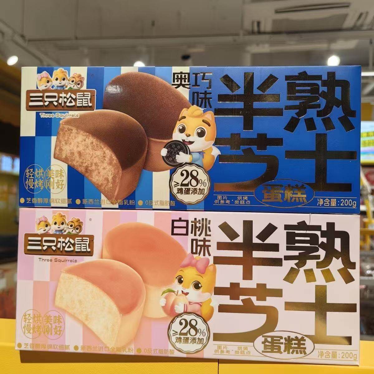 Three Squirrels Half-Cooked Cheesecake White Peach Aojiao Bread 200g Snack Breakfast Pastries Nutritious Meal Replacement Delicious