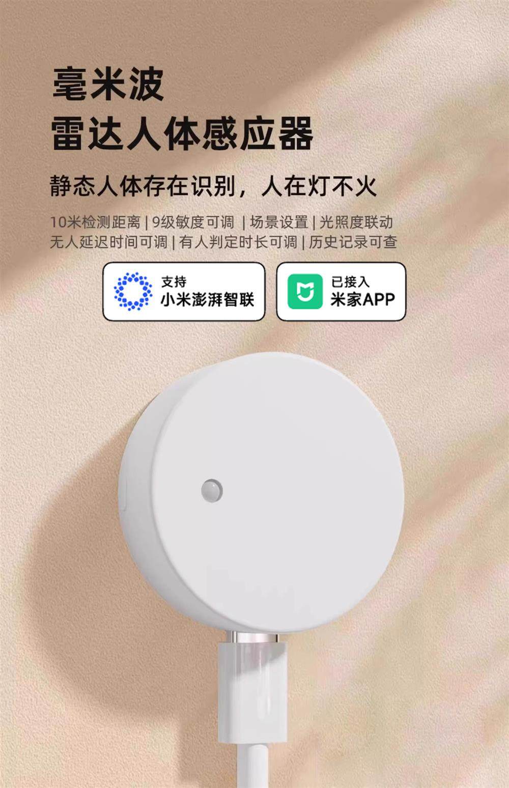 Bluetooth Mesh Light Sensor Smart Device Linkage Has Been Integrated into Mijia Ceiling-Mounted Smart Human Presence Sensor Millimeter-Wave Radar with a Detection Range of 10m Has Been Integrated into Mijia Bluetooth Mesh
