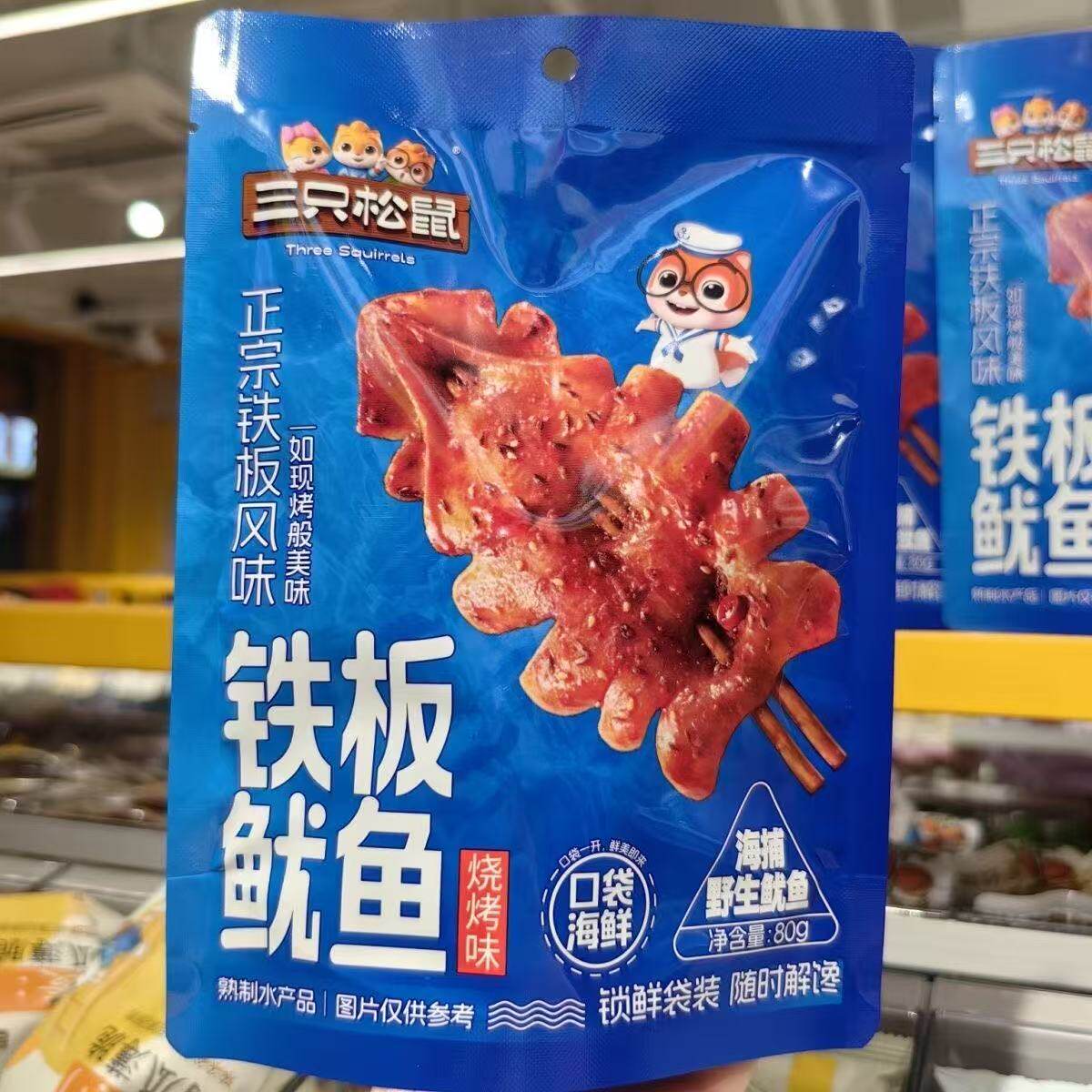 Three Squirrels Iron Plate Squid Bbq Flavor 80g Authentic Snack for Satisfying Cravings, Individually Packaged Ready-To-Eat Seafood