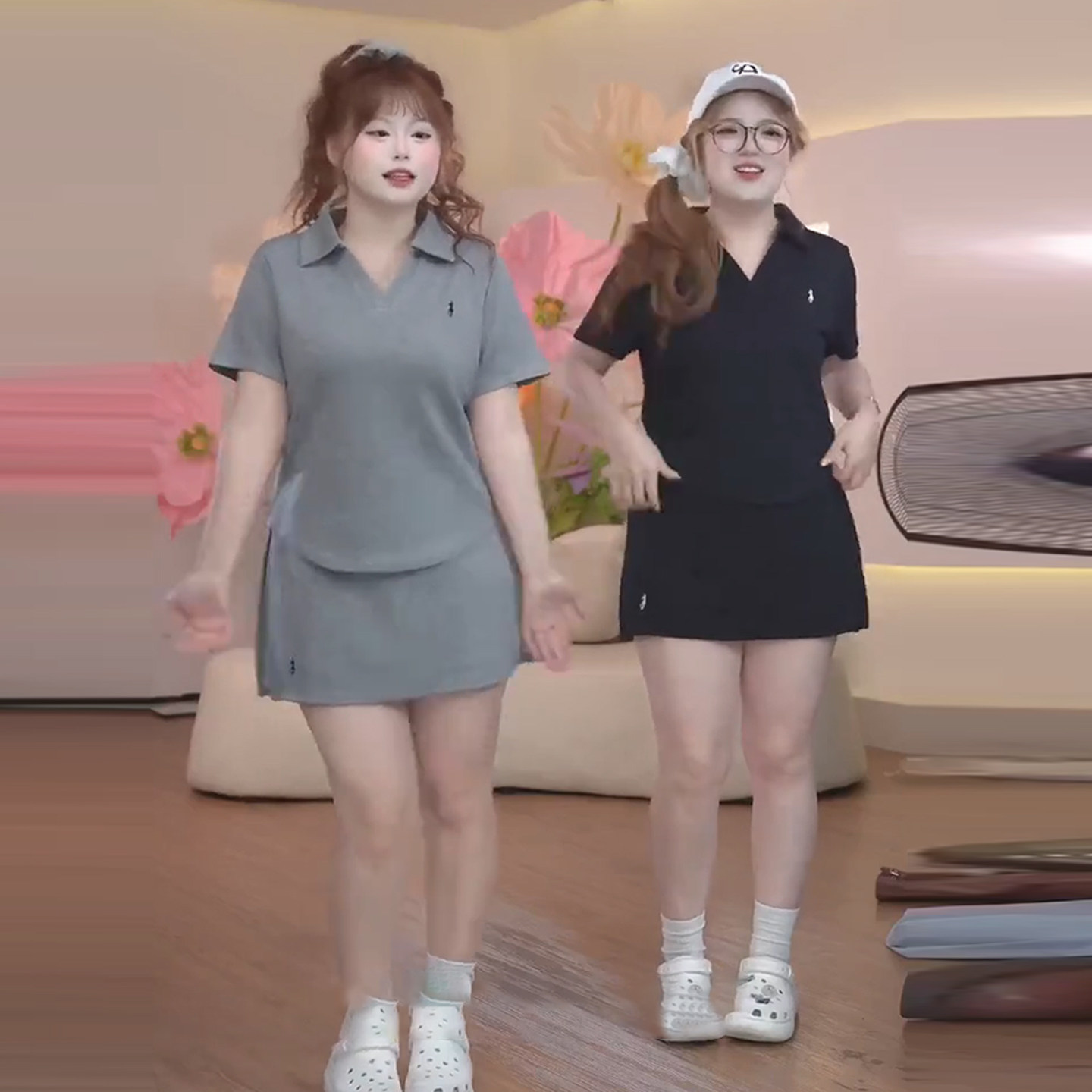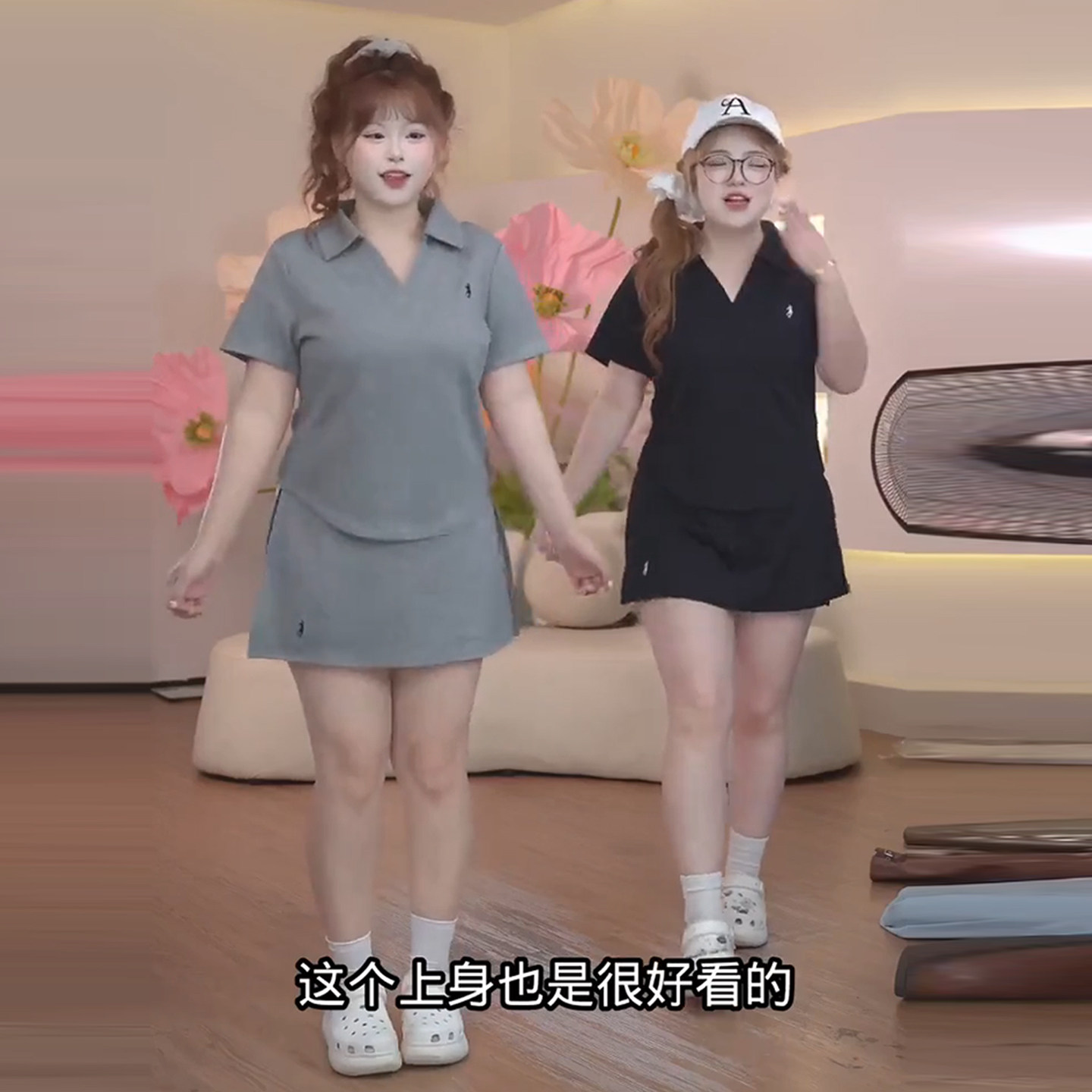 Plus Size Fashion Casual Suit for Women in Summer, Slimming Polo Collar Short-Sleeved T-Shirt + High-Waisted Short Skirt Two-Piece Set