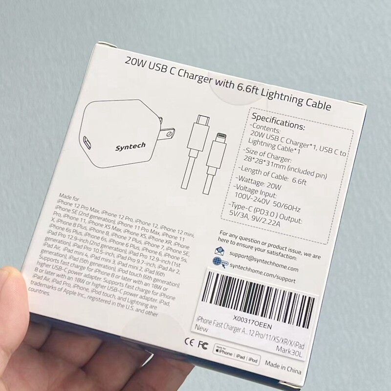 Syntech Original Pd Fast Charging 20W Charging Head + Mfi Certified C94 Cable C to Lightning Cable 2m Set Suitable for Apple 8 X Xr 11 12 13 14 Mobile Phones and Tablets