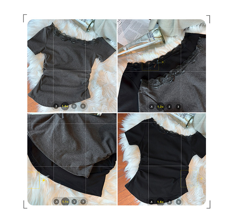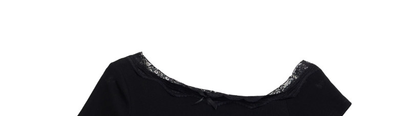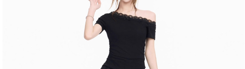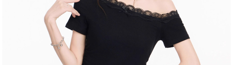 Lace Splicing Bow Slanted Shoulder Short-Sleeved T-Shirt for Women Summer Design American Sexy Tight Slimming Look Top