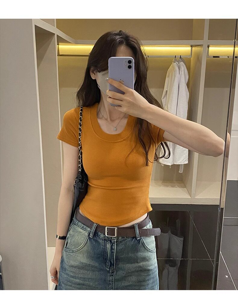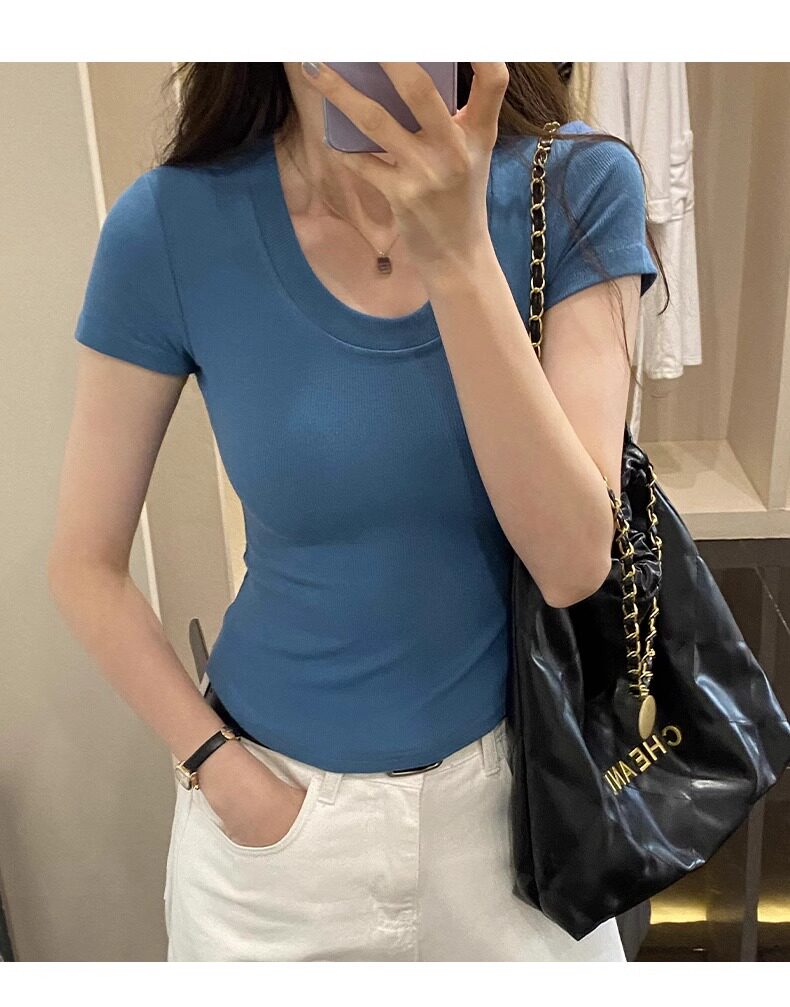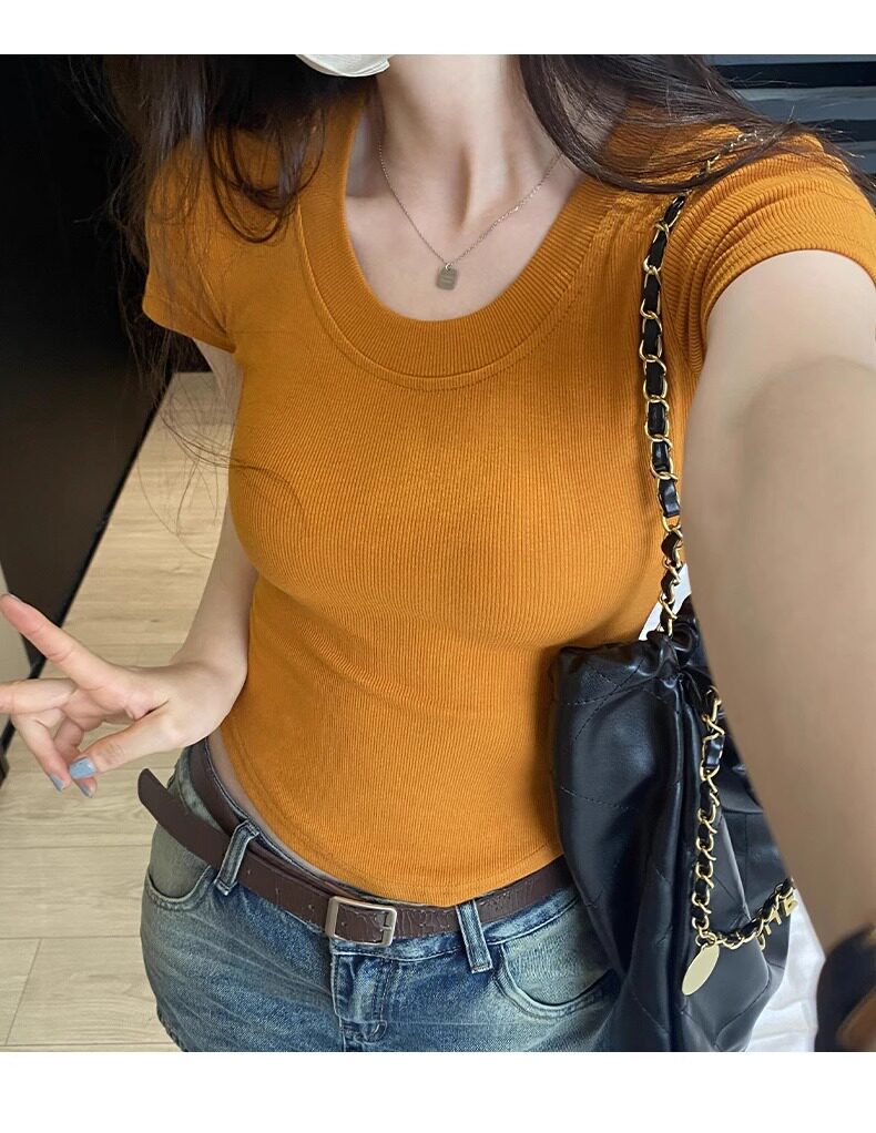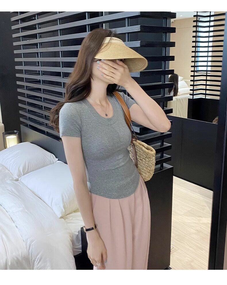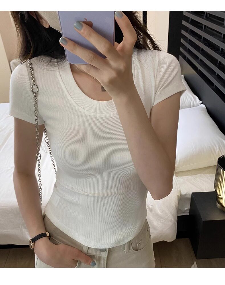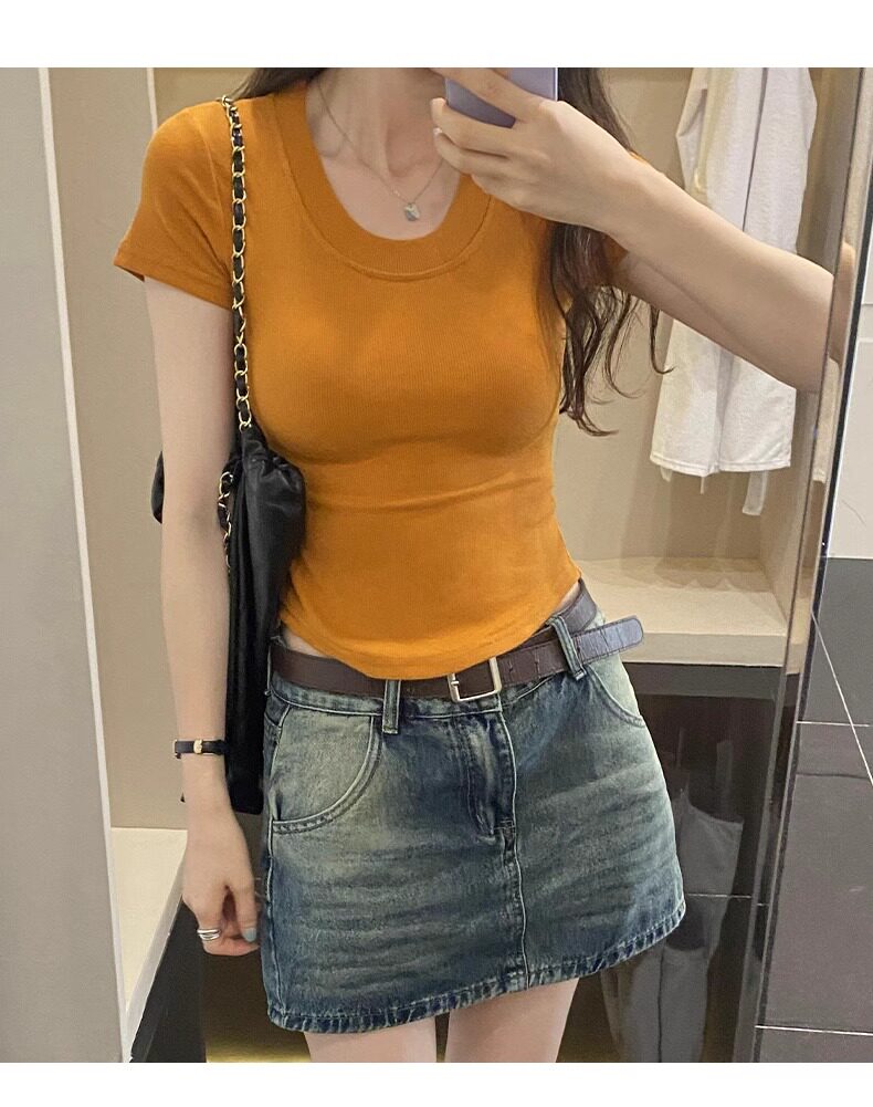 Age-Reducing Round-Neck Korean-Style Short-Sleeved T-Shirt for Women, Summer 2025 New Style, Tight-Fitting, Slimming, Regular Shoulder, Inner Wear Top