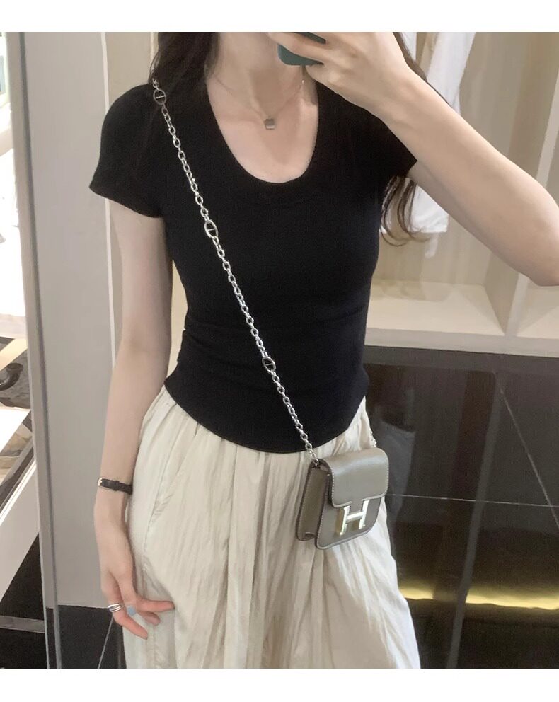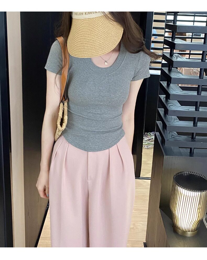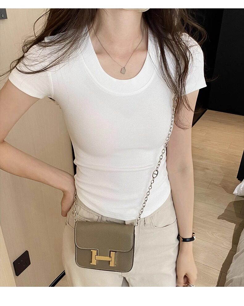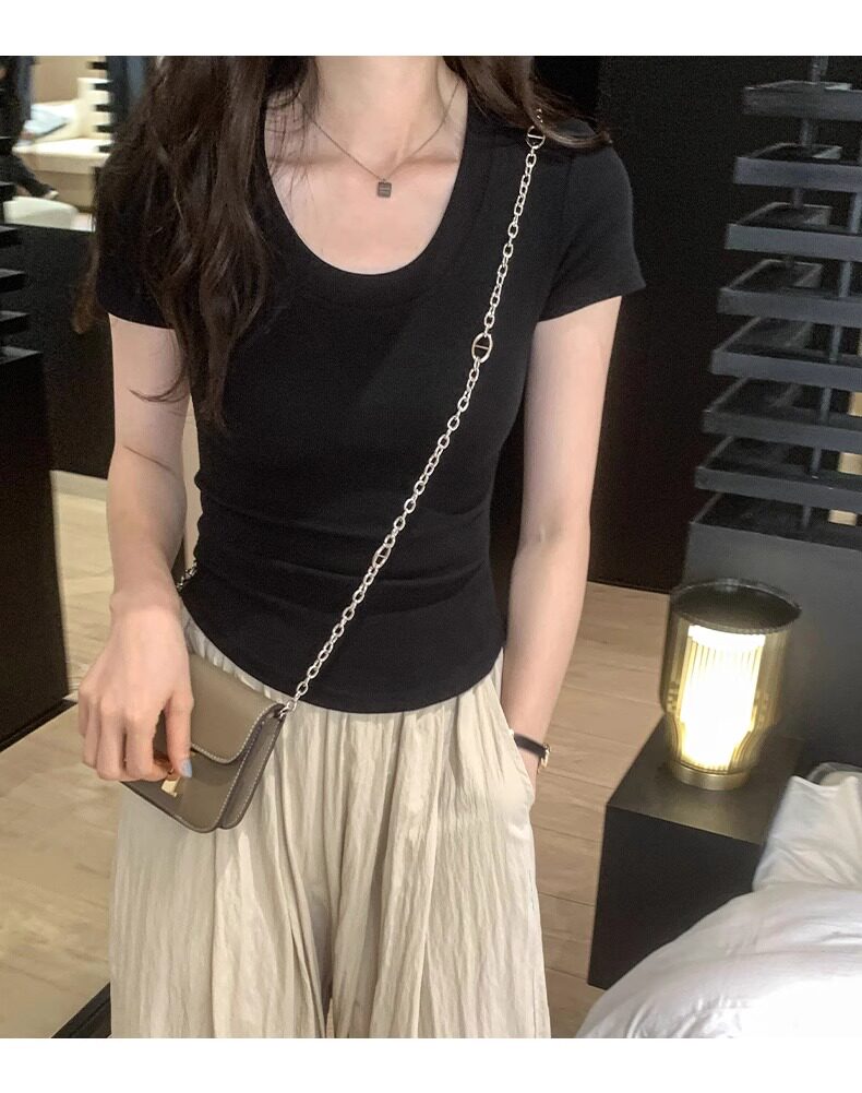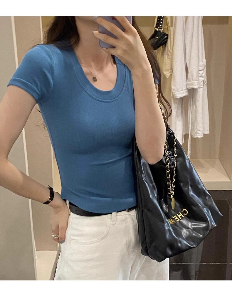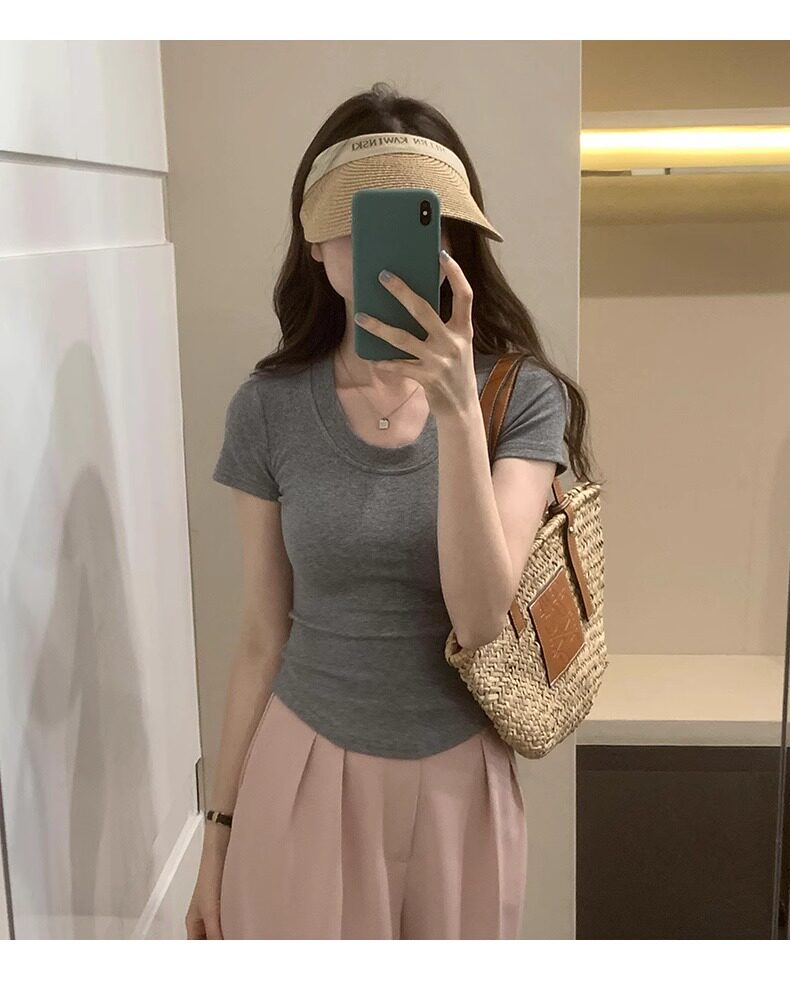 Age-Reducing Round-Neck Korean-Style Short-Sleeved T-Shirt for Women, Summer 2025 New Style, Tight-Fitting, Slimming, Regular Shoulder, Inner Wear Top