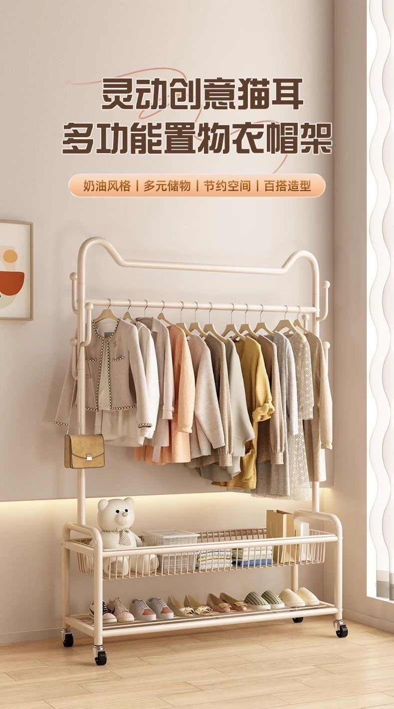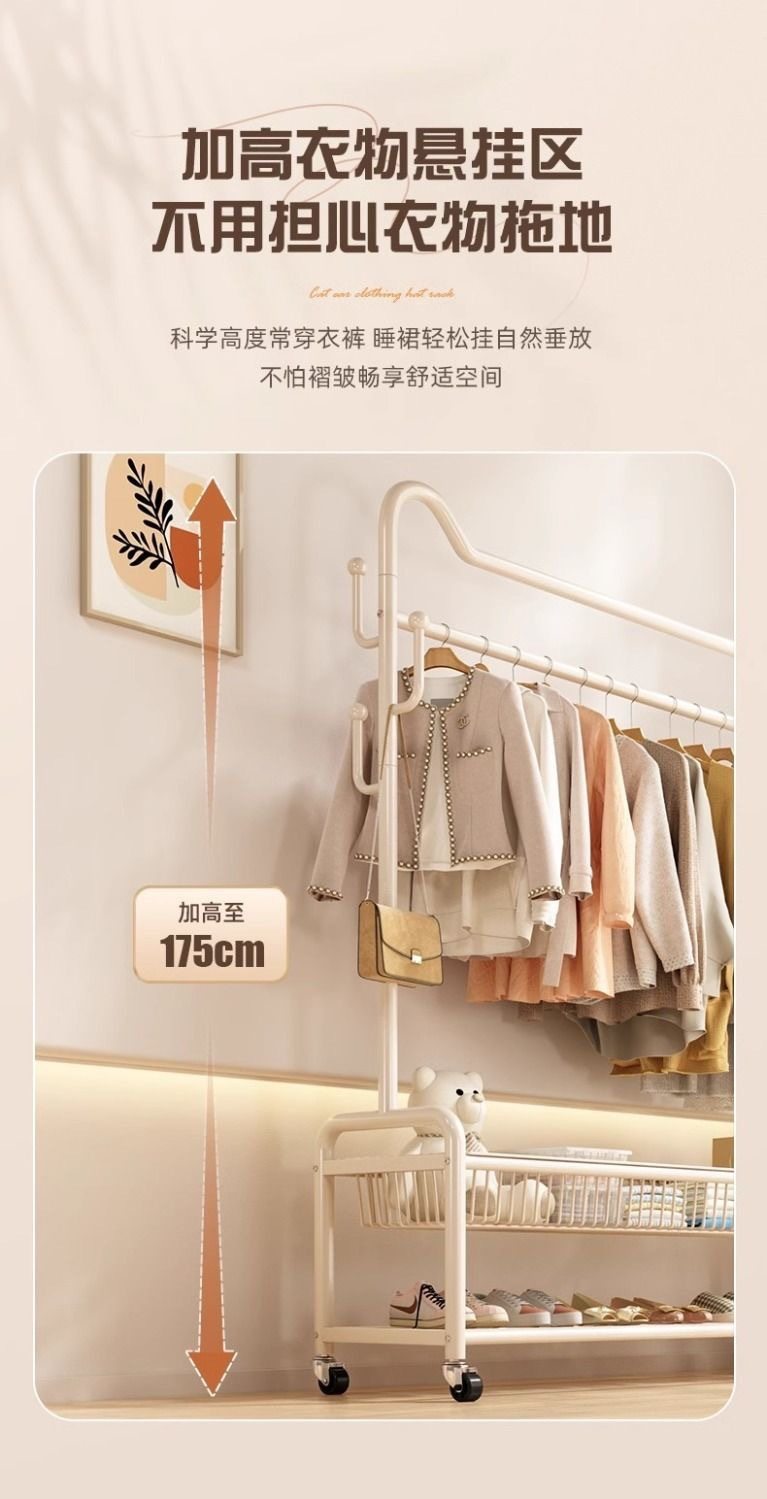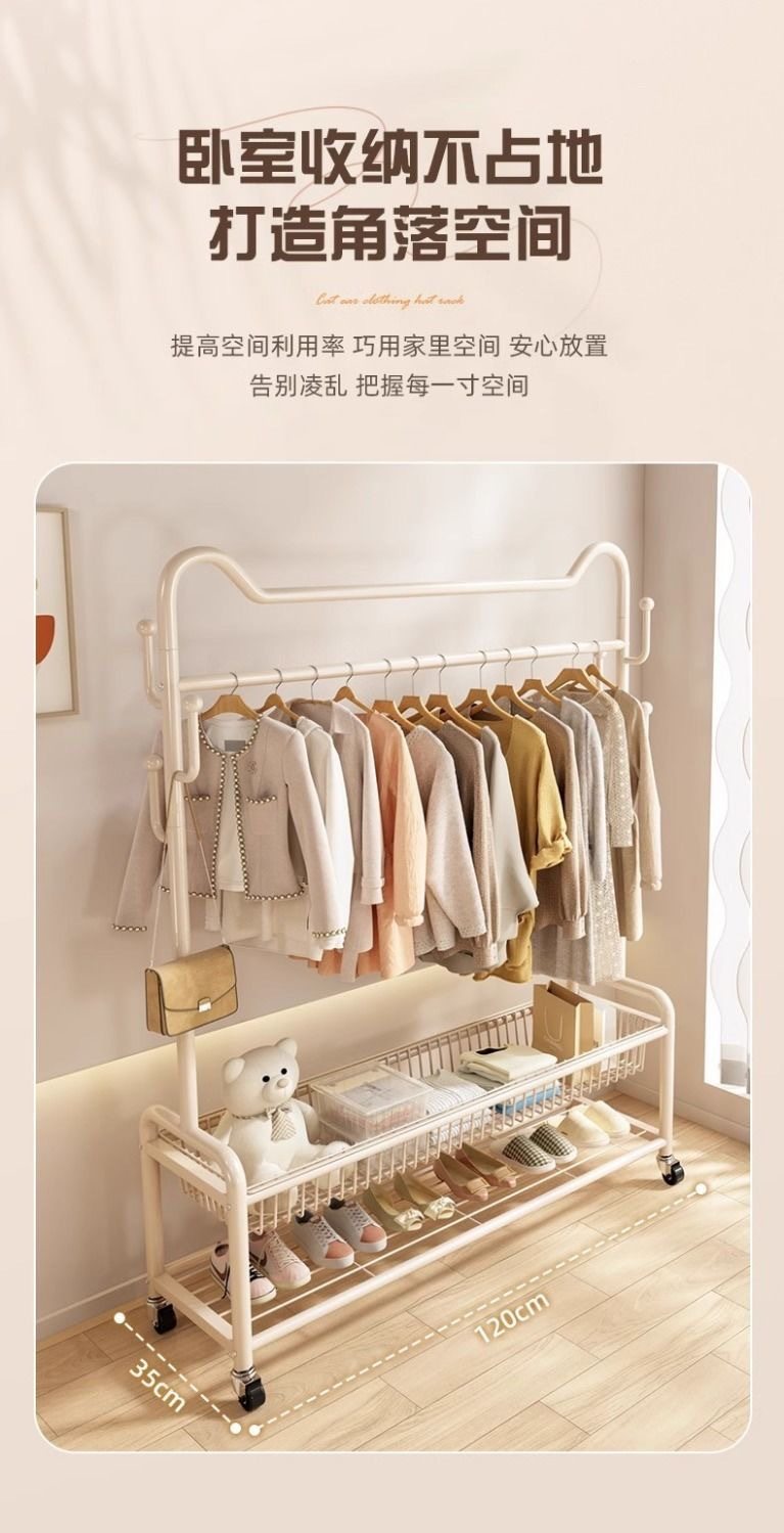 Bedroom Floor-Standing Balcony Home Clothes Rail Rack Metal Coat Rack Cabinet Room Storage Rack Clothes Drying Artifact