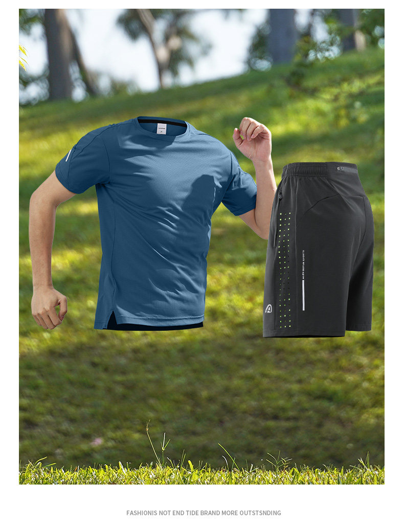 New Sports Suit Men's Summer Quick-Drying Training Running Marathon Short-Sleeved Shorts Can Hold Mobile Phone Fitness Clothes