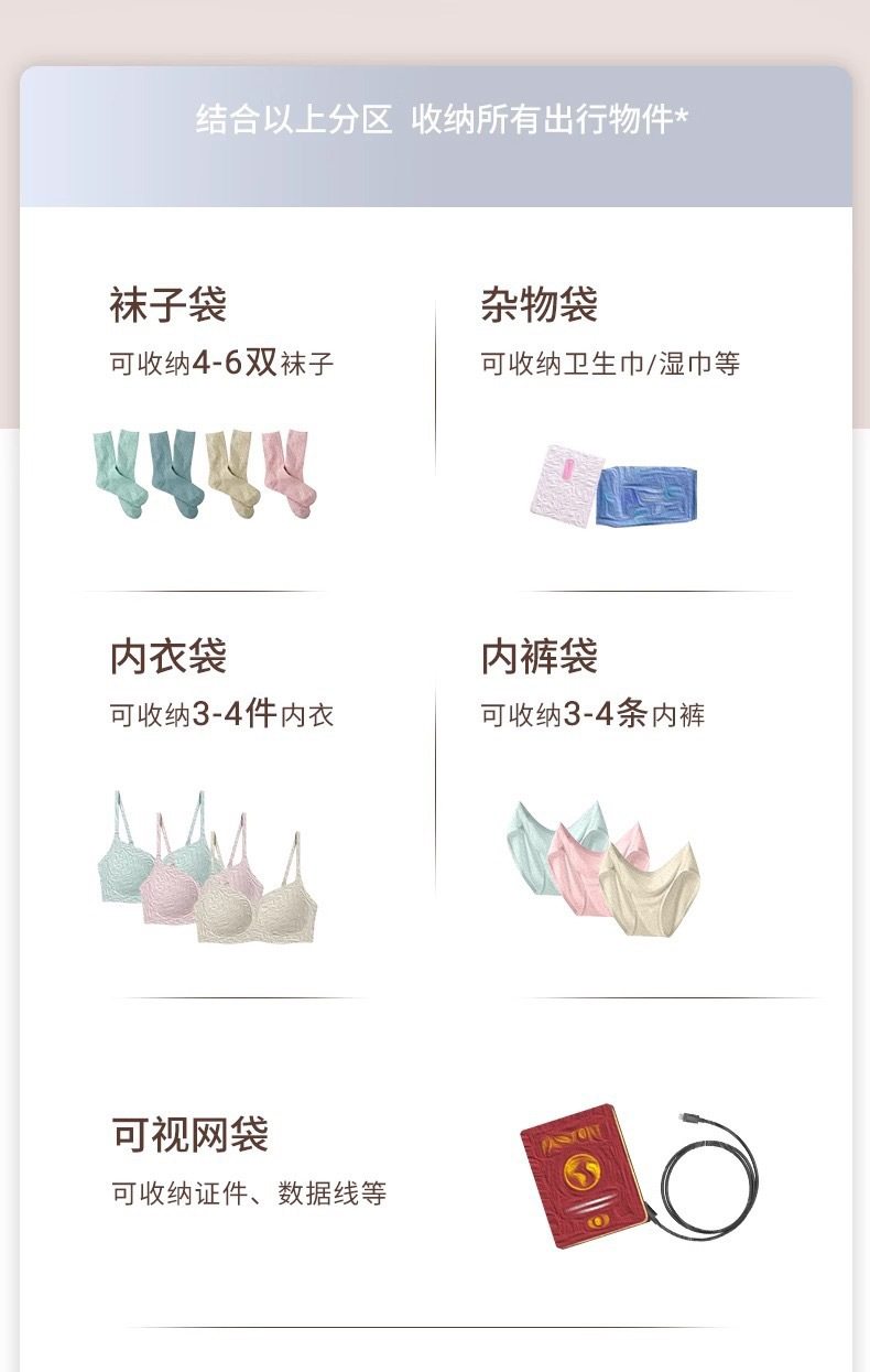 Seven-In-One Travel Storage Bag, Portable Organizer Bag, Special Clothing Bag for Underwear, Business Trip Luggage
