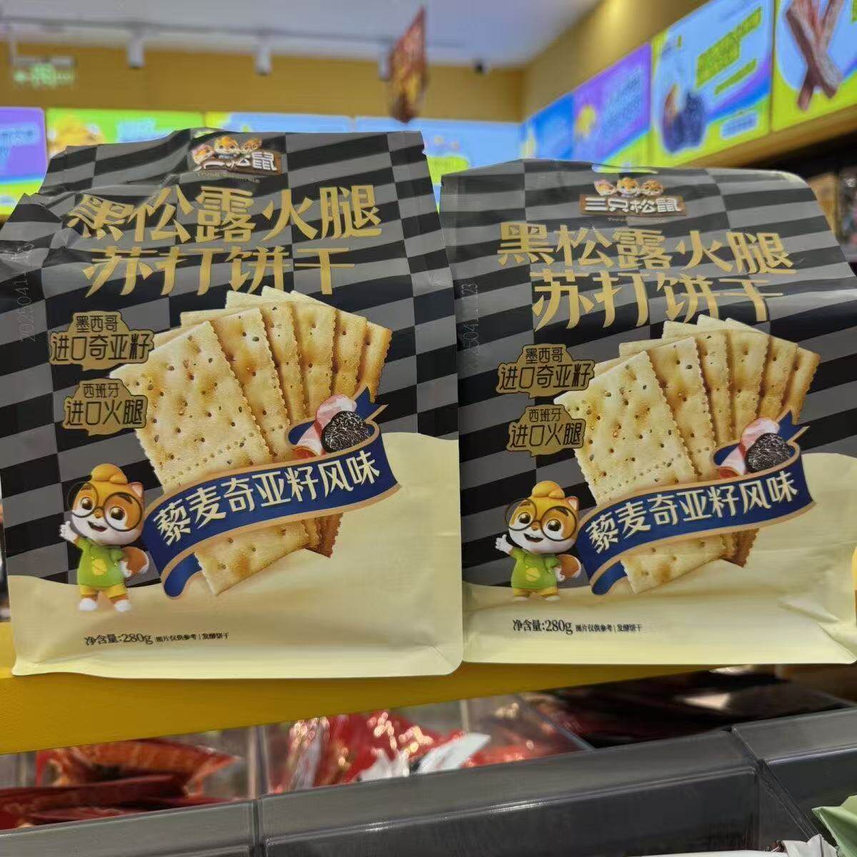 Three Squirrels Black Truffle Ham Soda Crackers 280g Quinoa Chia Seed Flavor Casual Meal Replacement Snacks