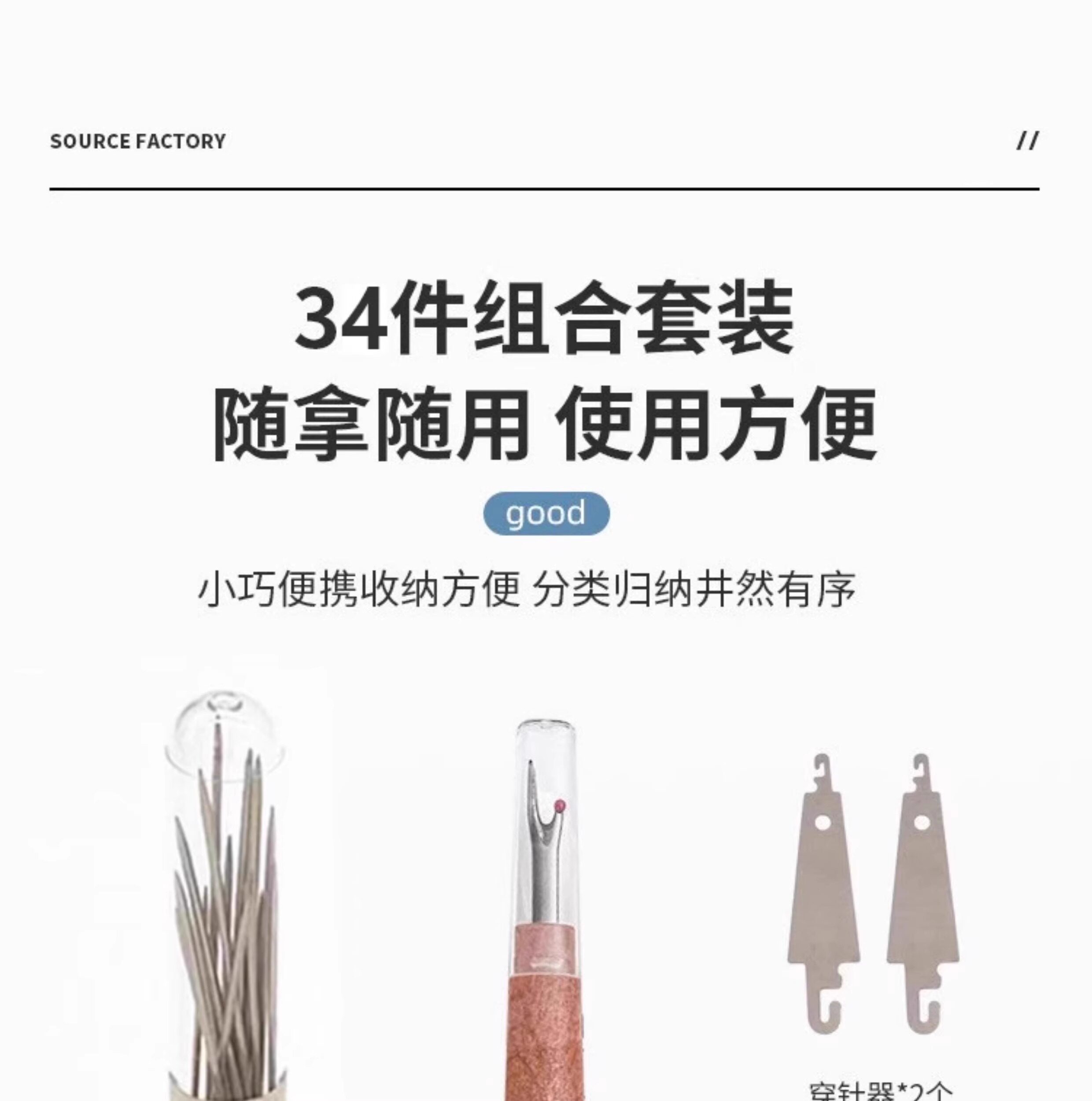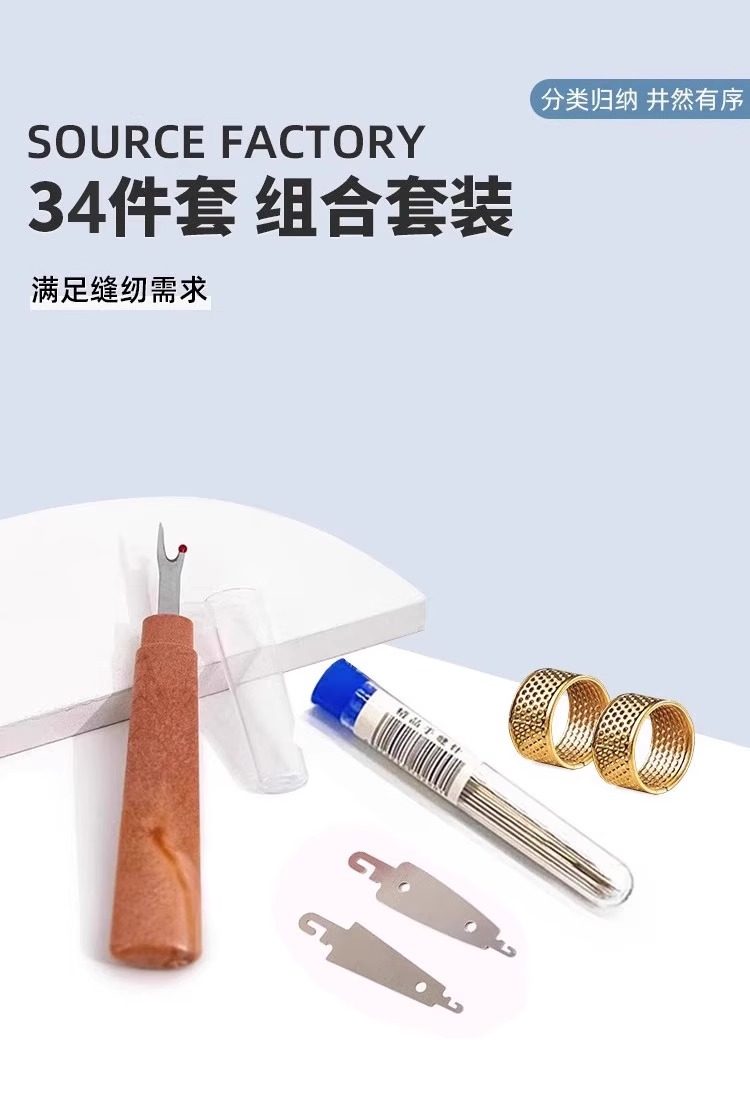 Color Classification (1 Set)[34-Piece Set⭐]25 Needles + 3 Rolls of Thread + 2 Needle Threaders + 2 Thimbles + 1 Seam Ripper + 1 Syringe,(2 Sets)[34-Piece Set⭐]25 Needles + 3 Rolls of Thread + 2 Needle Threaders + 2 Thimbles + 1 Seam Ripper + 1 Syringe