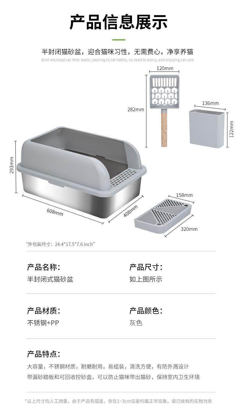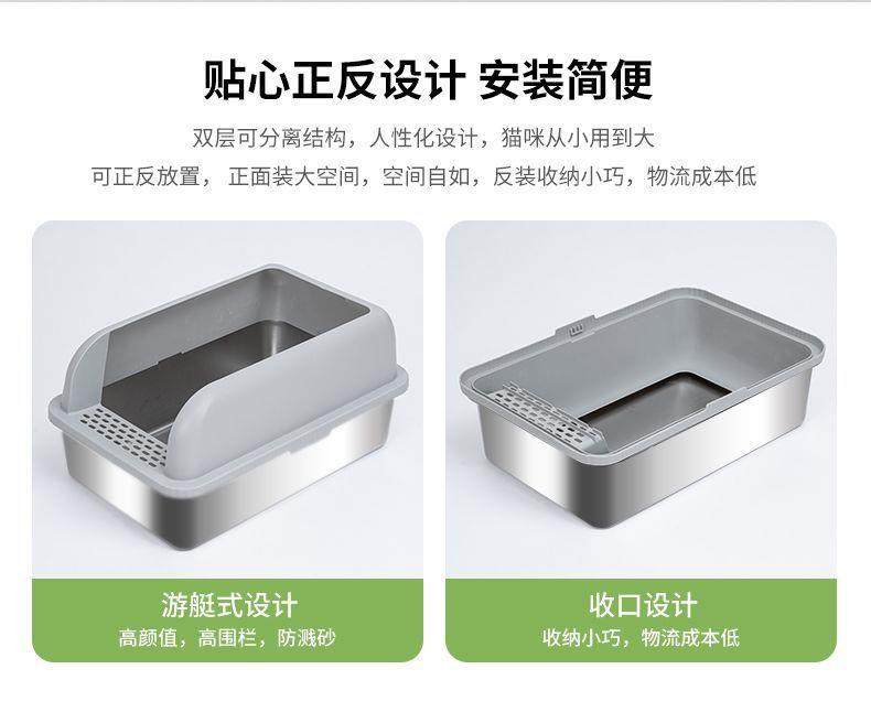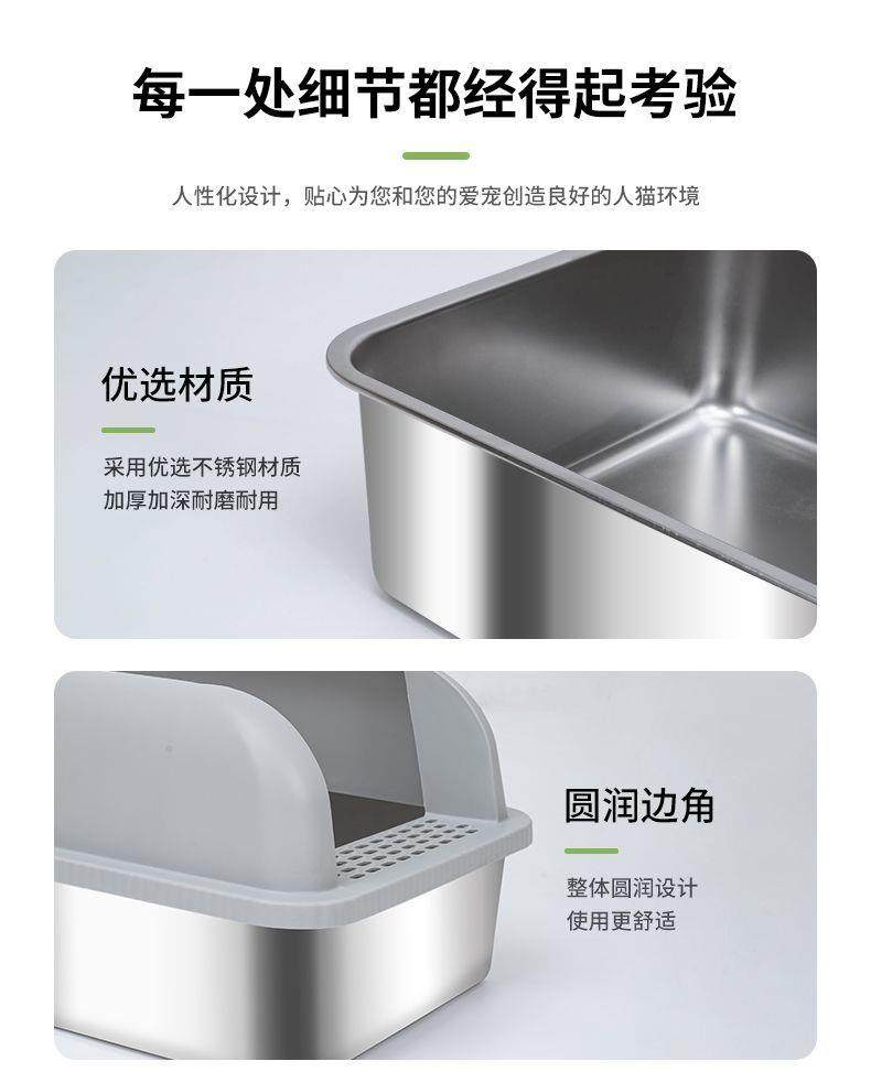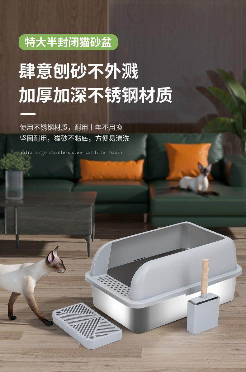 Monster Bump Stainless Steel Cat Litter Box Semi-Enclosed Extra Large Open Cat Litter Box Easy to Clean Cat Toilet