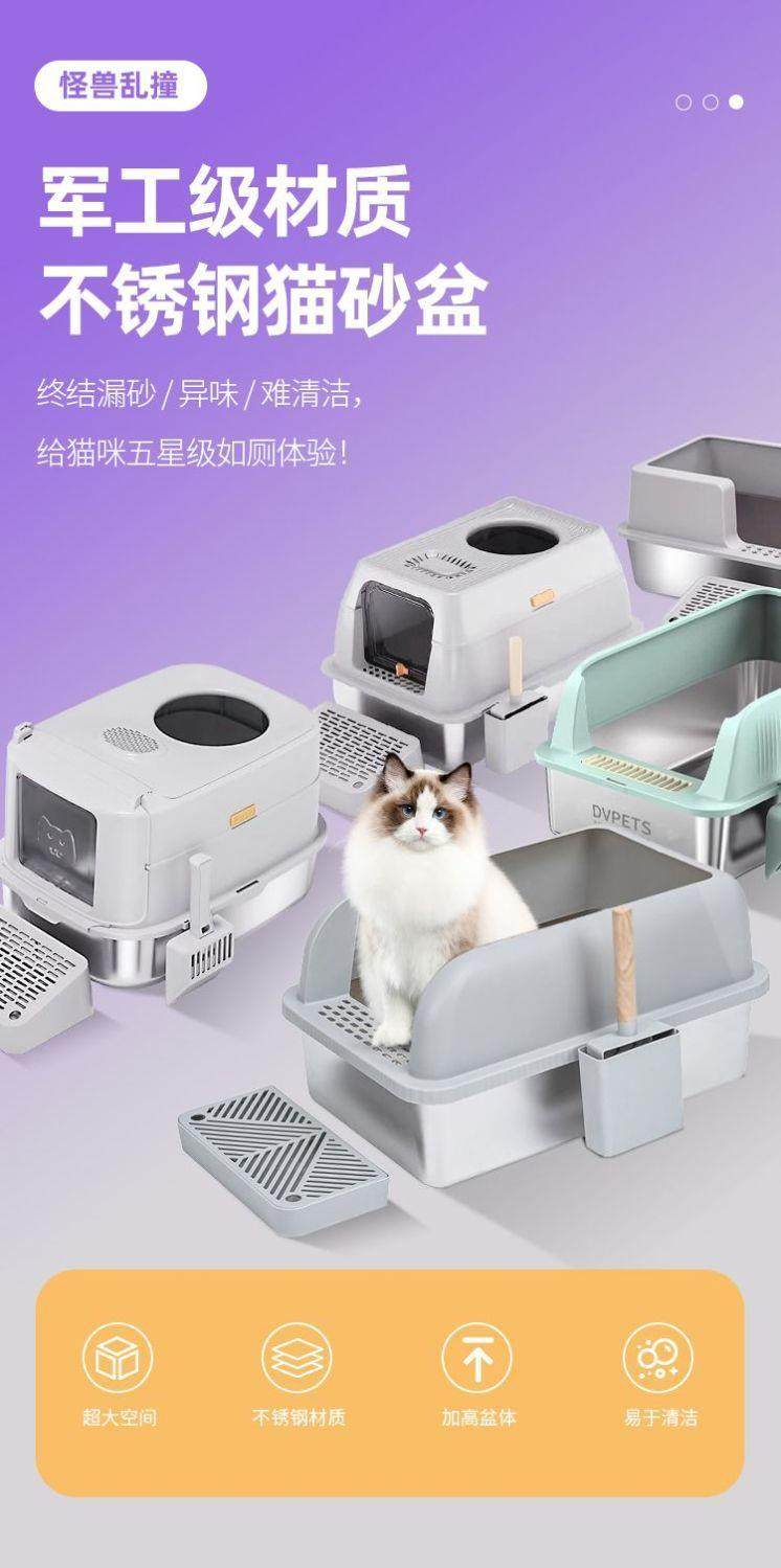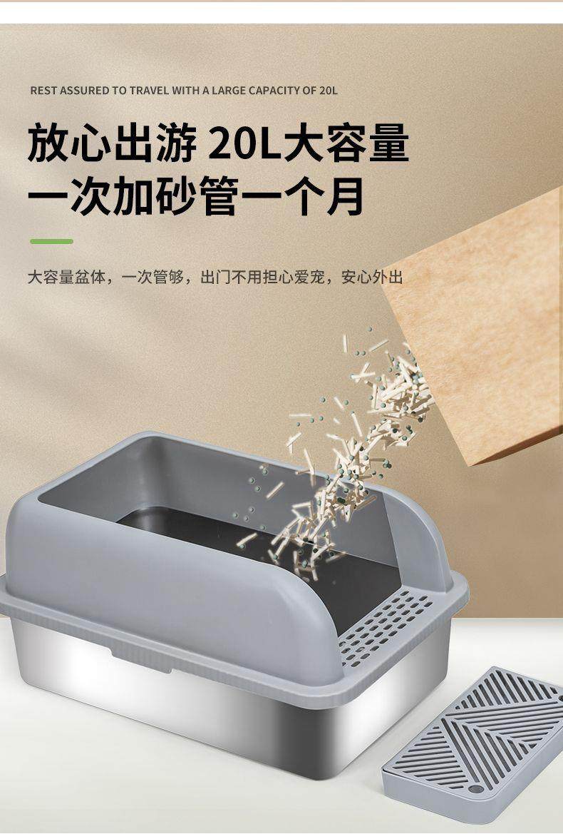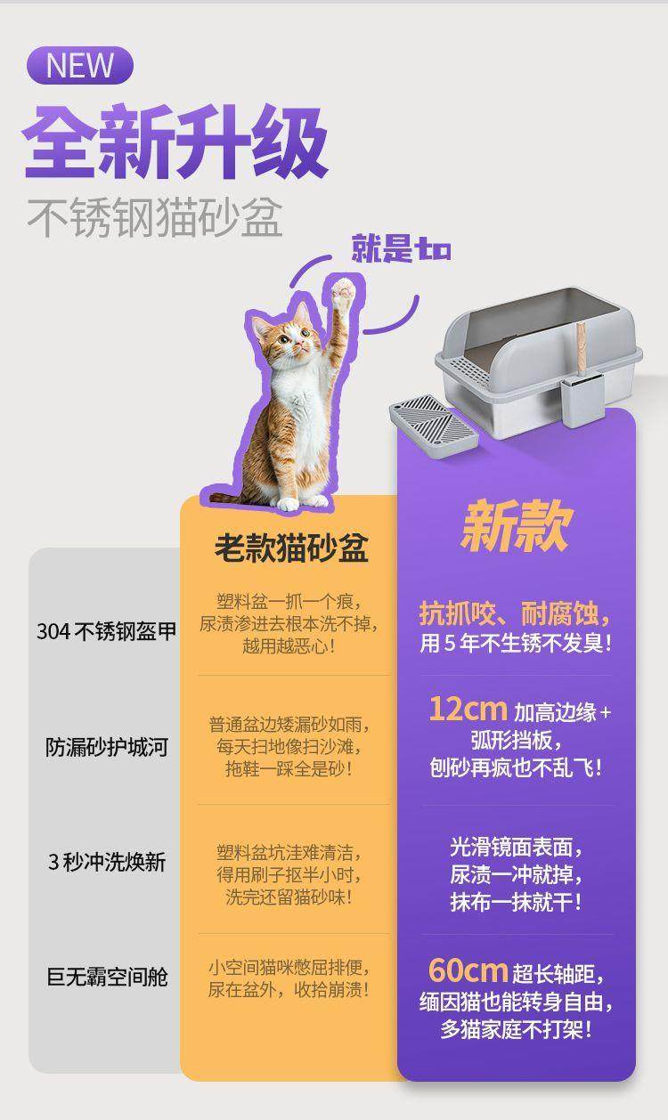 Monster Bump Stainless Steel Cat Litter Box Semi-Enclosed Extra Large Open Cat Litter Box Easy to Clean Cat Toilet