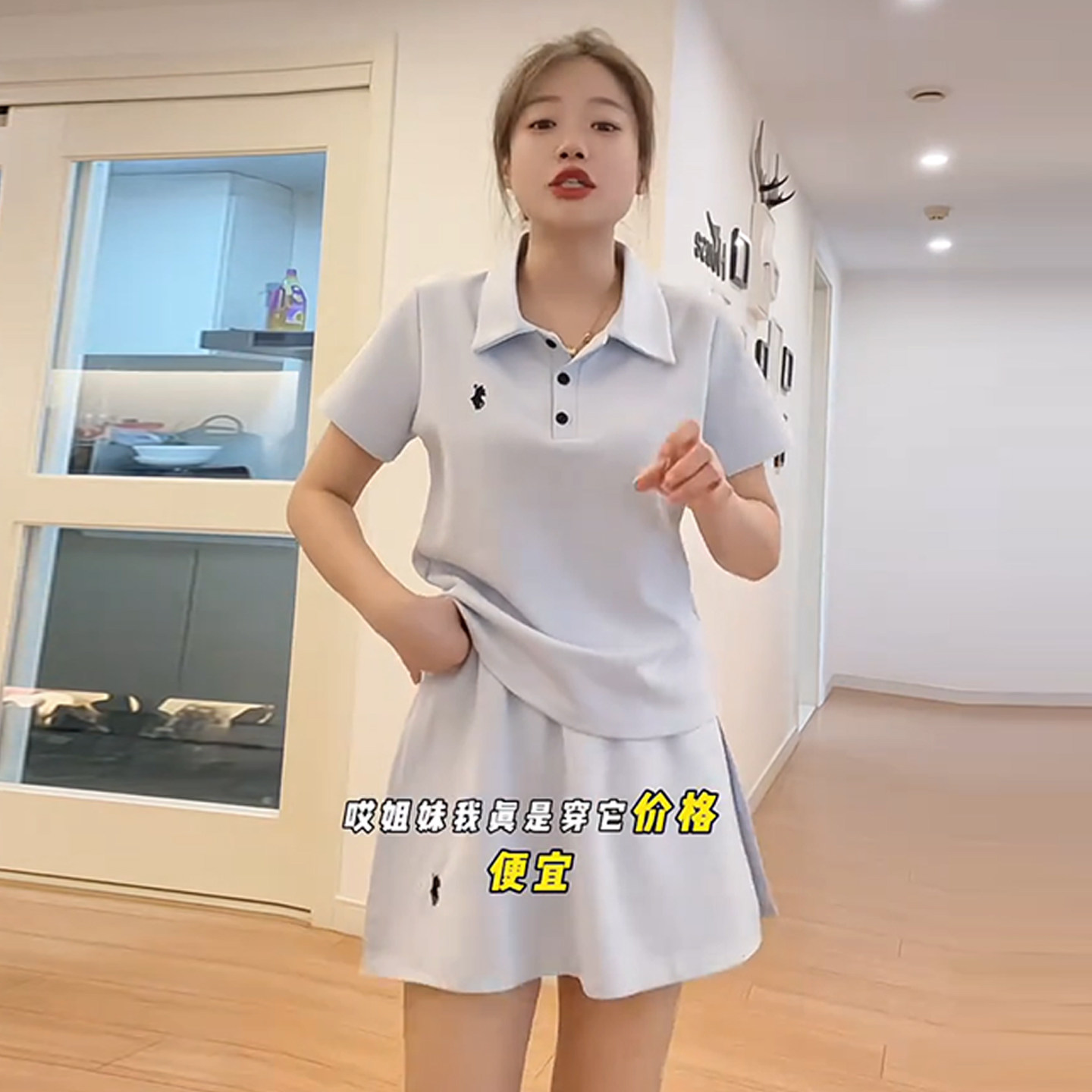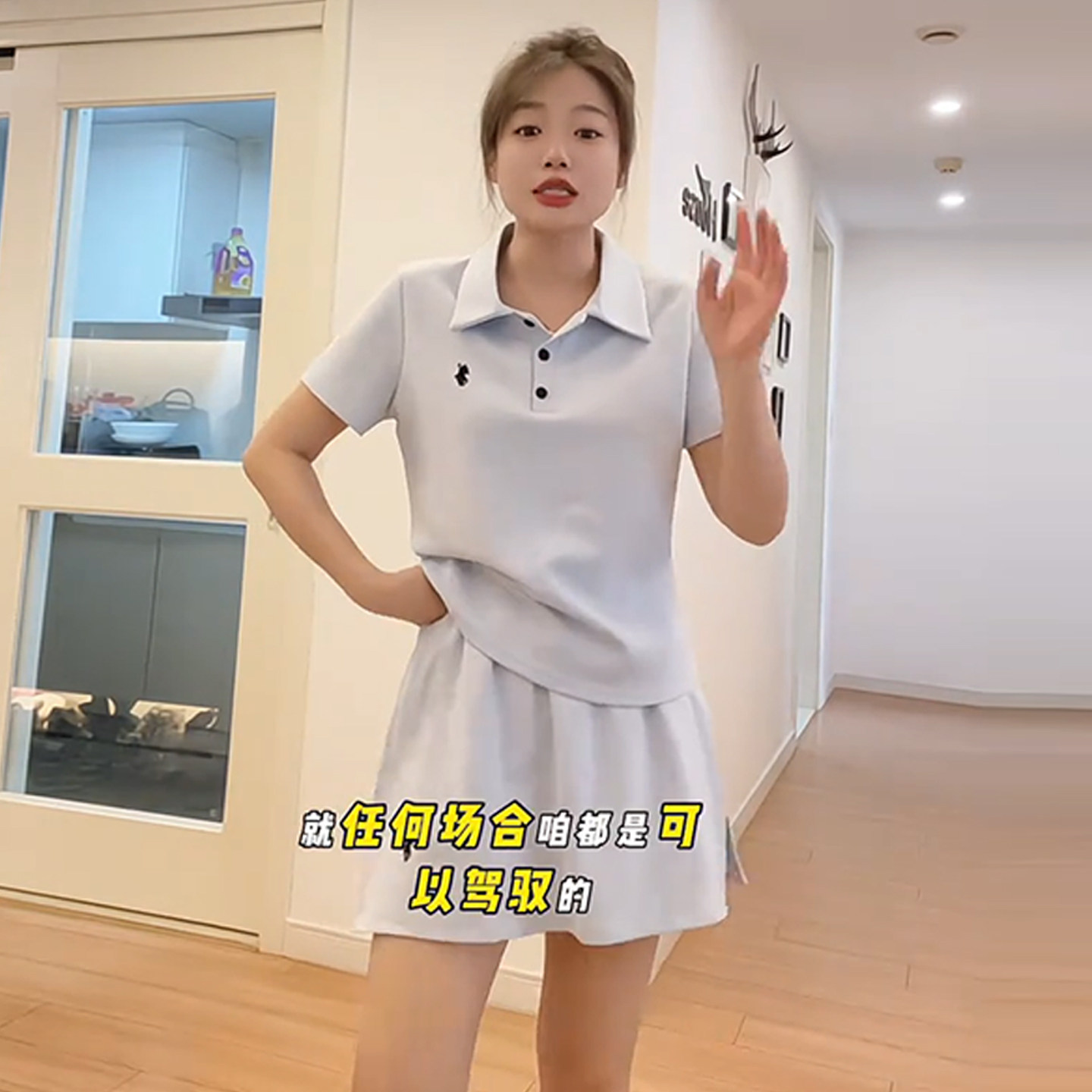 Plus Size Casual Fashion Suit for Women in Summer, Slimming Polo Collar Short-Sleeved T-Shirt Top + Culottes Two-Piece Set