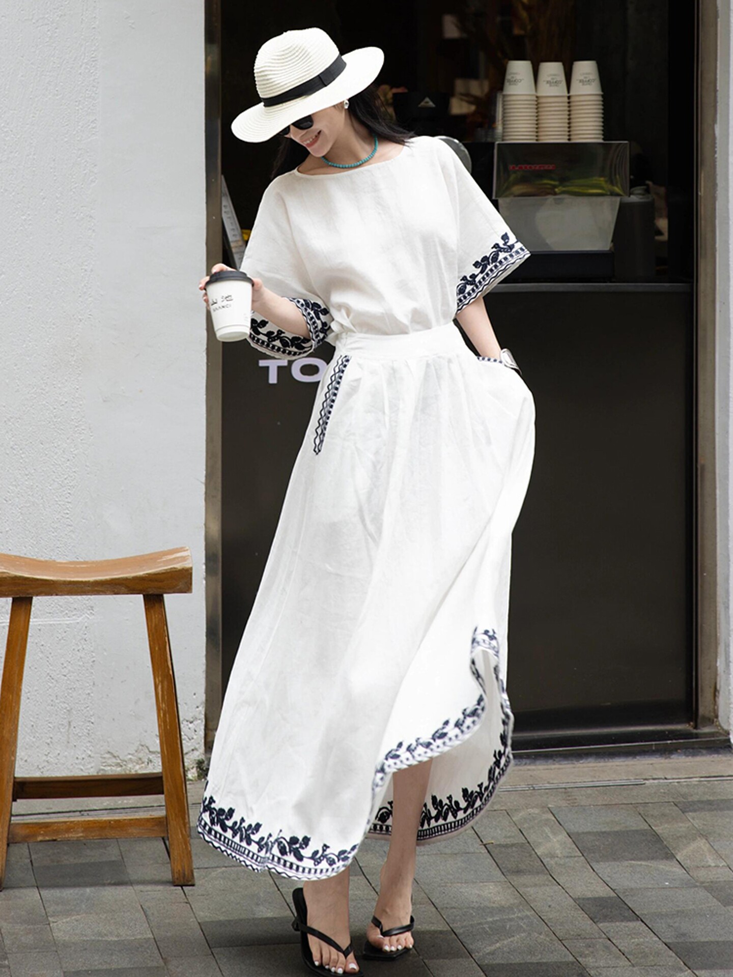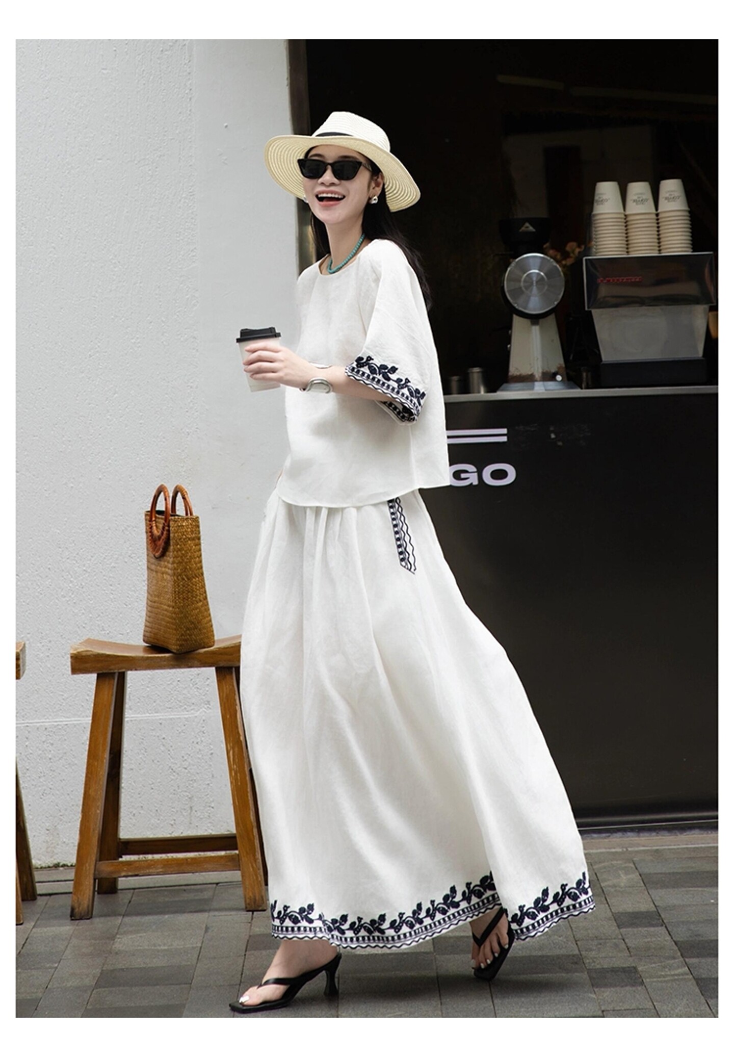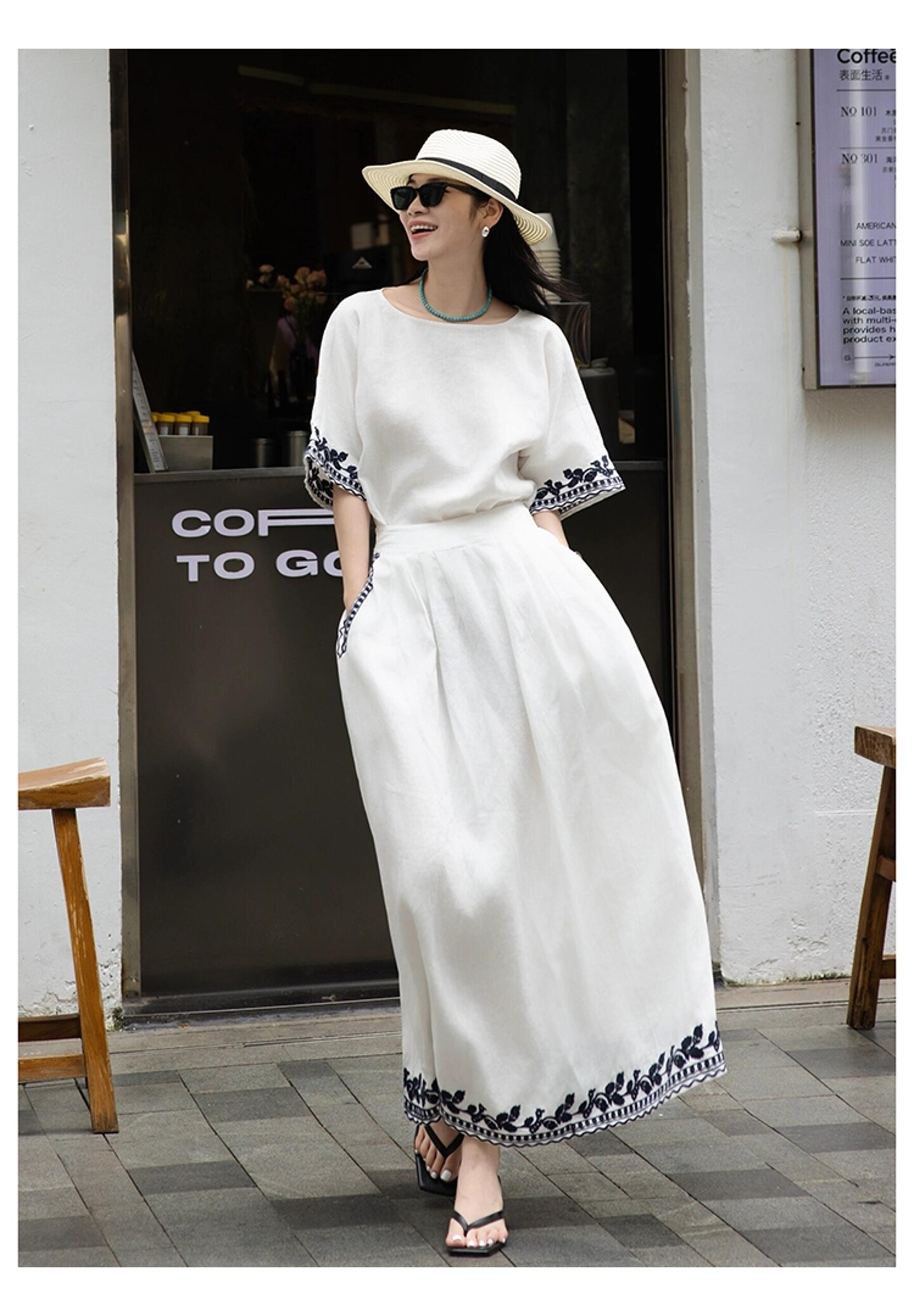 A Very Beautiful Spring Outfit, a Complete Set with a Goddess-Like Style, High-End, Elegant and Appropriate, White Linen Embroidered Suit Dress