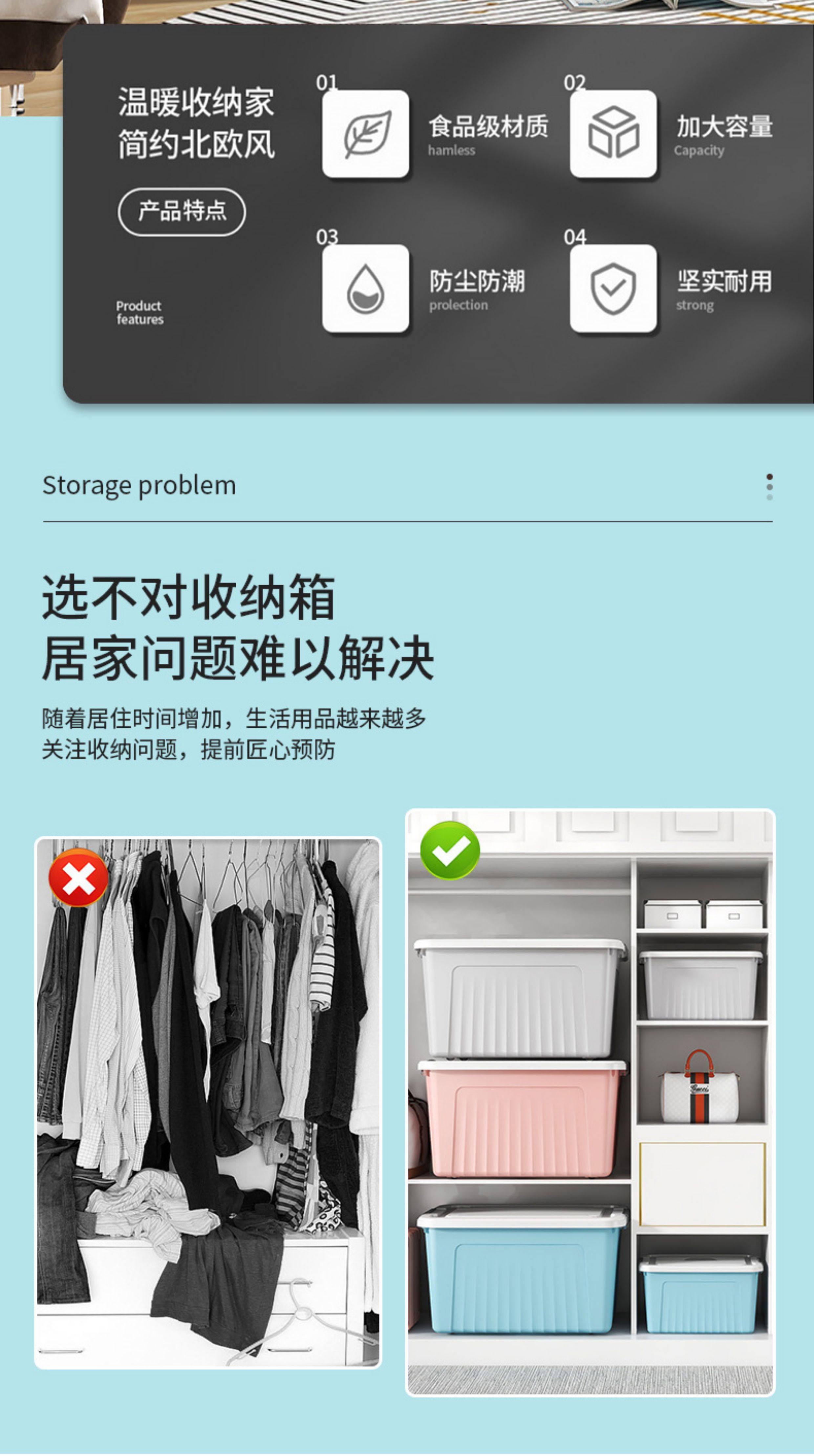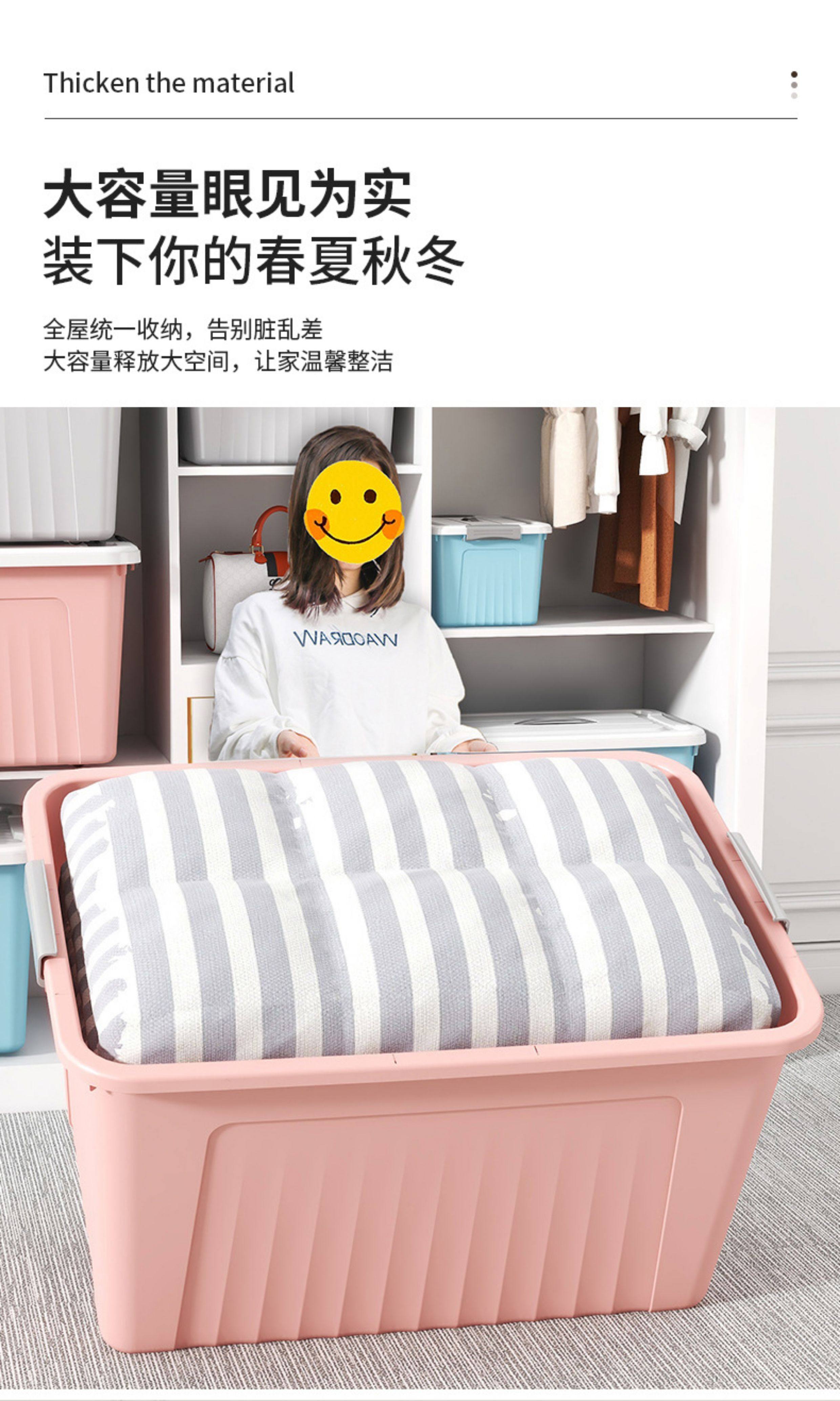 Thickened Extra-Large Storage Box for Household Use, Plastic Clothes and Quilt Organizing Box, Large-Capacity Storage Box for Snacks and Toys