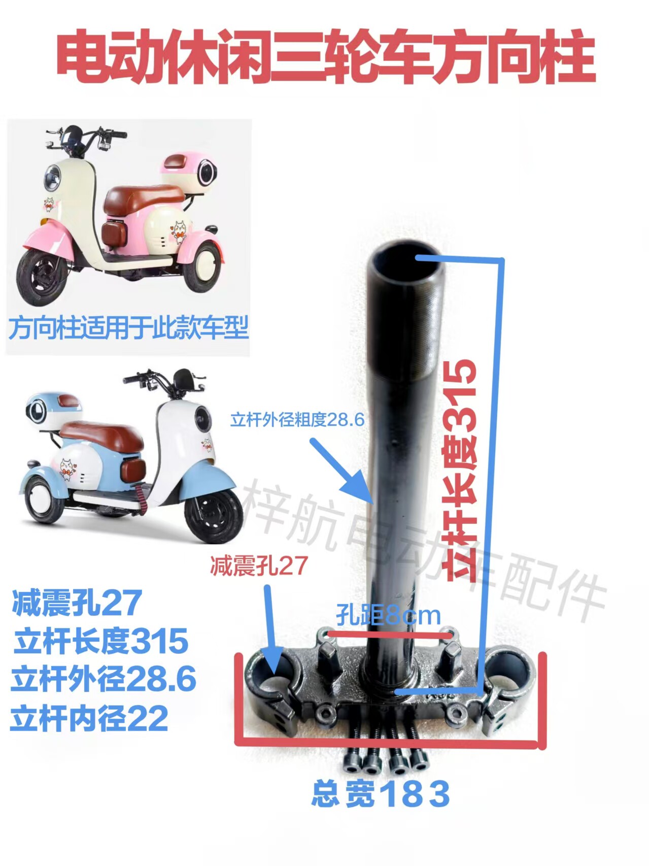 Electric Vehicle Accessories Leisure Tricycle Suitable for Aima Xinren Front Fork Steering Column 28.6 Ceiling-Mounted Steering Column