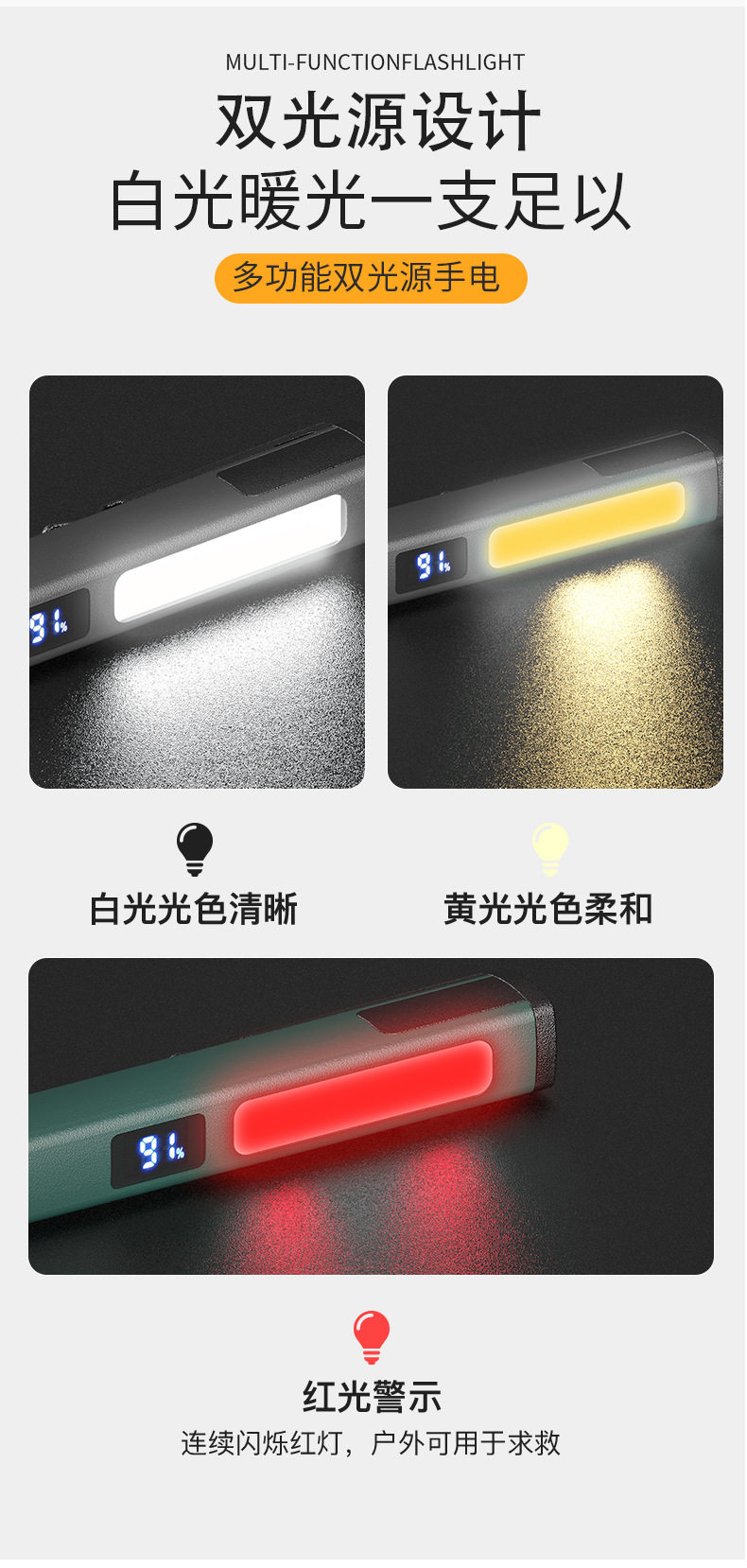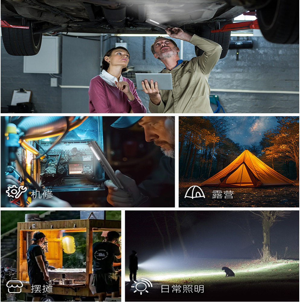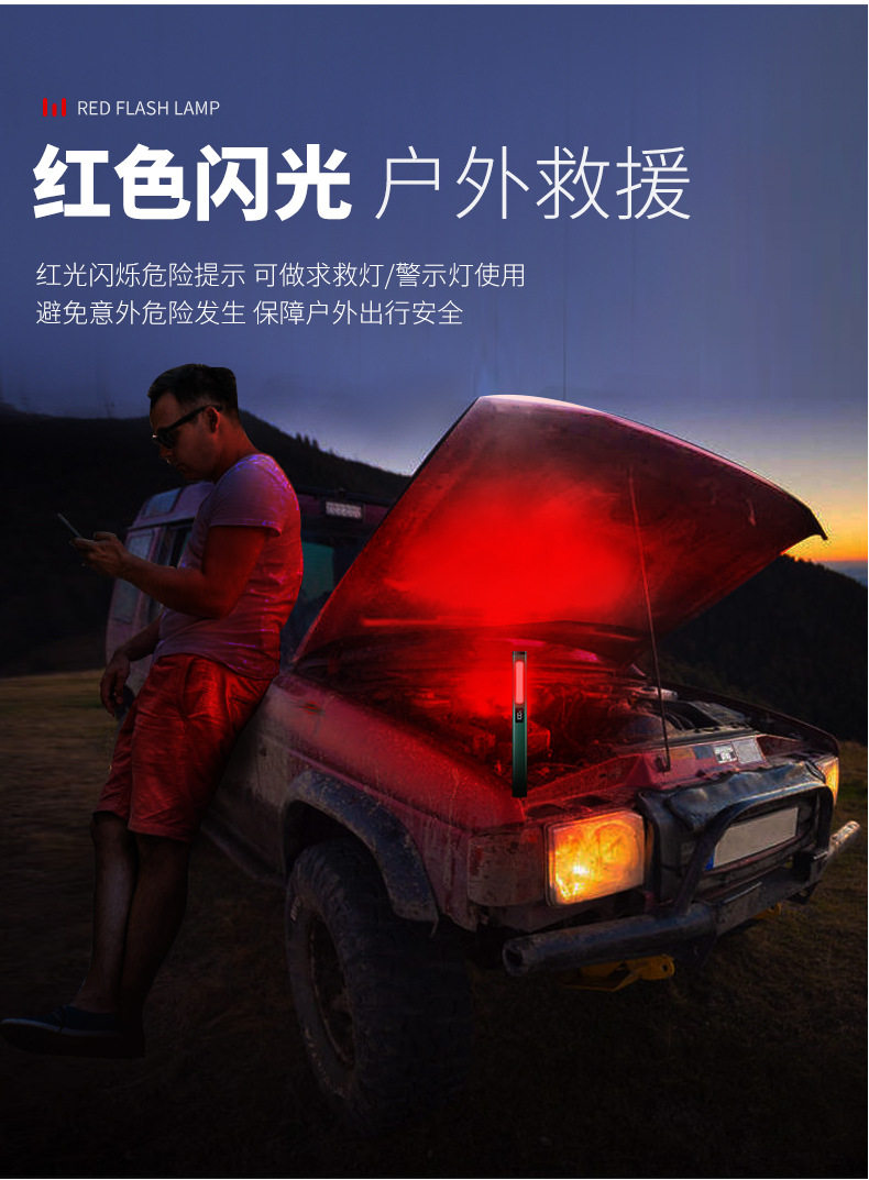 Strong Magnetic Suction Repair Led Work Light, Multi-Functional Auto Repair Light with Yellow and White Light, Cob Side Light, Portable Emergency Lighting Flashlight