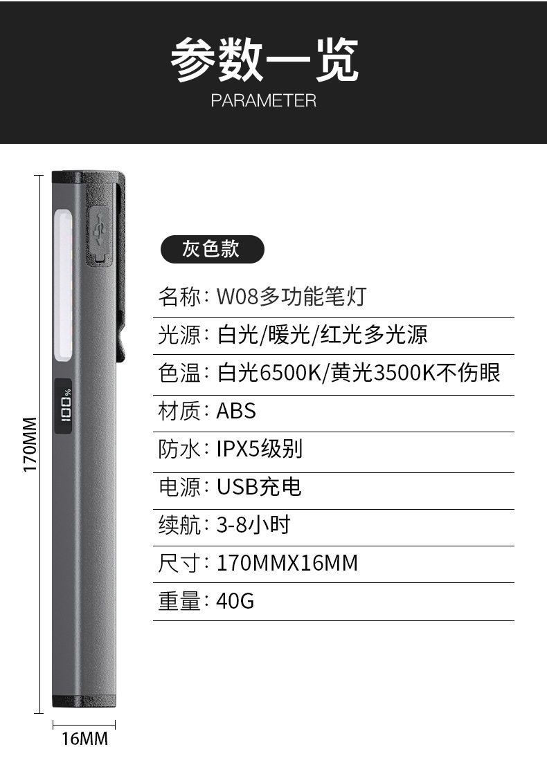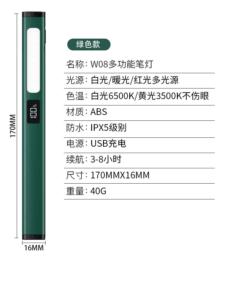 Color Classification Fw08 Green (Strong Magnetic Adsorption/Multi-Function Side Light),Fw08 Gray (Strong Magnetic Adsorption/Multi-Function Side Light)