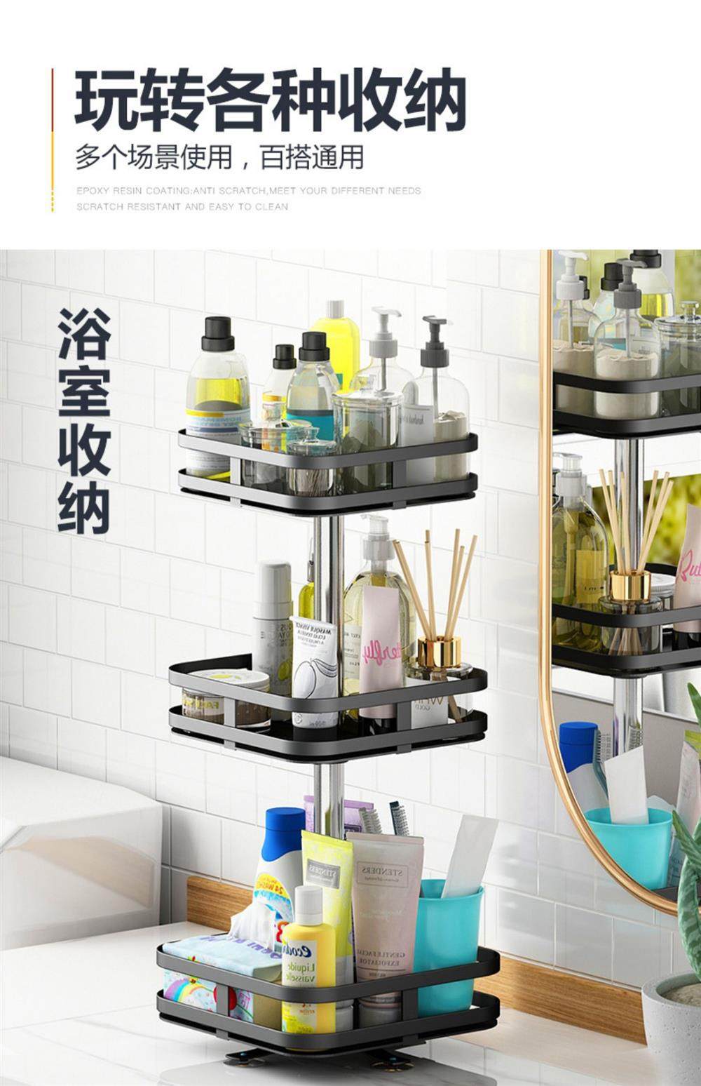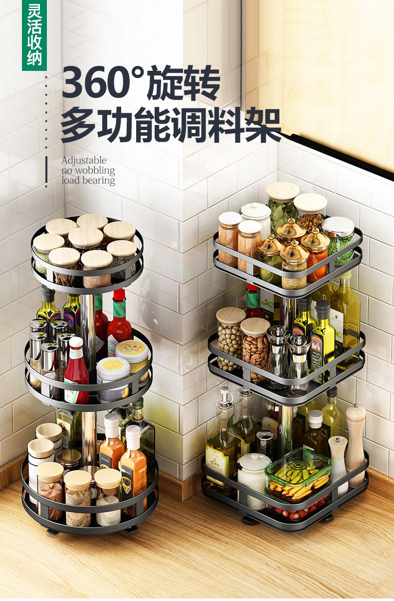 Kitchen Item Storage Rack, Rotating Metal Spice Rack, Three-Layer Adjustable Spice Rack, No Drilling Required