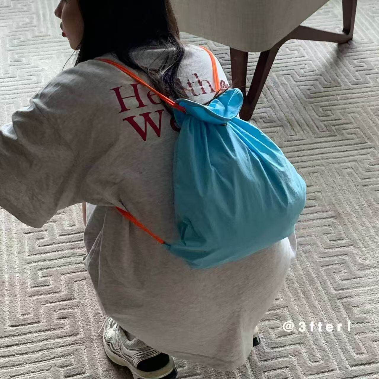 Jeju Island Blue! 3Fter LAOSHU Lucky Drawstring Letter Student Backpack Niche Design Backpack