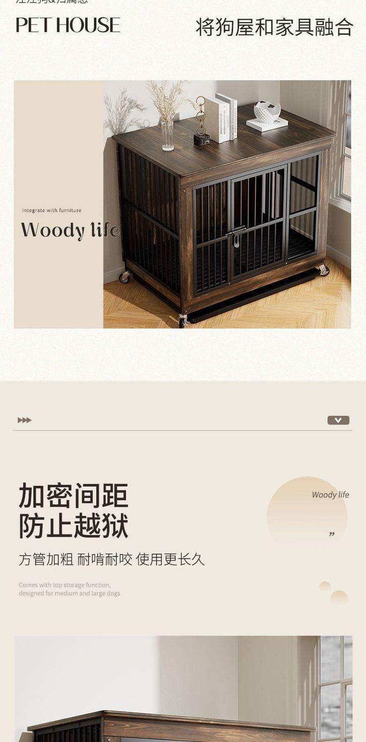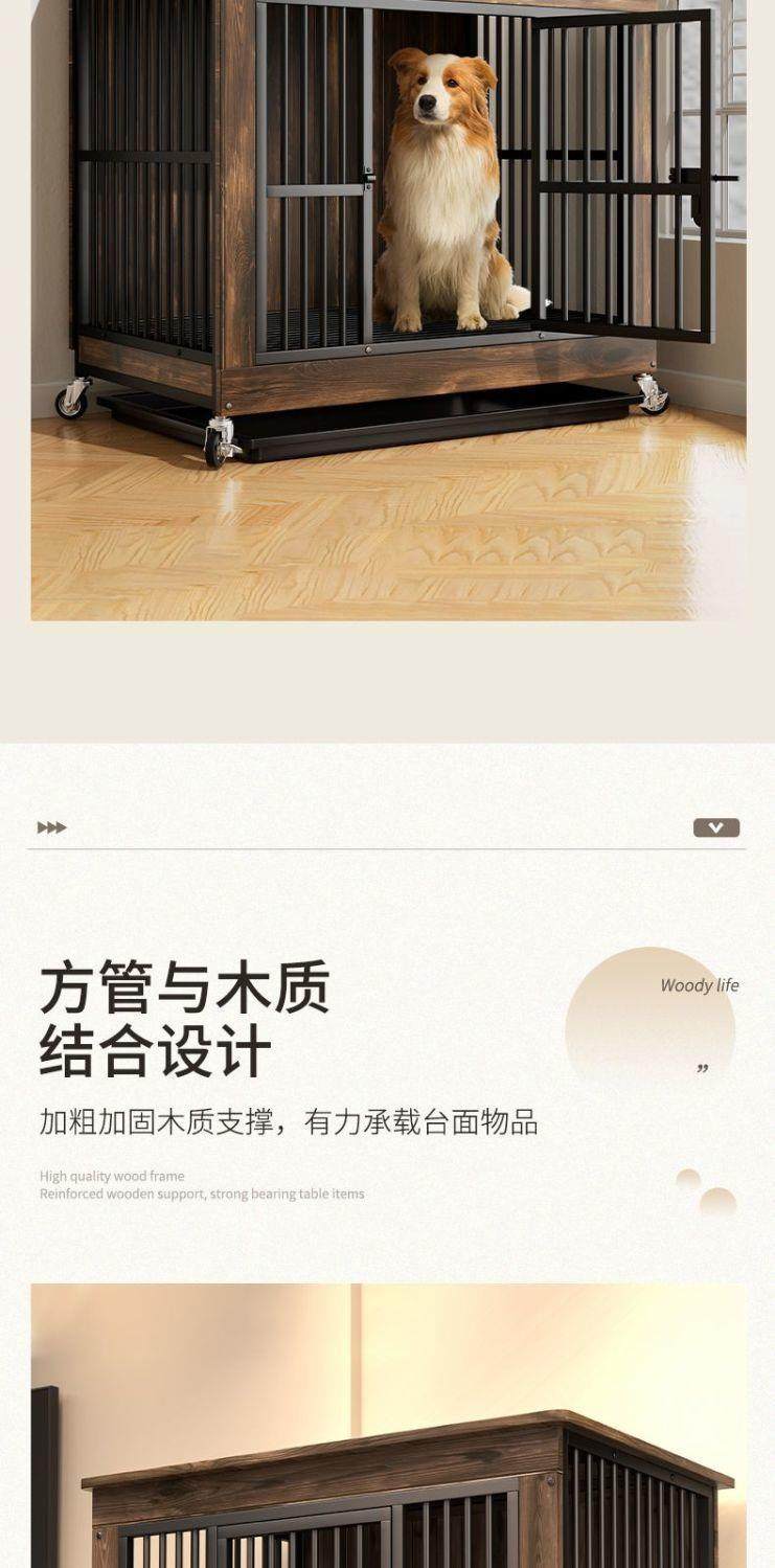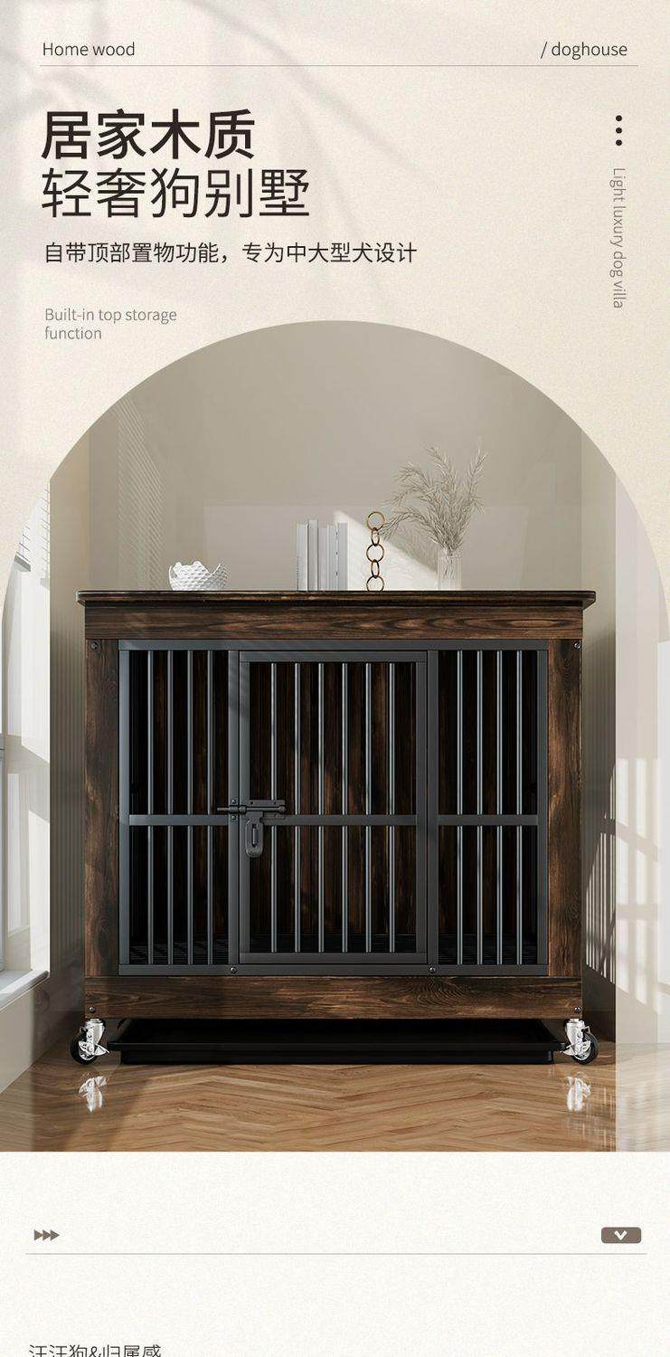 New Reinforced Wooden Dog Cage with Toilet Indoor Kennel House Side Shepherd Golden Retriever Pet Storage Furniture Cage