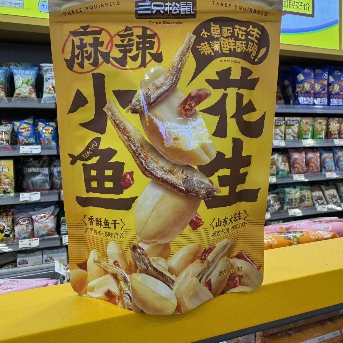 Three Squirrels Small Fish Peanuts 98g Bag Snack for Leisure and Drinking, Super Value Dried Small Fish