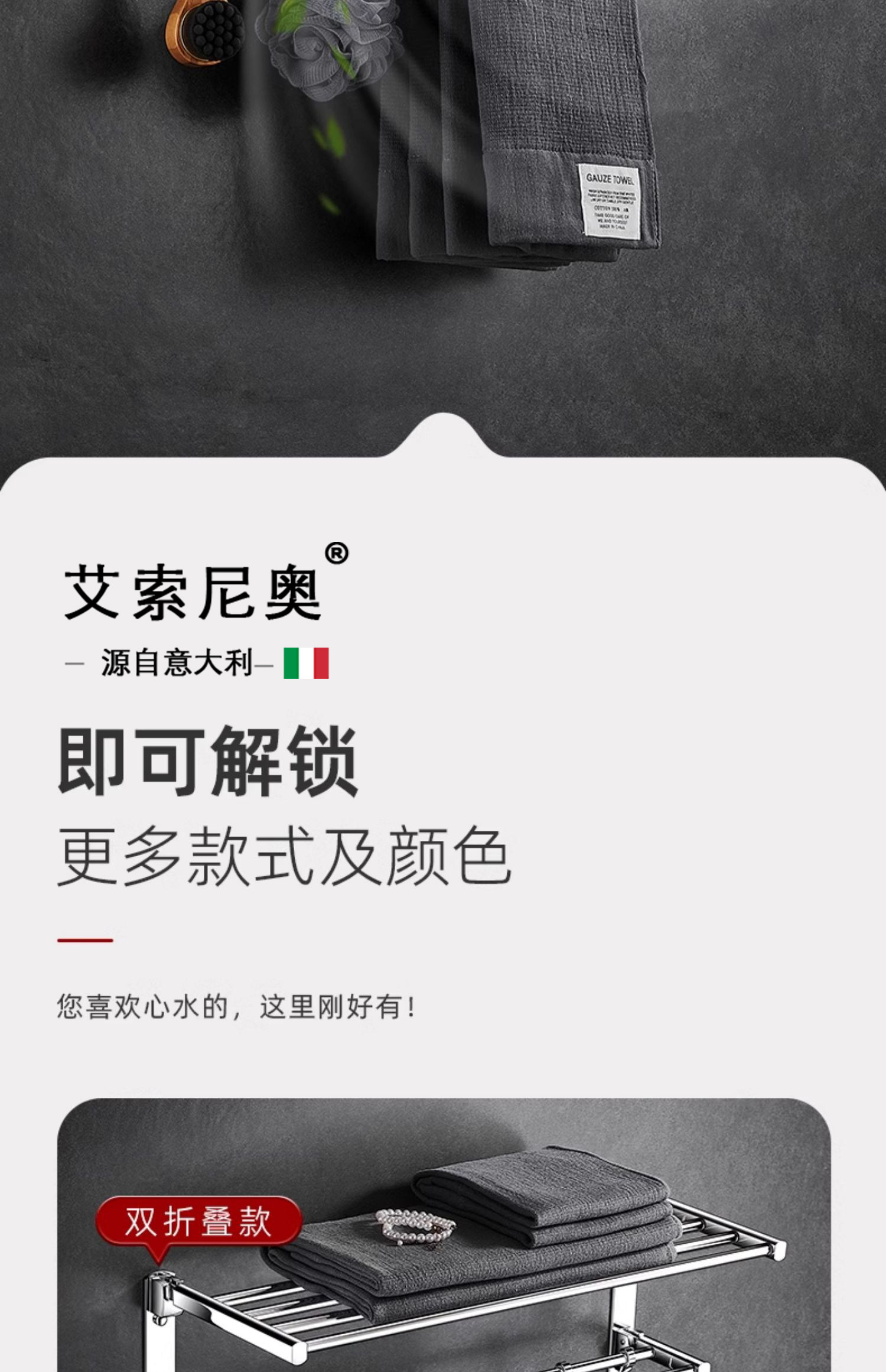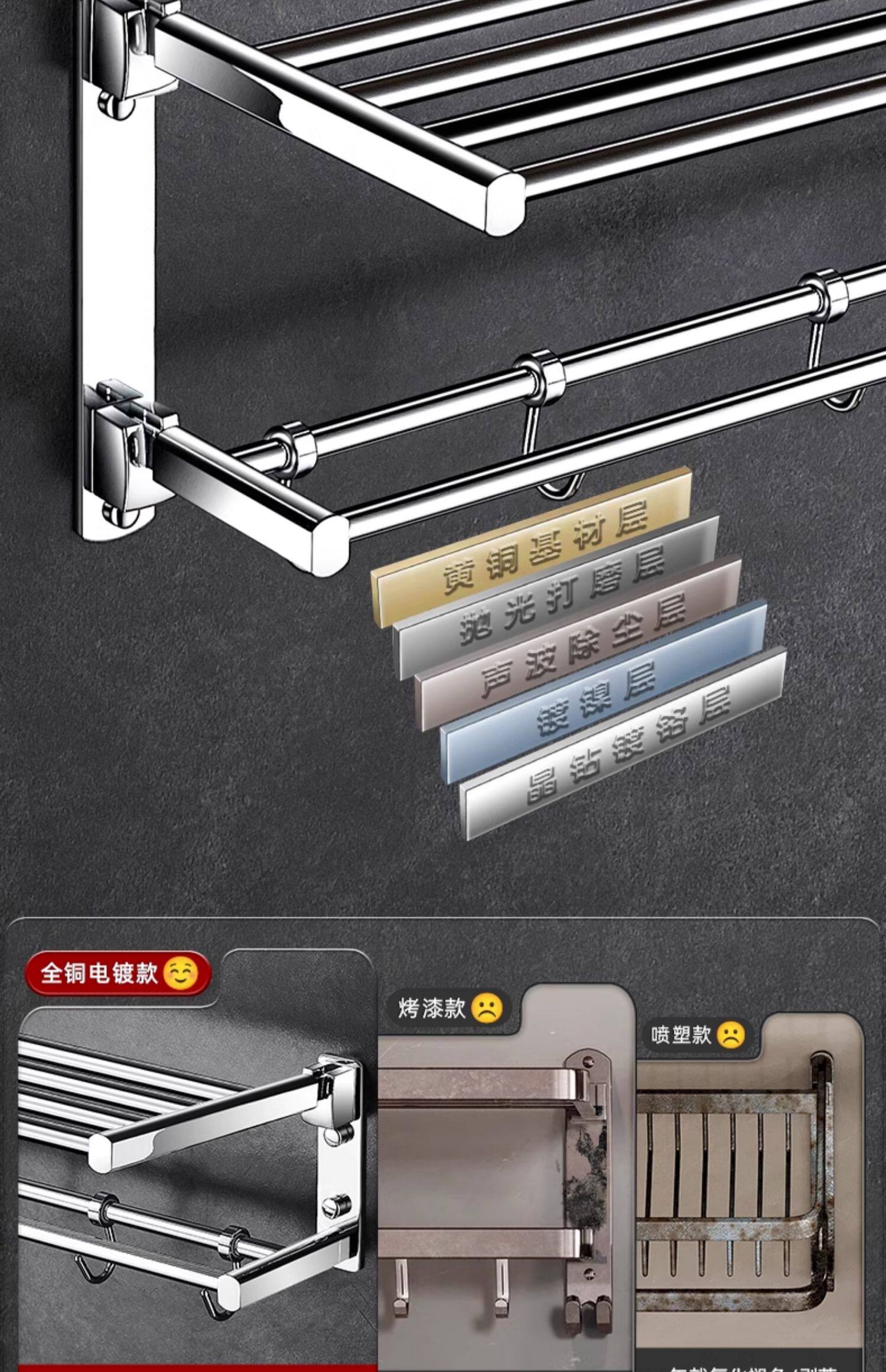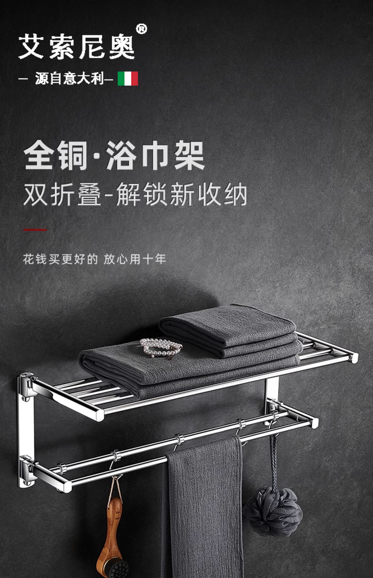 Italian Aisino All-Copper Towel Rack, No-Drill Bathroom Folding Towel Rack, Storage Rack for Bathroom