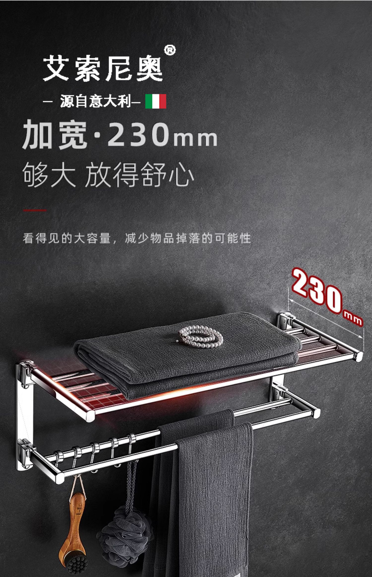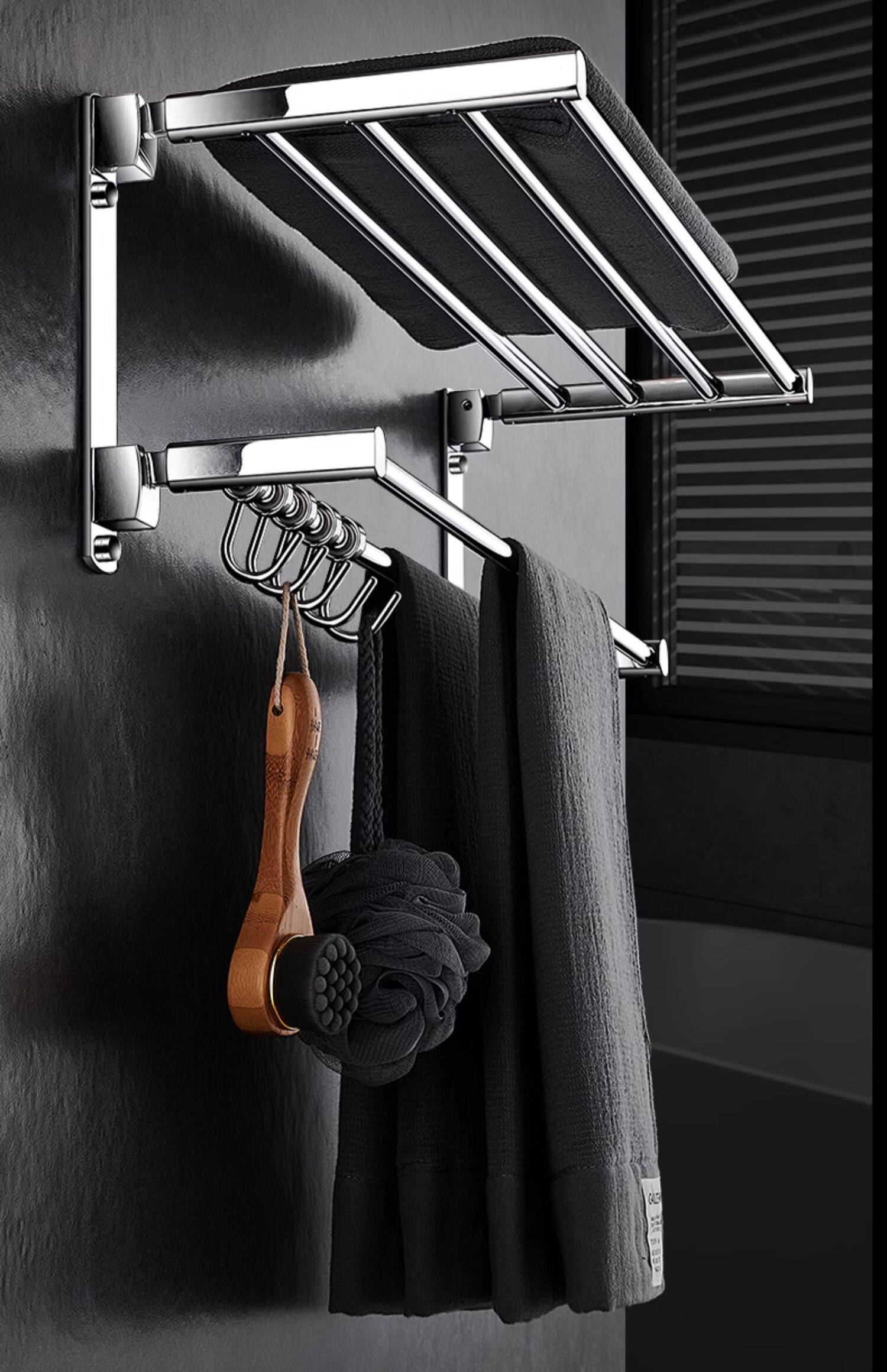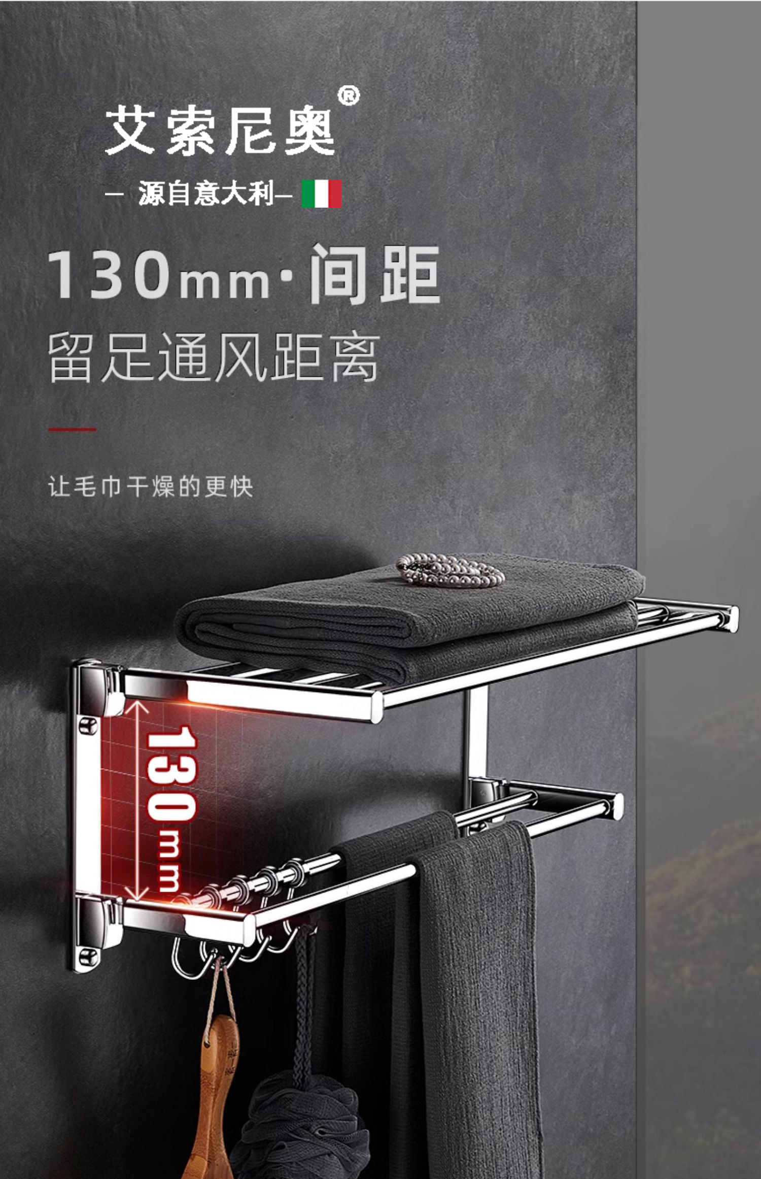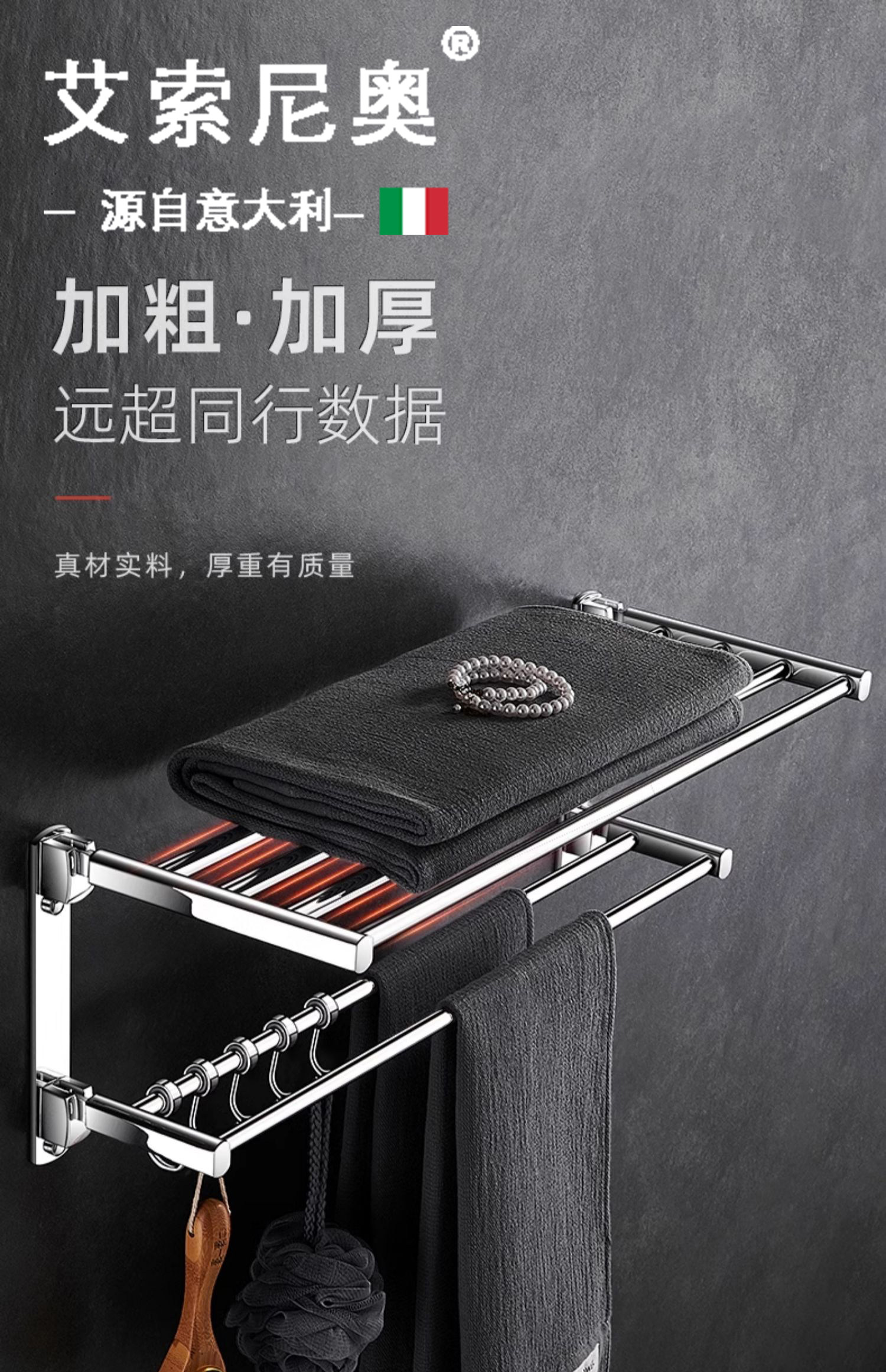 Italian Aisino All-Copper Towel Rack, No-Drill Bathroom Folding Towel Rack, Storage Rack for Bathroom
