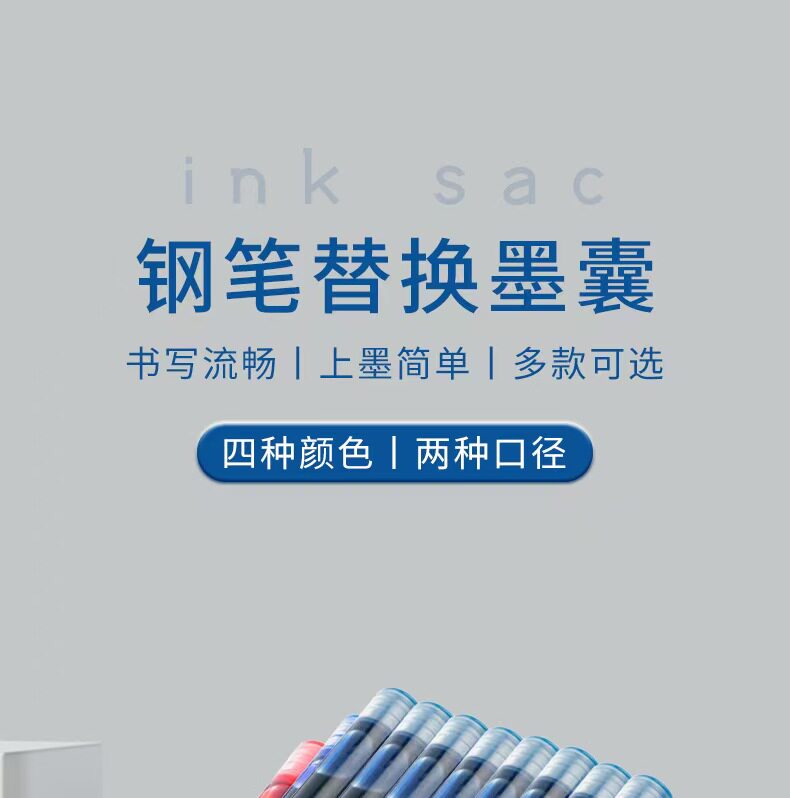 Sort by color 1 F10 fountain pen comes with 10 3.4 black ink bags,1 F22 fountain pen comes with 10 3.4 black ink bags,Erasable blue 3.4mm (10 pcs/bag),3.4mm black (10 pcs/bag),3.4mm pure blue (10 pcs/bag),2.6mm black (10 pcs/bag),2.6mm pure blue (10 pcs/bag),Erasable blue 3.4mm (50 pieces/bag),3.4mm black (50 pcs/bag),3.4mm pure blue (50 pcs/bag),2.6mm black (50 pcs/bag),2.6mm pure blue (100 pieces/bag),2.6mm pure blue (50 pcs/bag),2.6mm black (100 pcs/bag),2.6mm 50 black + 50 blue,3.4mm 50 black + 50 erasable blue,3.4mm 50 black + 50 pure blue,1 F10 fountain pen comes with 10 3.4 blue ink bags,1 F22 fountain pen comes with 10 3.4 blue ink bags