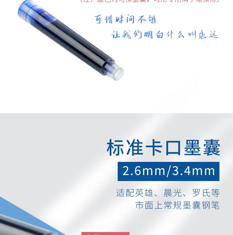 Ink bag fountain pen ink for primary school students special erasable blue replaceable pure blue caliber 3.4mm2.6mm ink tank crystal blue