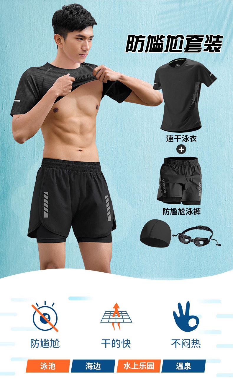 Swimsuit suit men's adult and youth swimming equipment 2026 new swimming trunks three-piece set junior high school boys' swimsuit