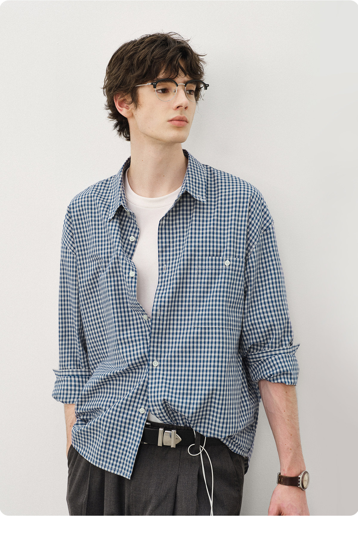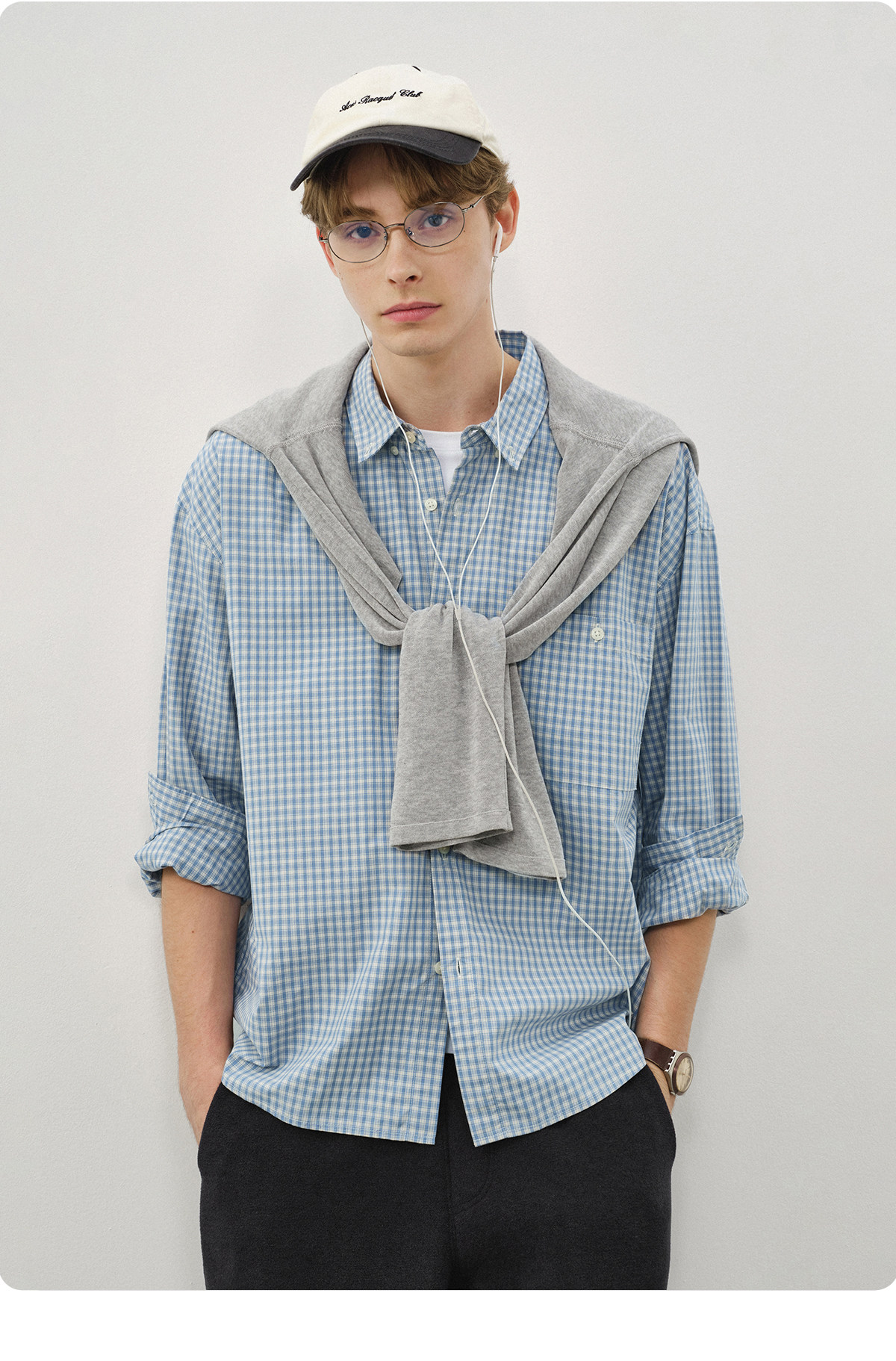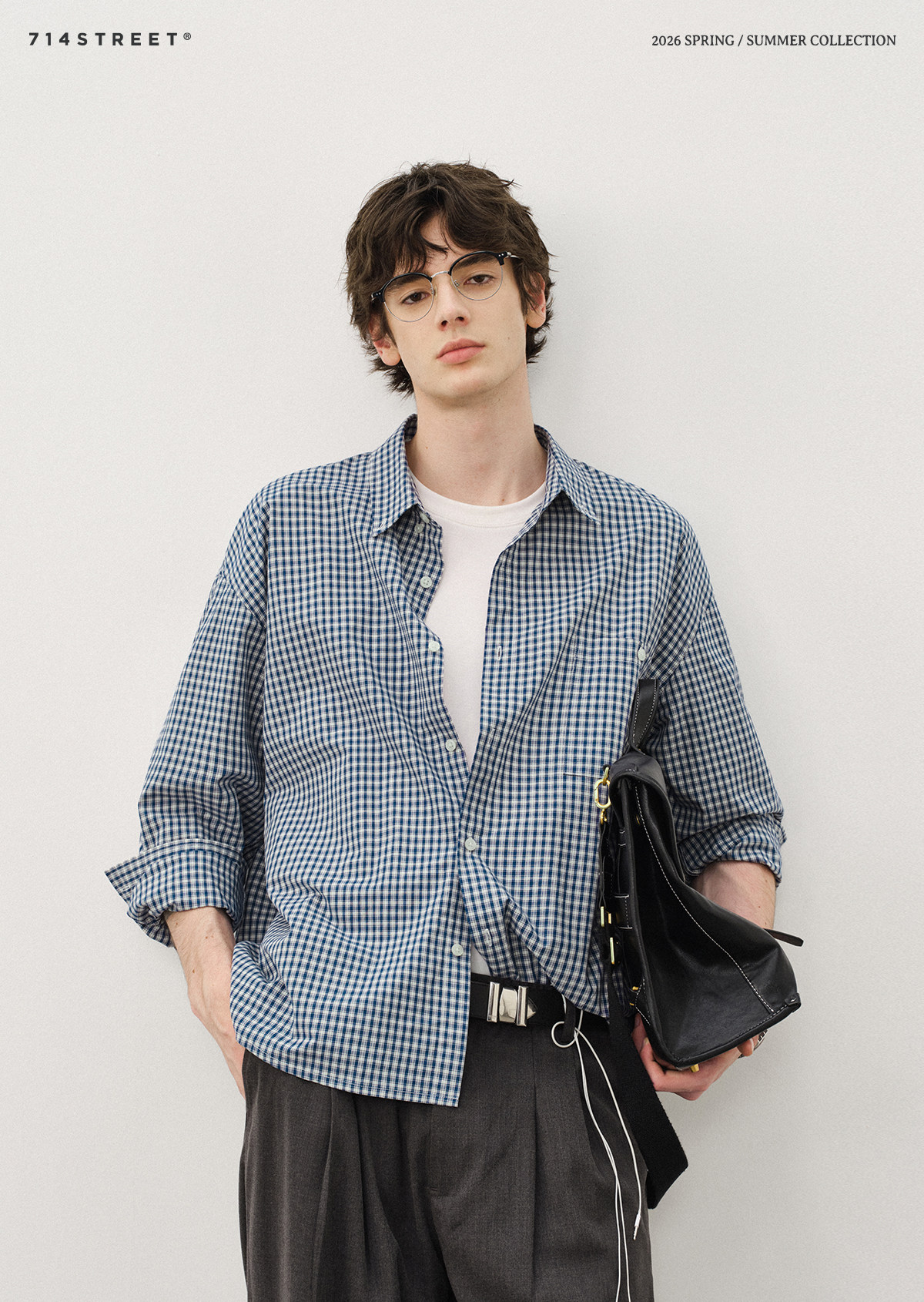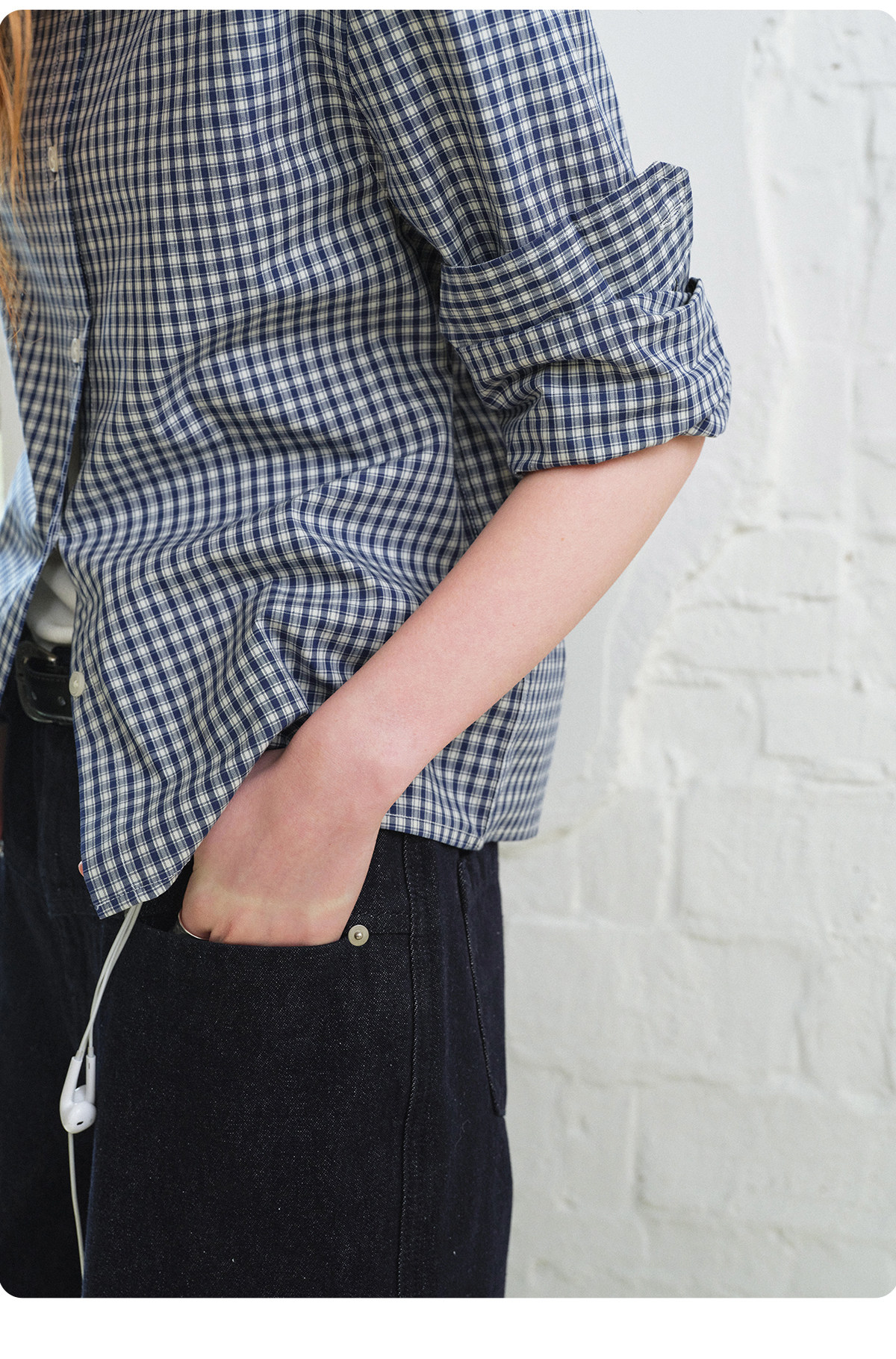 714Street Loose Pure Cotton Couple Long-Sleeved Blue Plaid Shirt for Men and Women 2026 Spring Miu Style Outfit Shirt