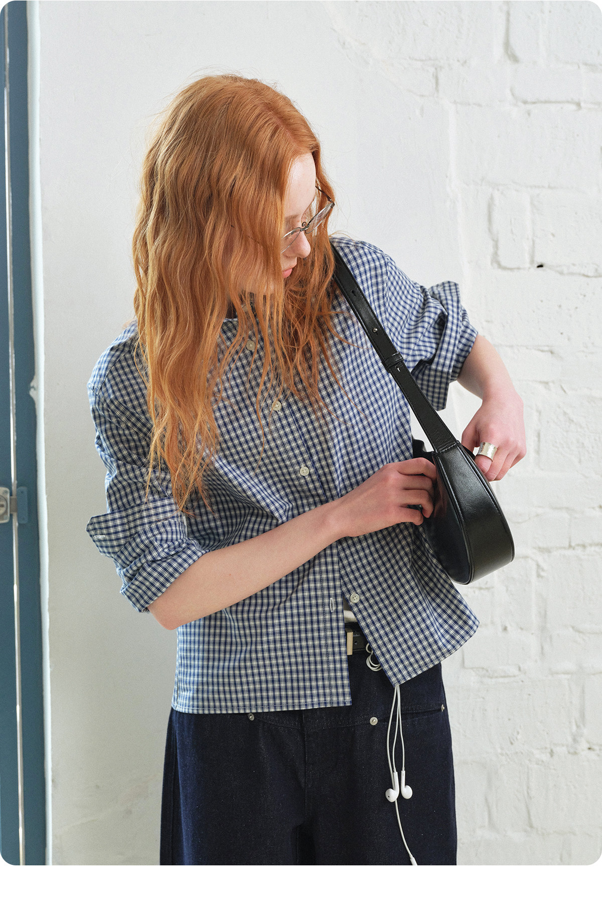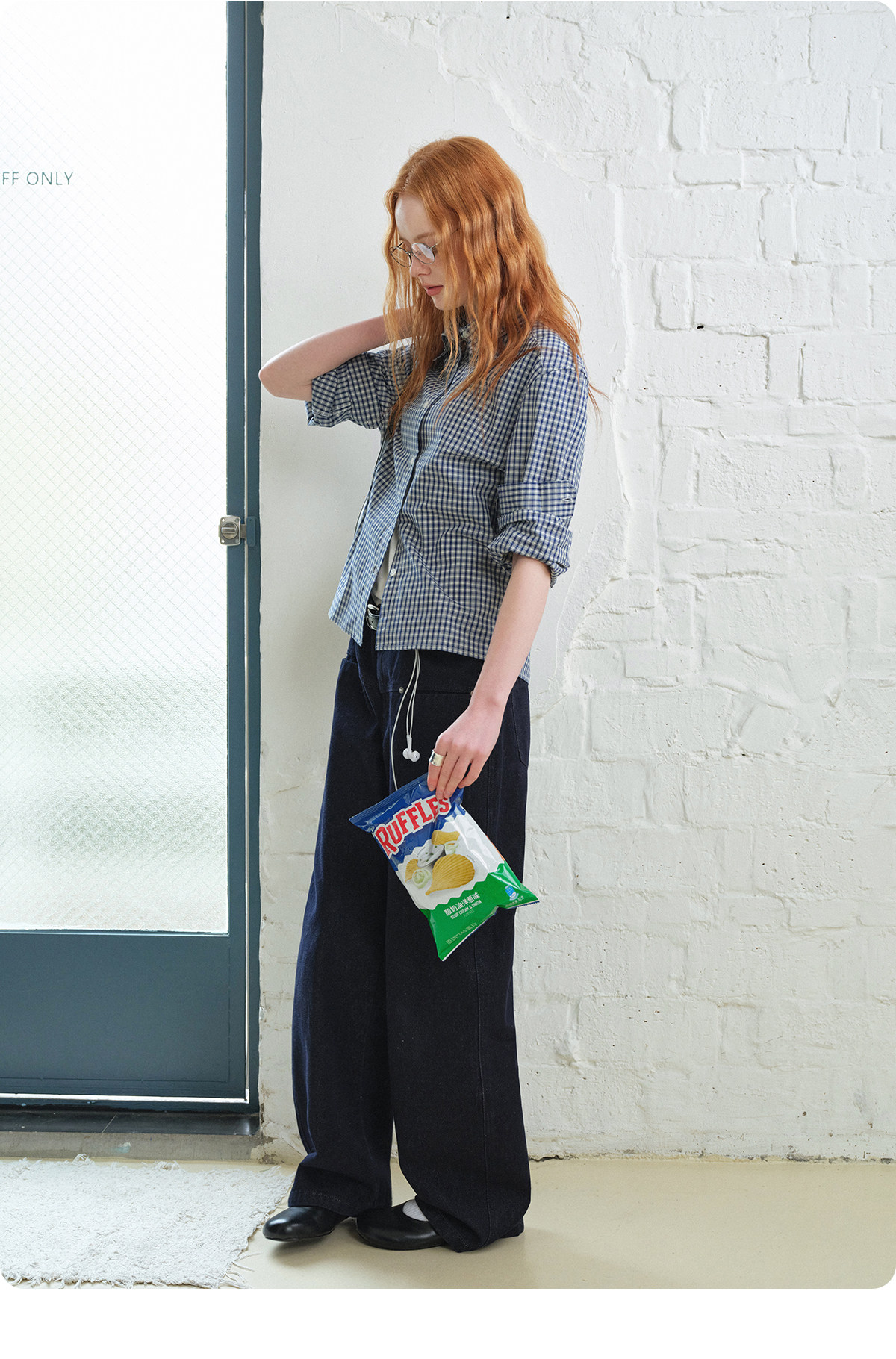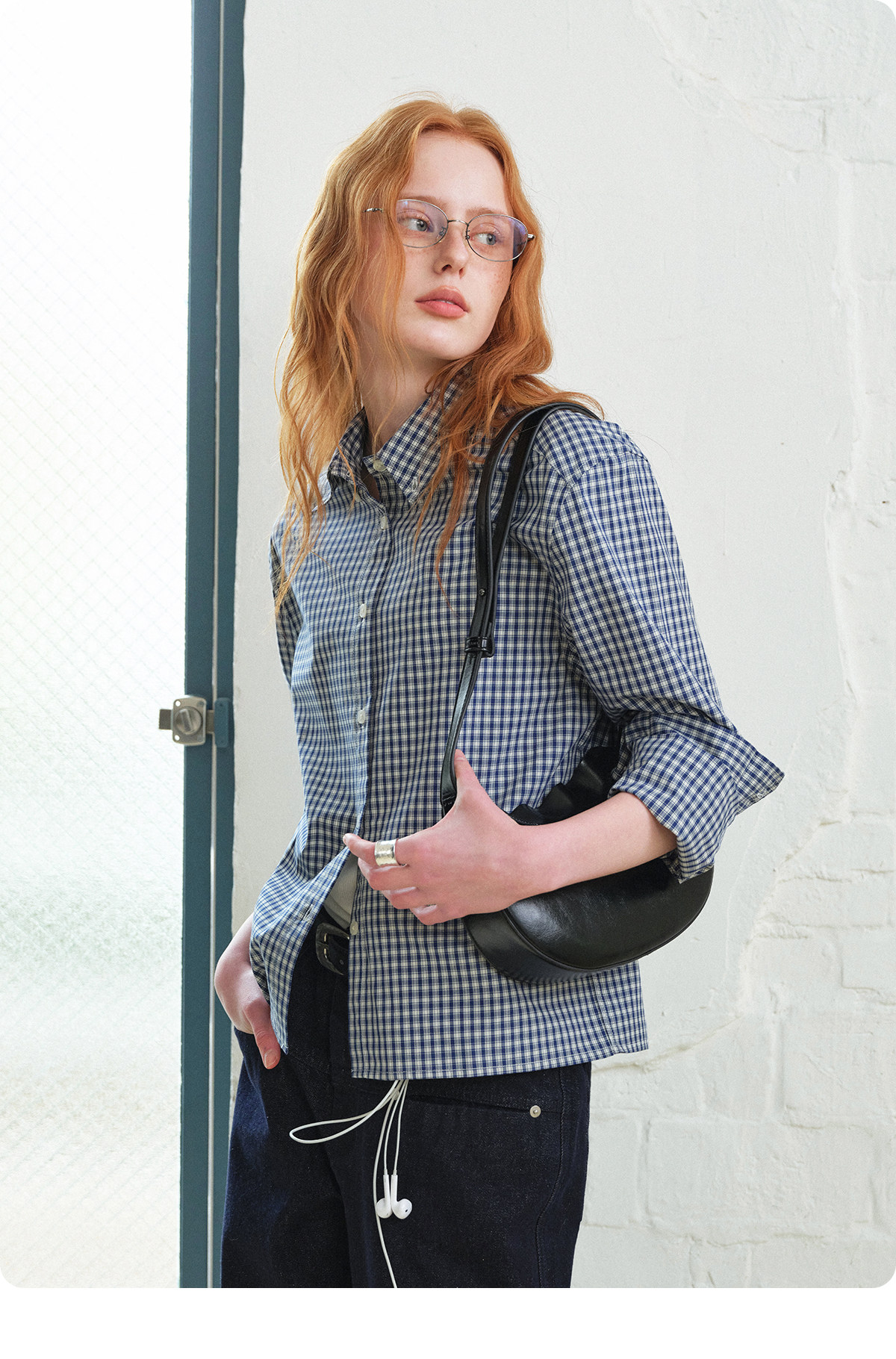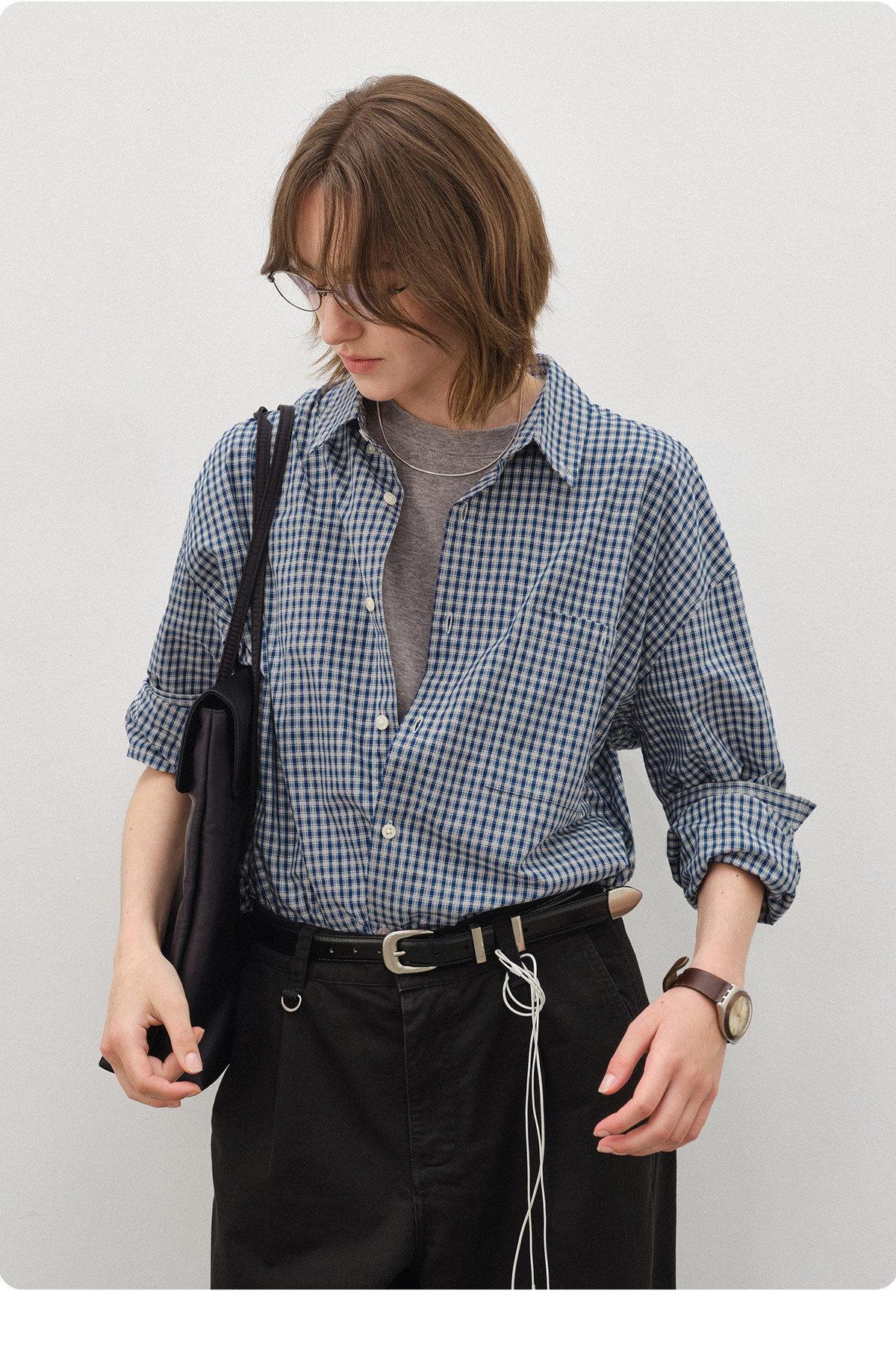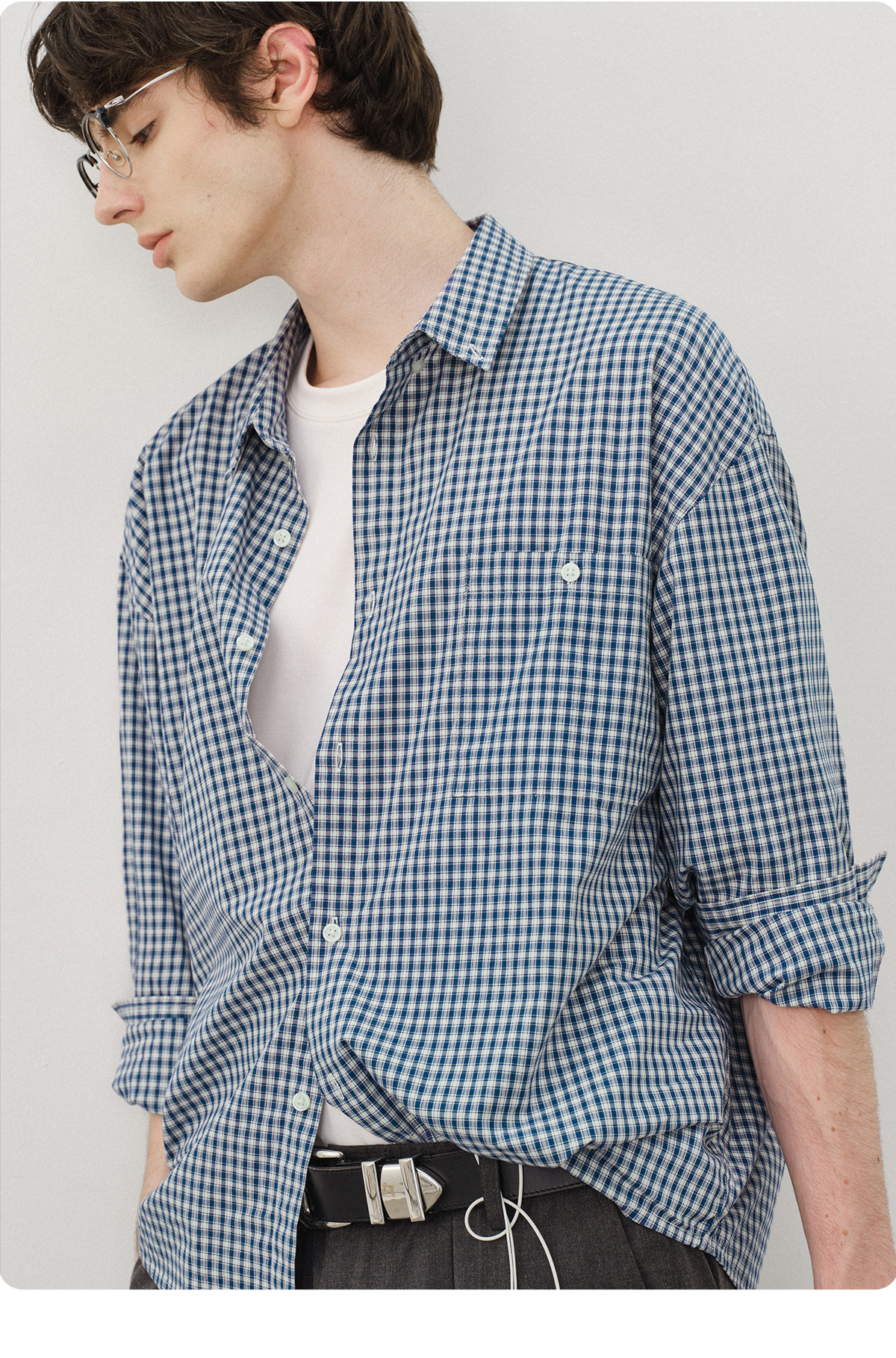 714Street Loose Pure Cotton Couple Long-Sleeved Blue Plaid Shirt for Men and Women 2026 Spring Miu Style Outfit Shirt