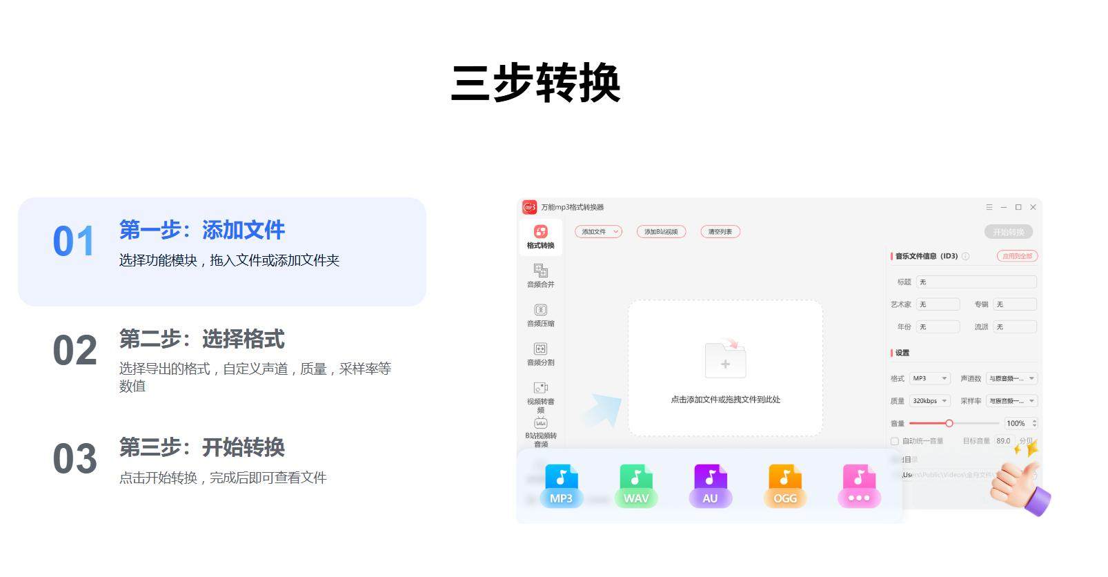 Universal Mp3 Format Converter for Computers, Audio Format Conversion, Splitting, Merging, Compression, Car Music Mp3