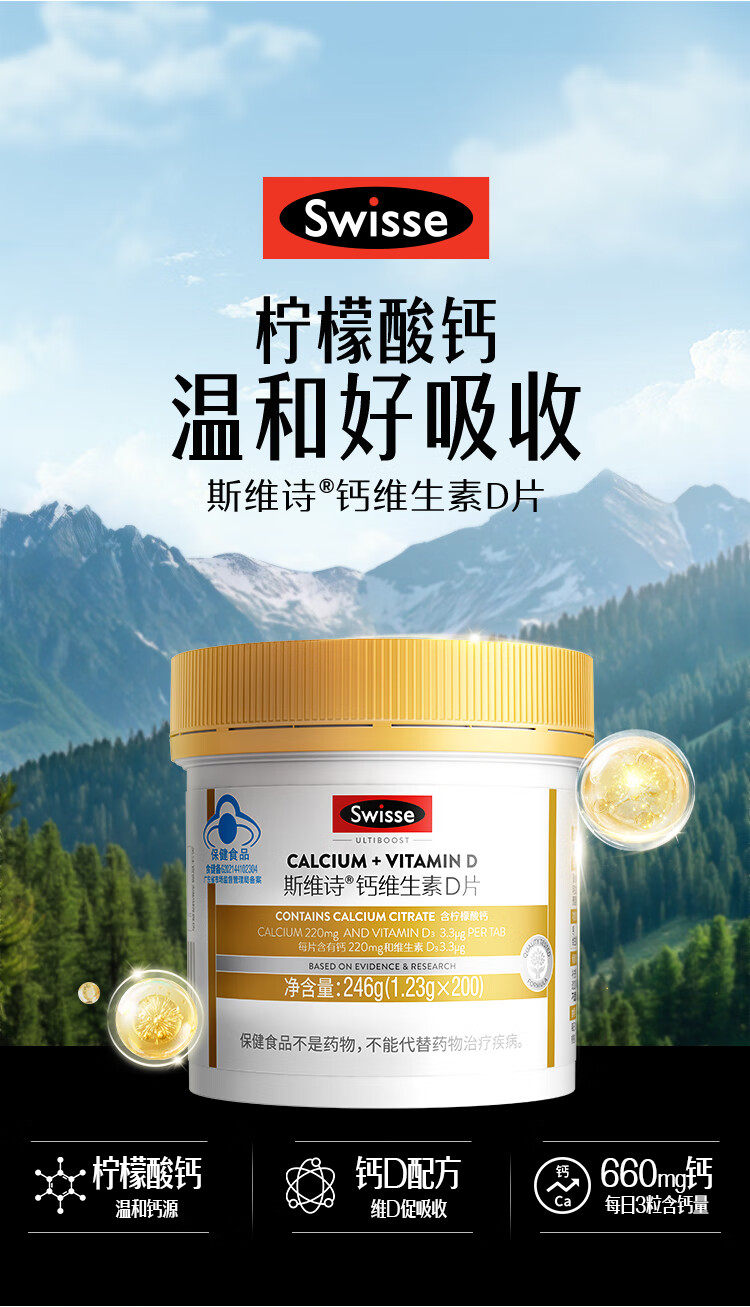Swisse Calcium Citrate Vitamin D3 Adult and Elderly Gold Edition Mini Calcium Tablets Official Genuine Product